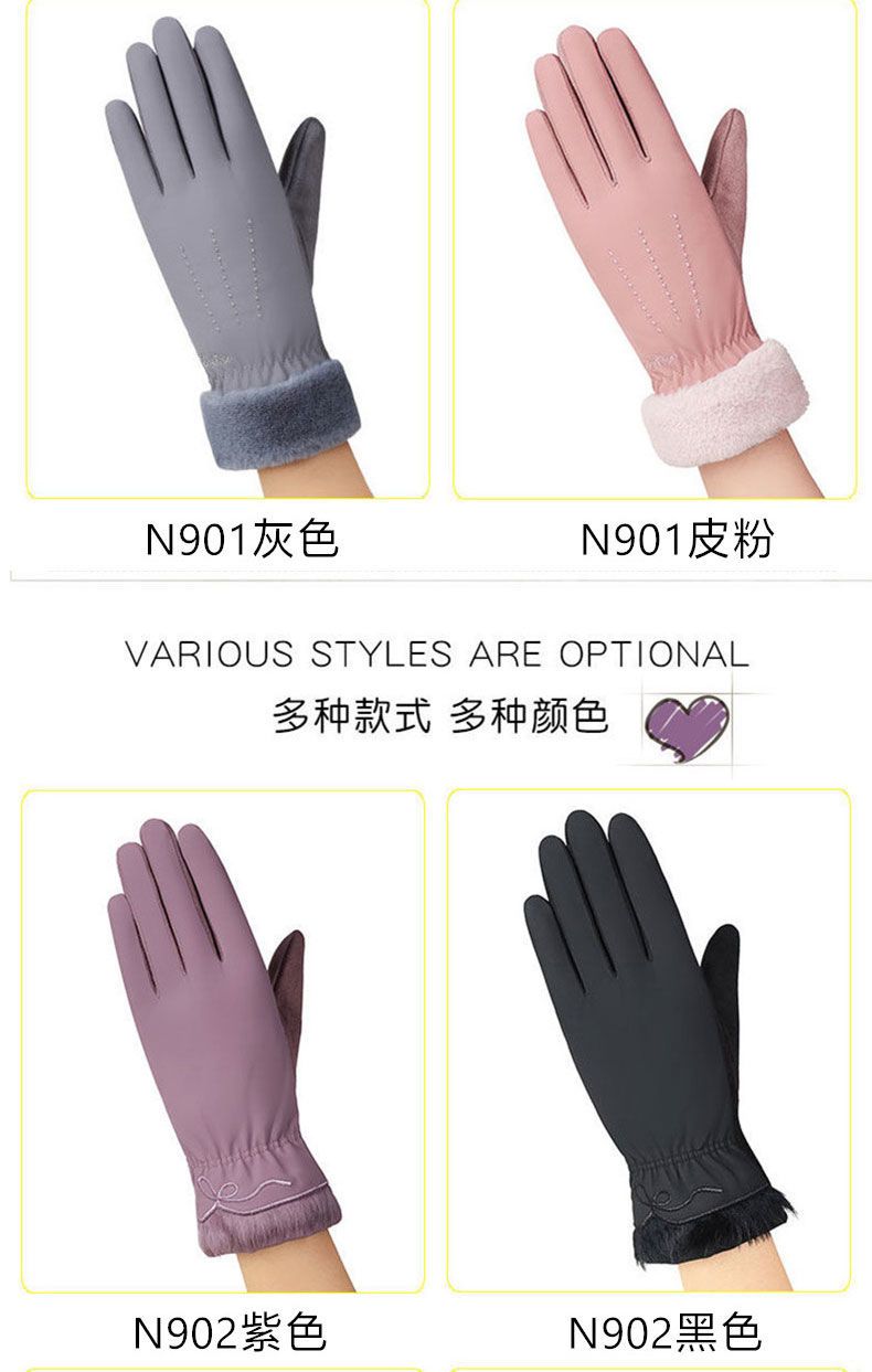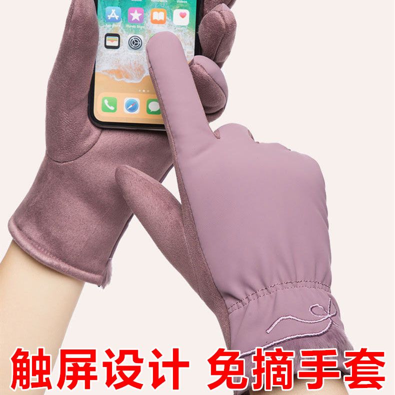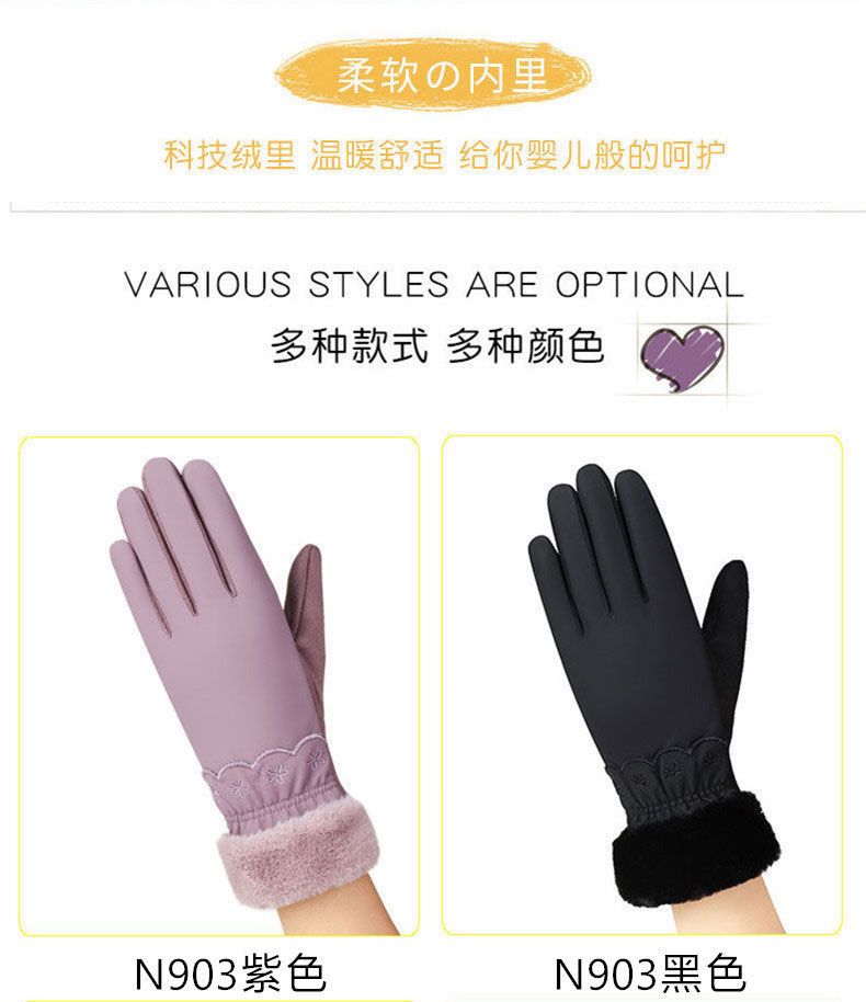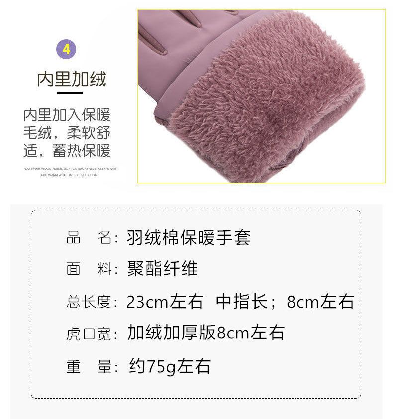 羽绒棉手套女冬季保暖防寒加绒女士加厚骑行电车防水防风触屏手套