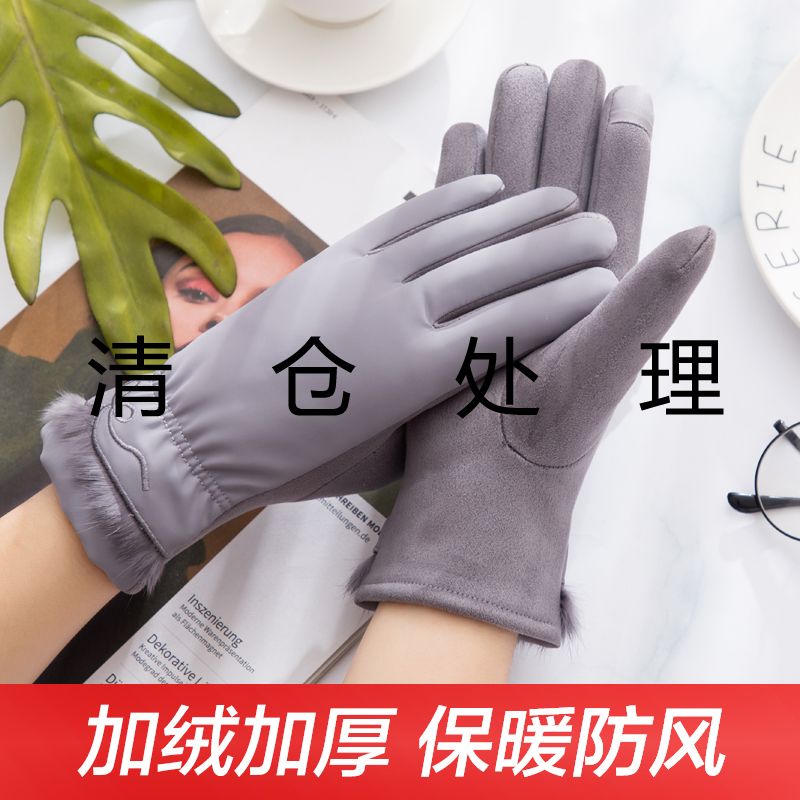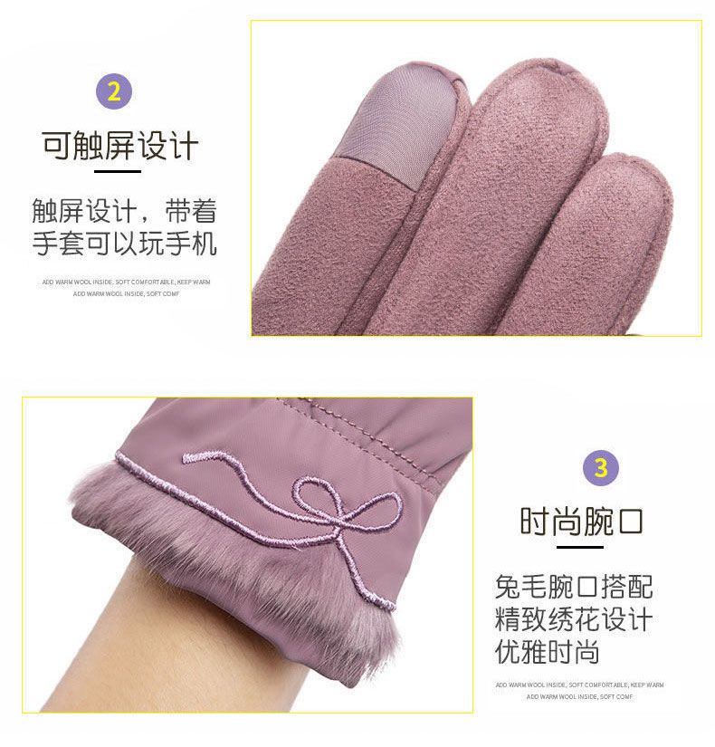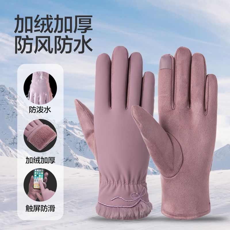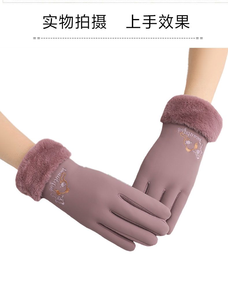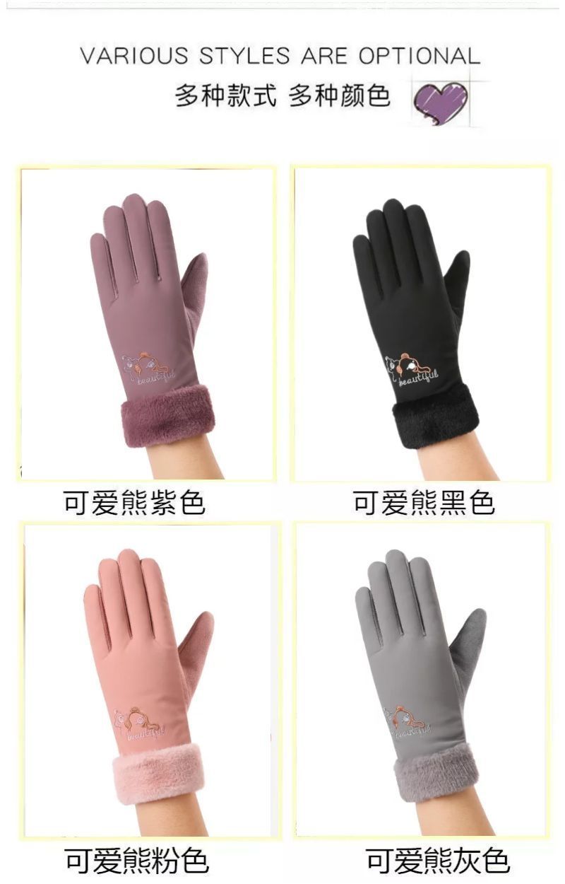 羽绒棉手套女冬季保暖防寒加绒女士加厚骑行电车防水防风触屏手套