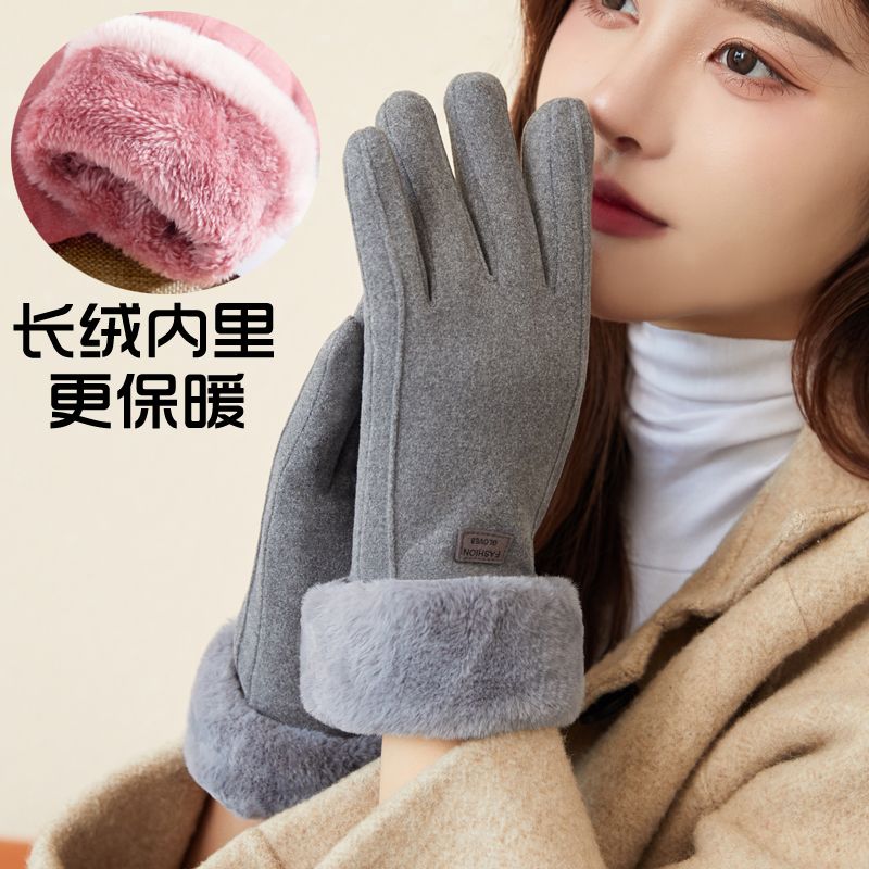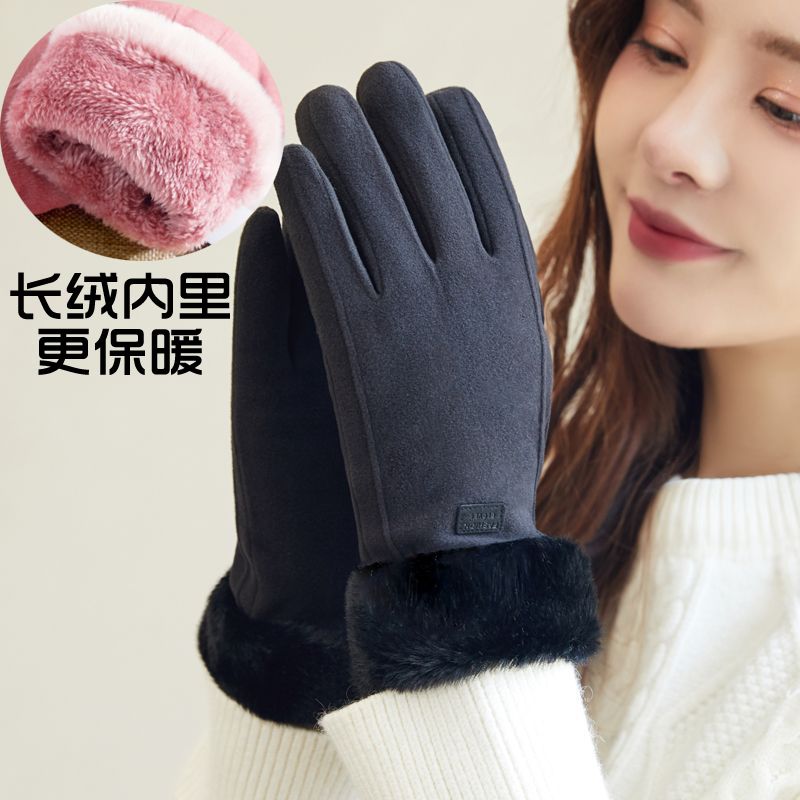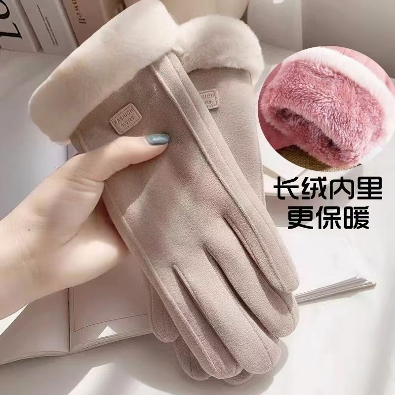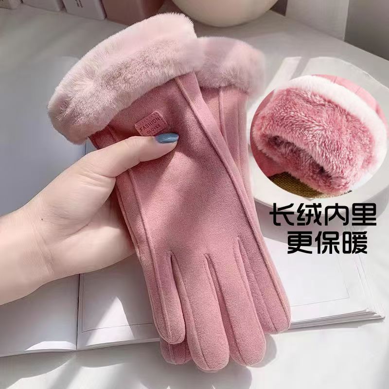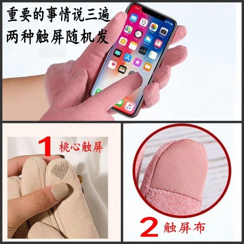 麂皮绒手套女保暖防寒骑车手套女冬季可爱加绒加厚可触屏骑行手套