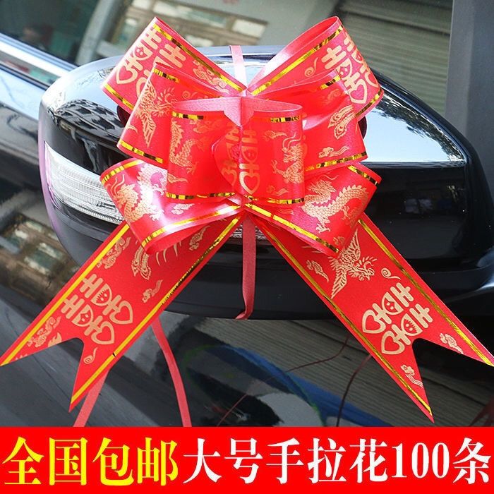 结婚婚车大号拉花 婚礼蝴蝶结车门把手 结婚布置彩带拉花装饰丝带