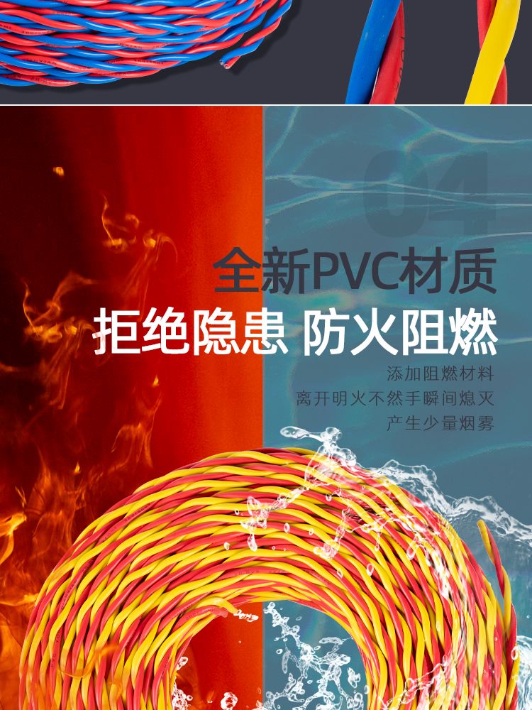 电线软线家用RVS花线两芯双绞线1.5/2.5平方消防照明广告灯电源线