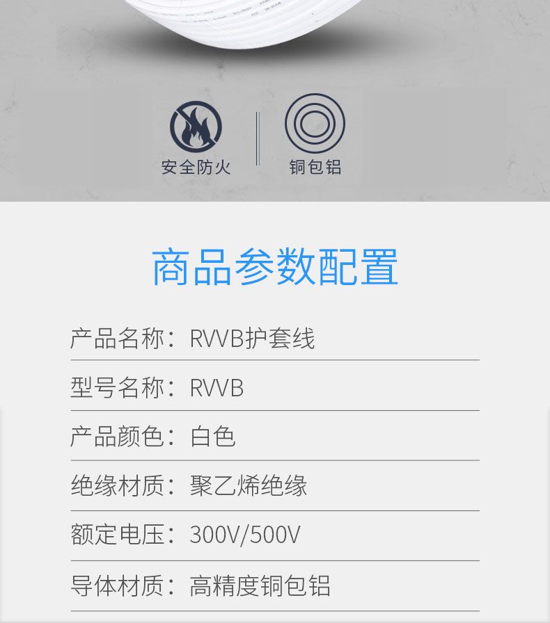 室外电线2芯1.5/2.5平方家用护套线插座电动车充电照明监控电源线