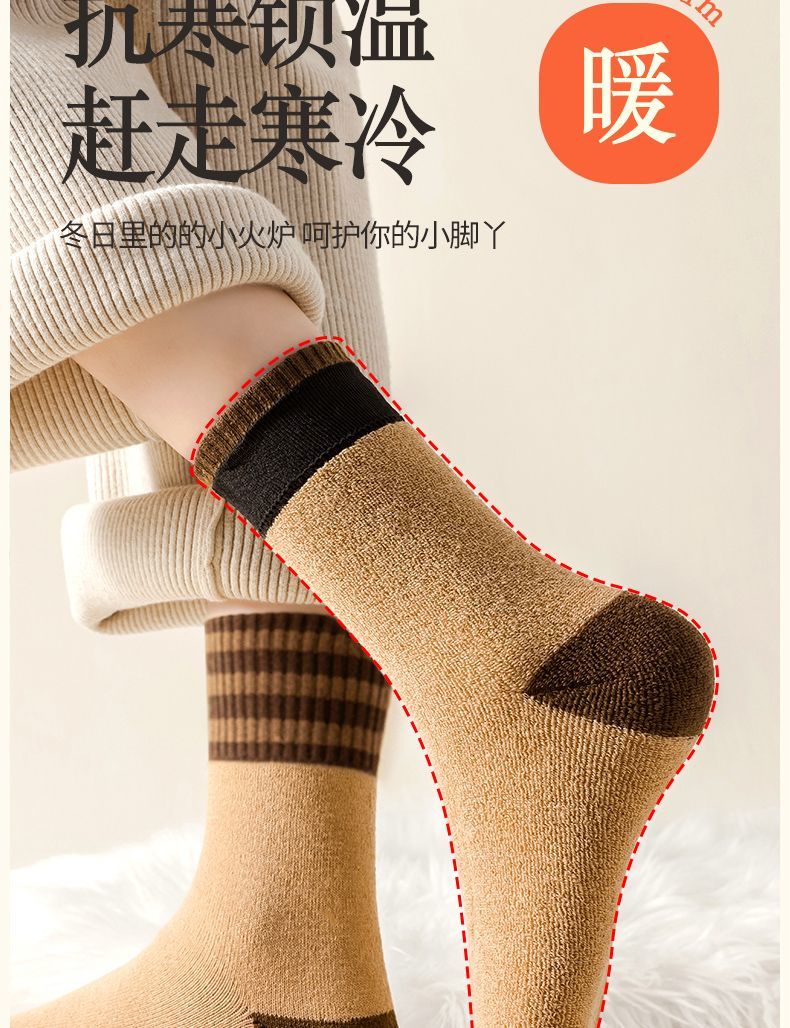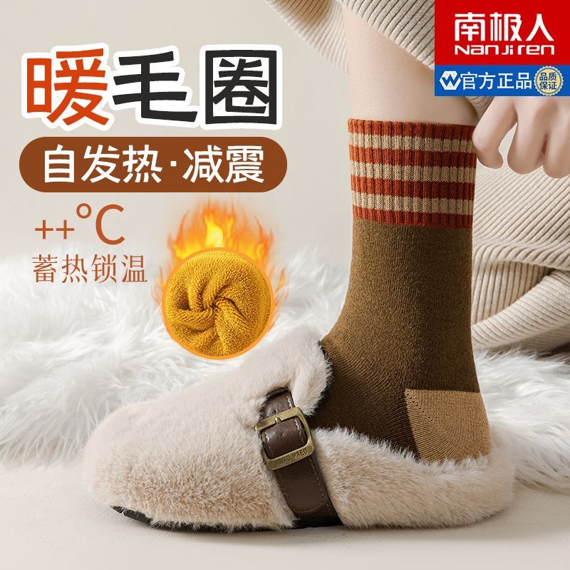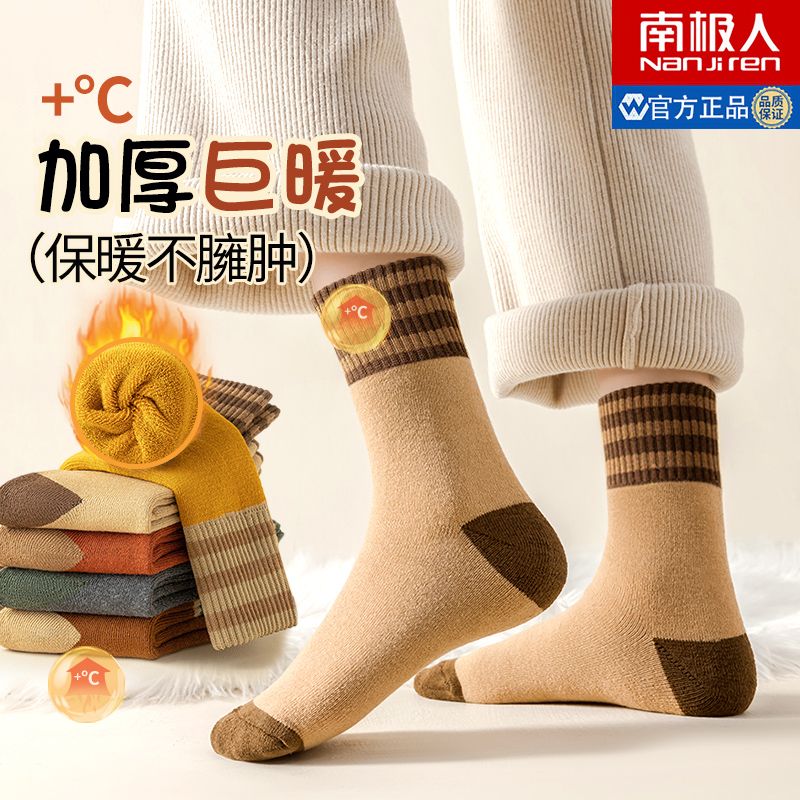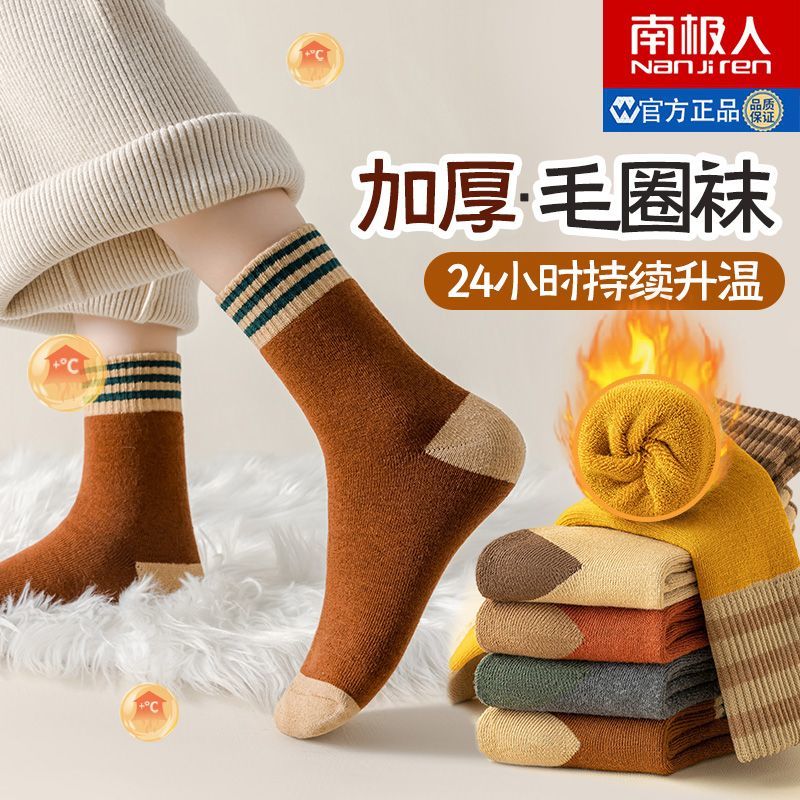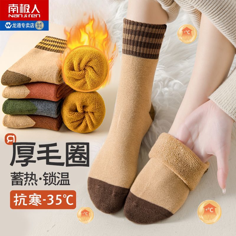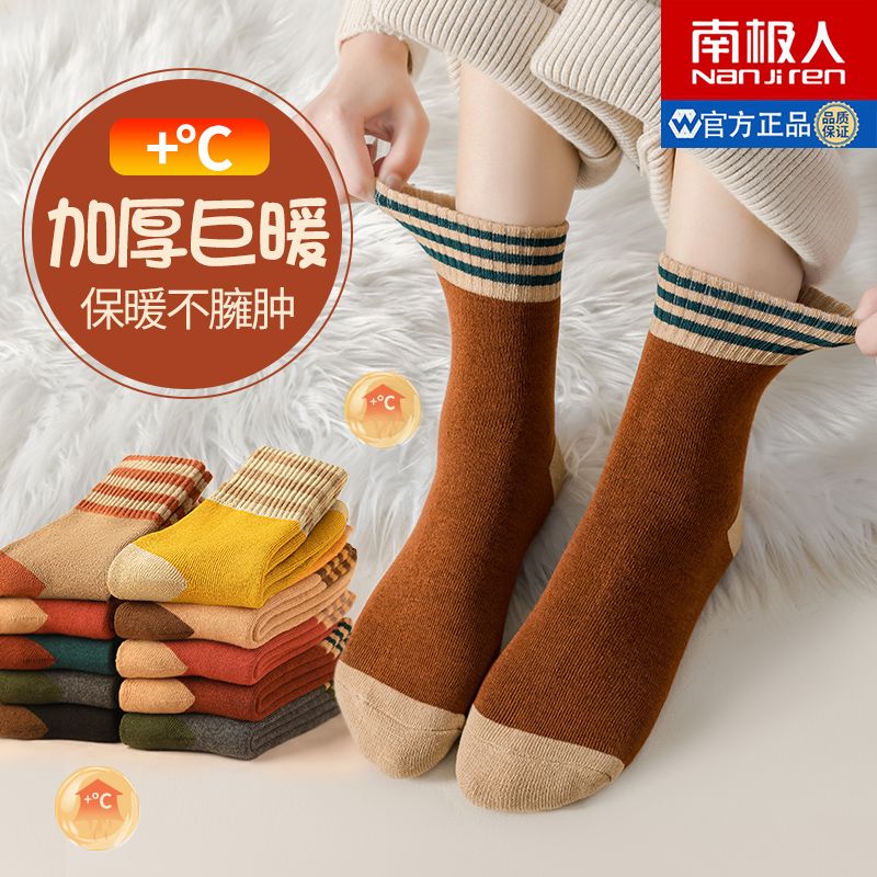 南极人加厚纯棉袜子女冬天加绒保暖中筒袜秋冬季厚袜子毛圈雪地袜