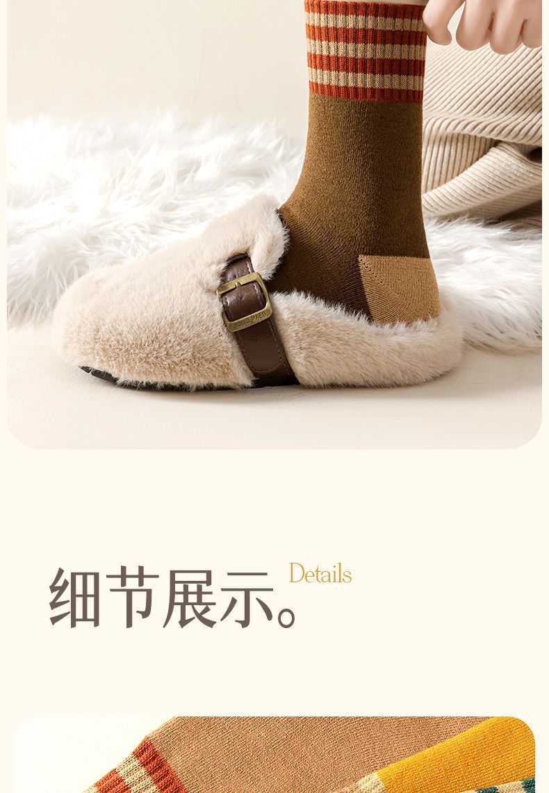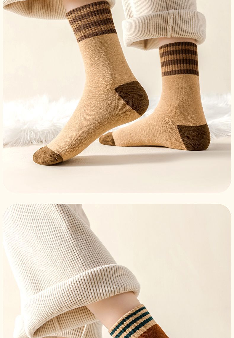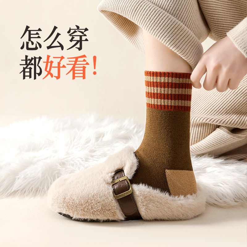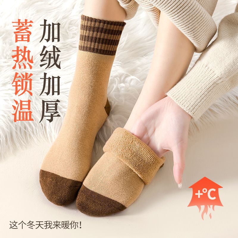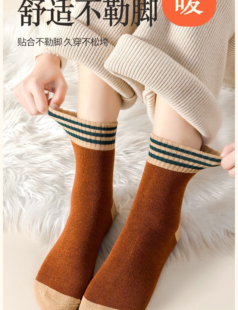 南极人加厚纯棉袜子女冬天加绒保暖中筒袜秋冬季厚袜子毛圈雪地袜