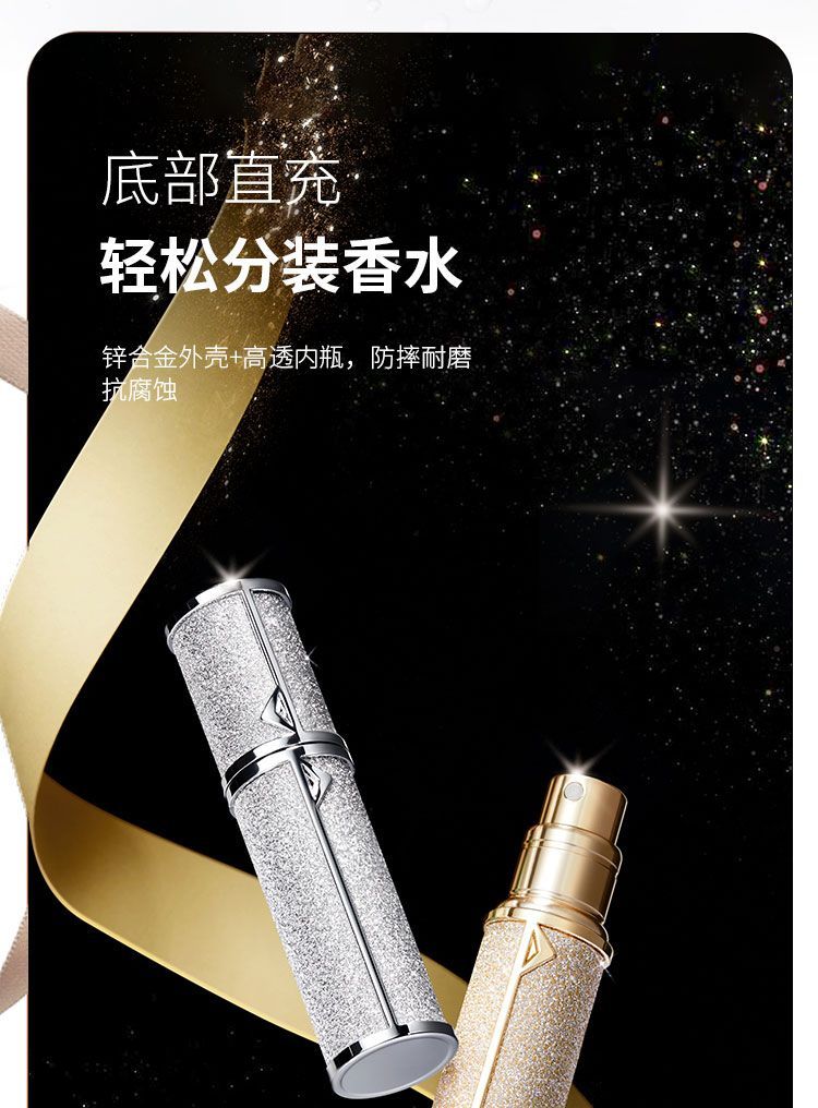 便携式香水分装瓶底部直充新款闪光底部直充高端香水分装瓶