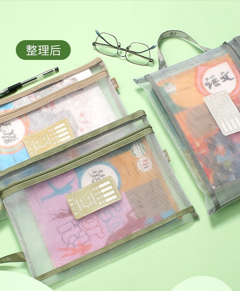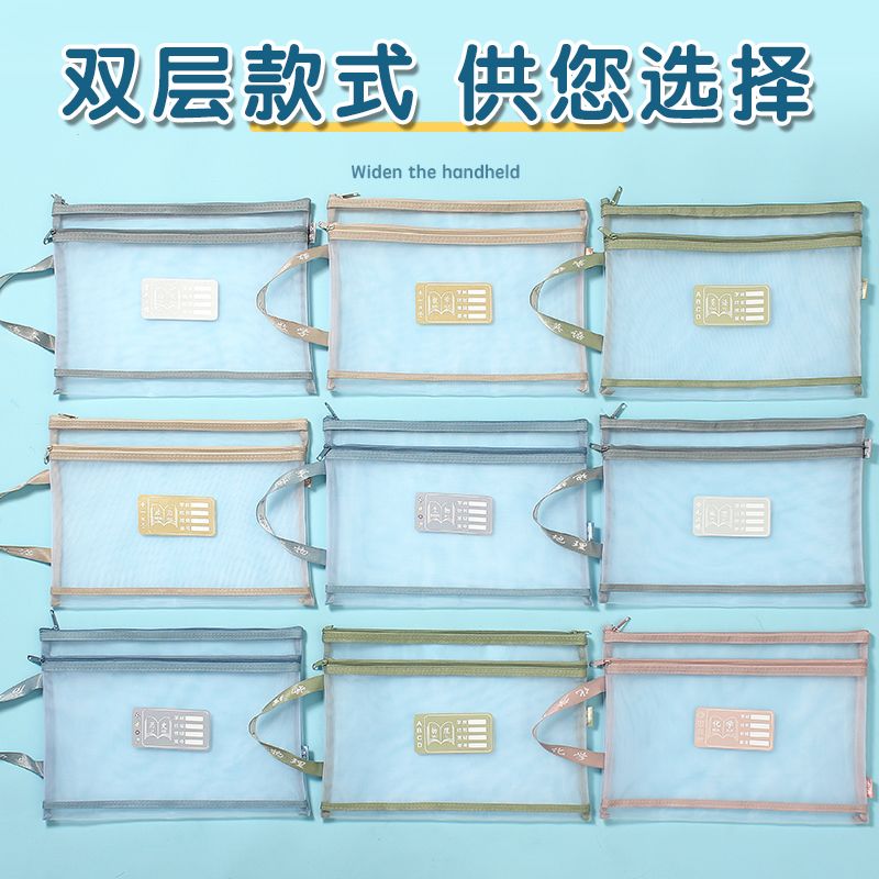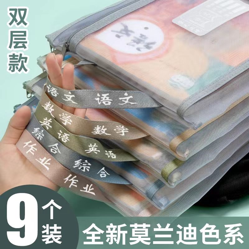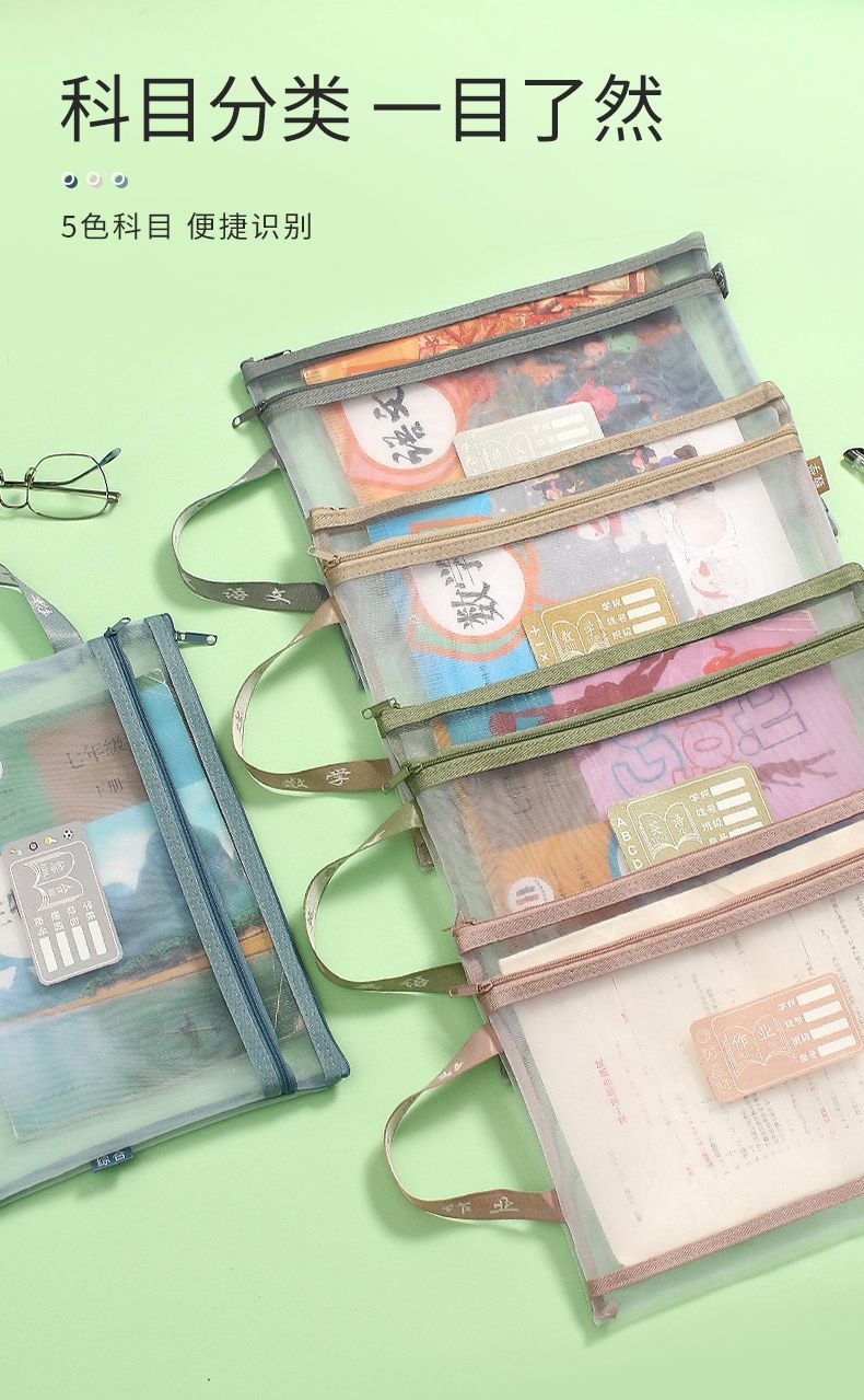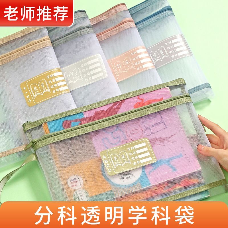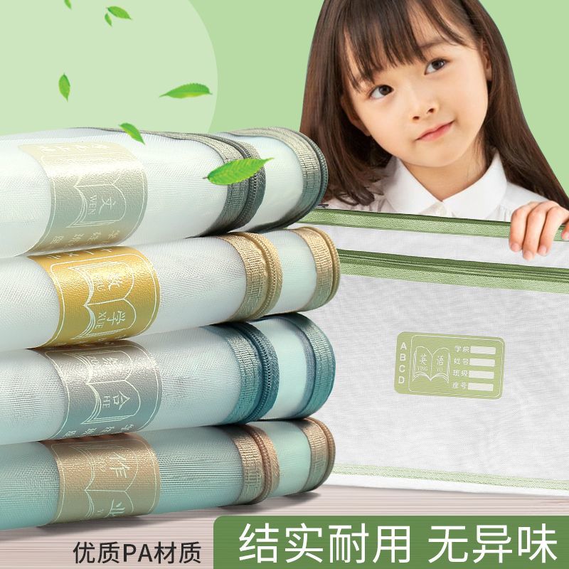 开学必备加厚科目分类文件袋透明网纱大容量学生试卷课书本收纳袋