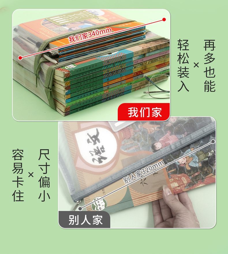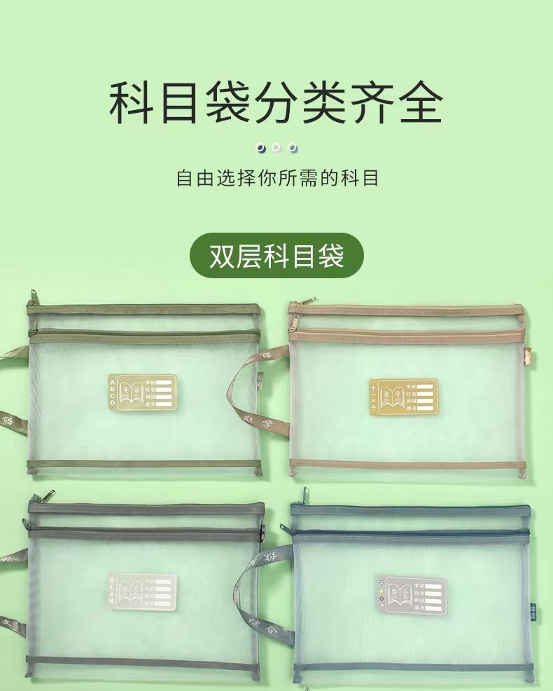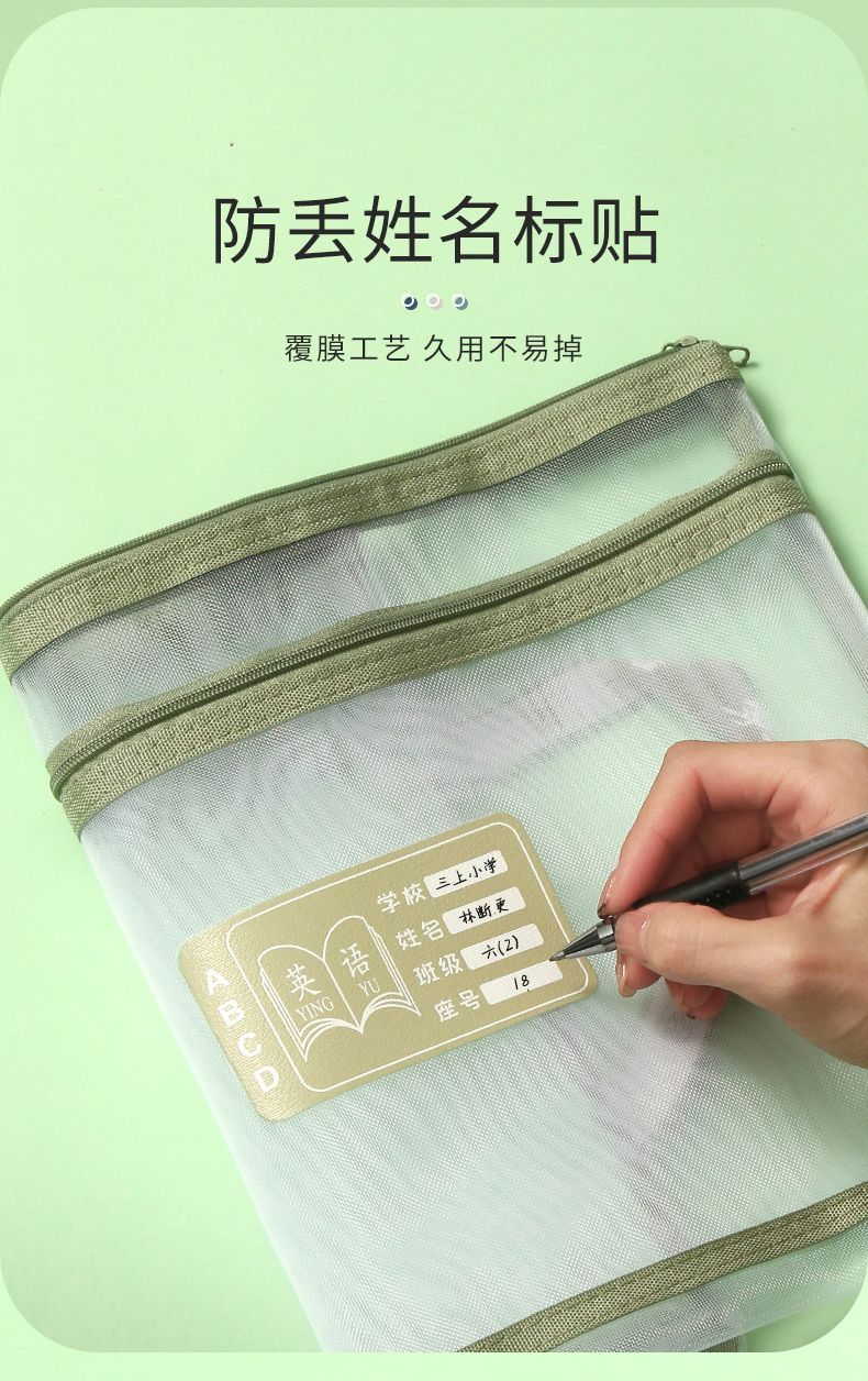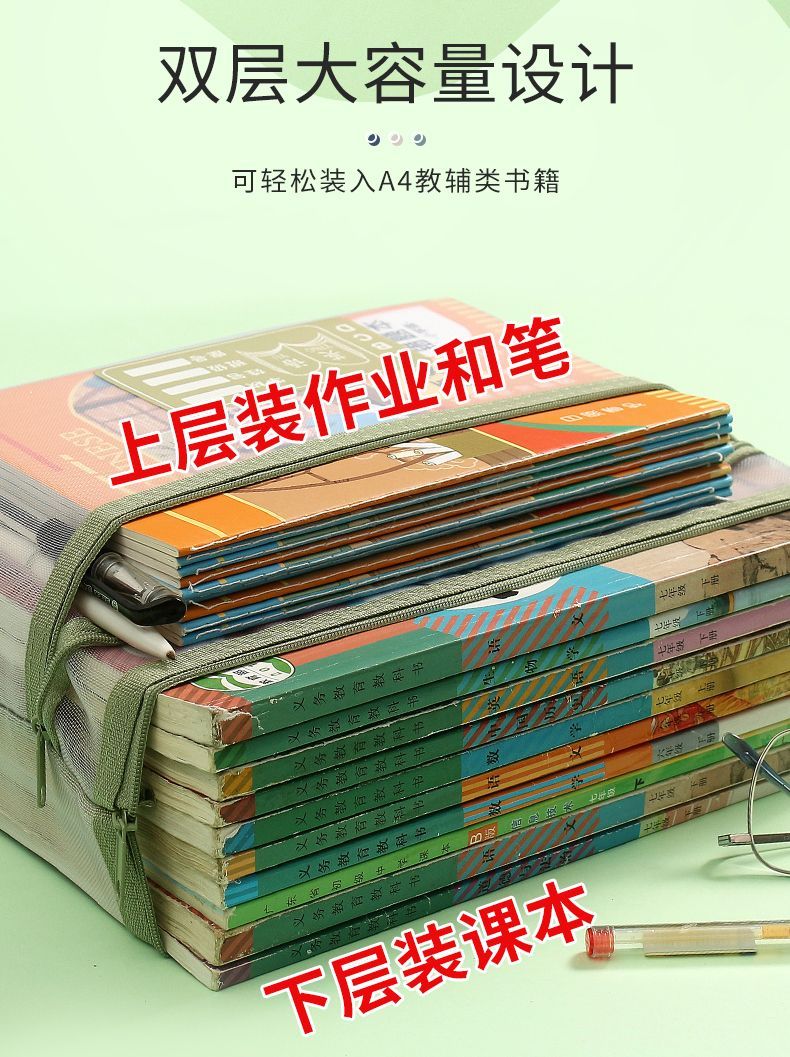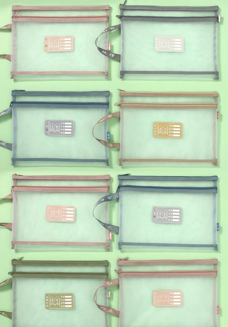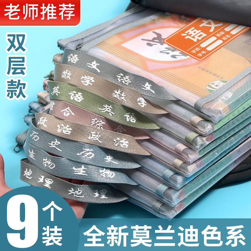 开学必备加厚科目分类文件袋透明网纱大容量学生试卷课书本收纳袋