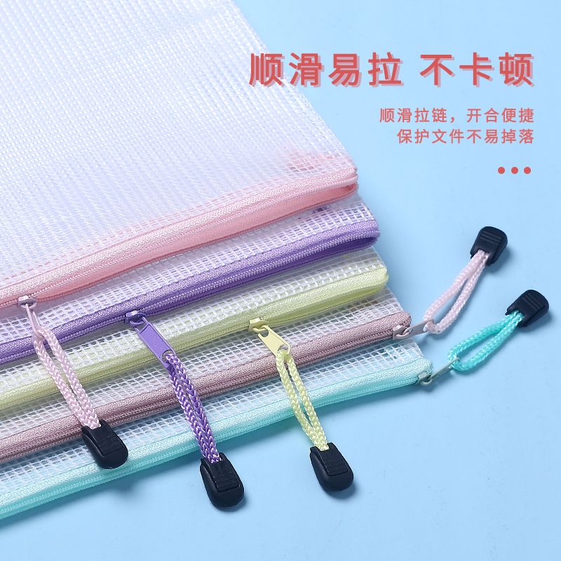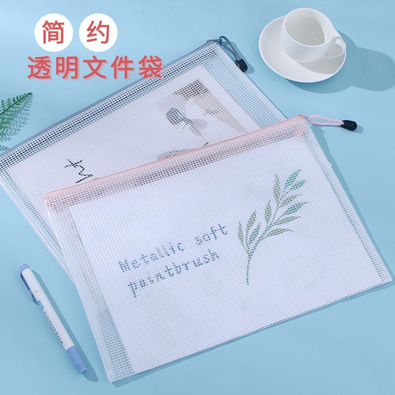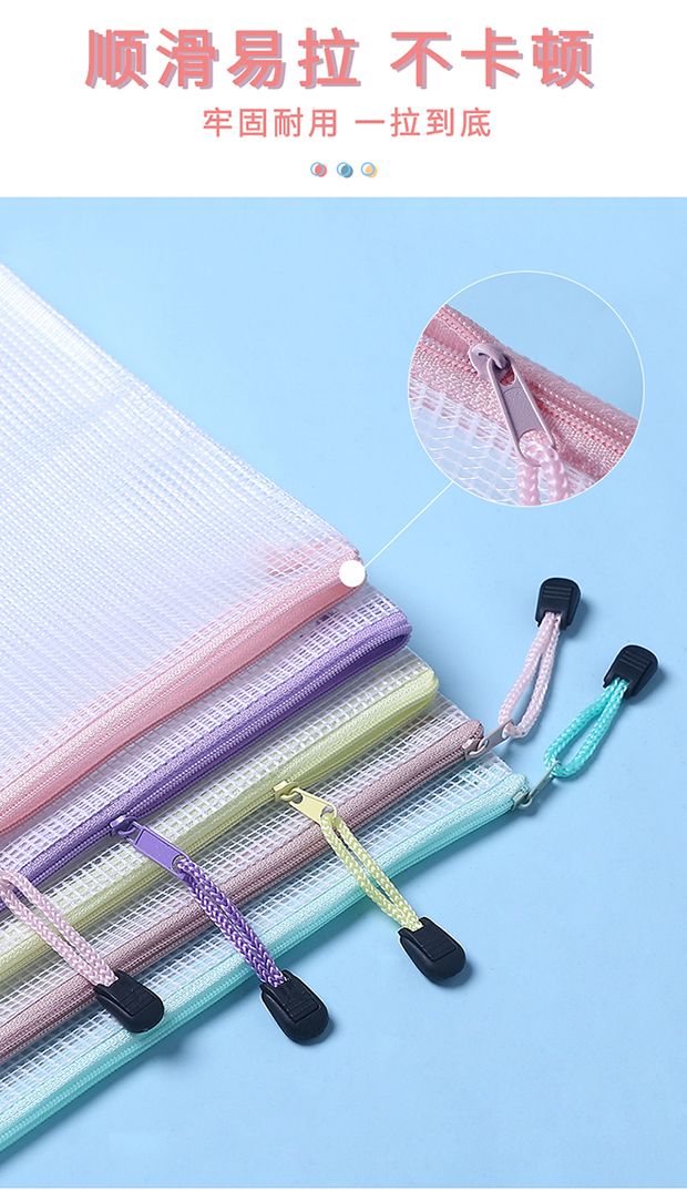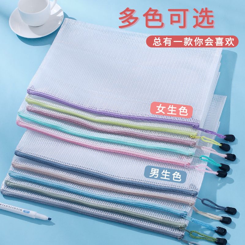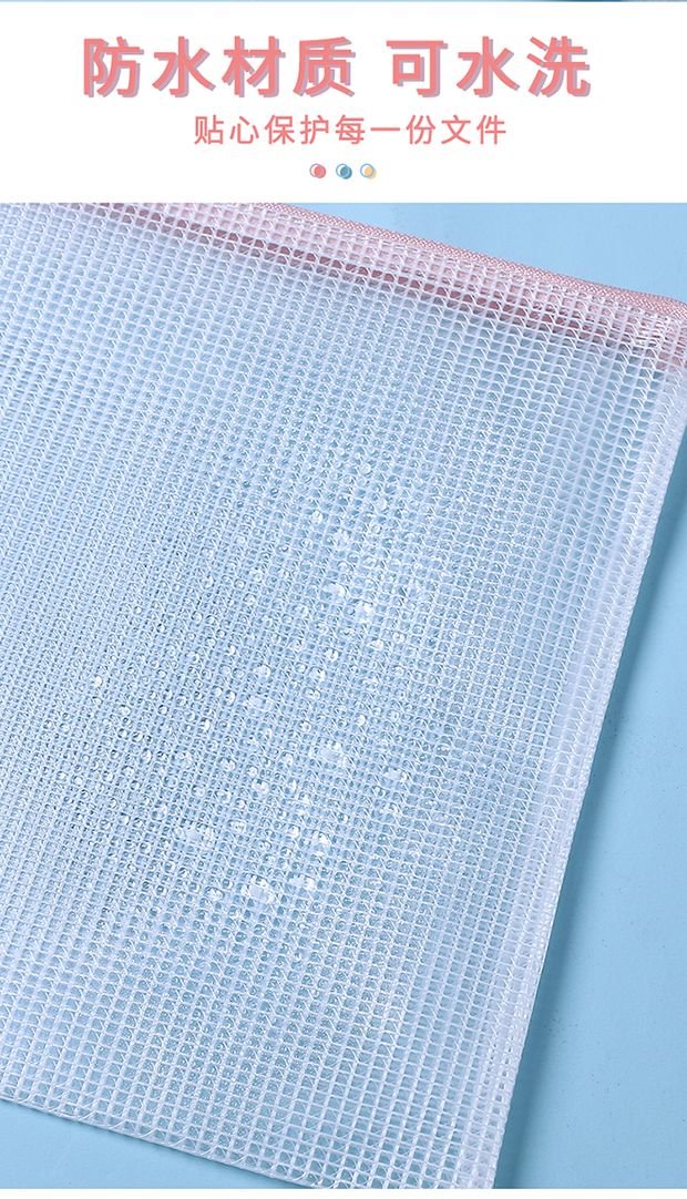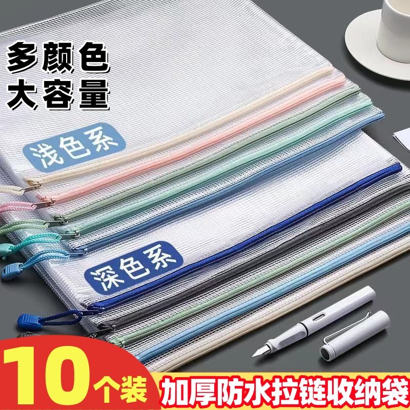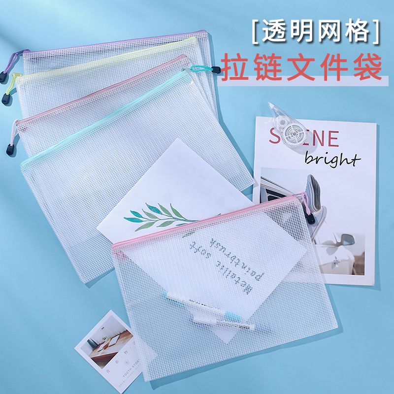 开学必备莫兰迪A4透明网格文件拉链袋大容量防水收纳袋10个资料袋
