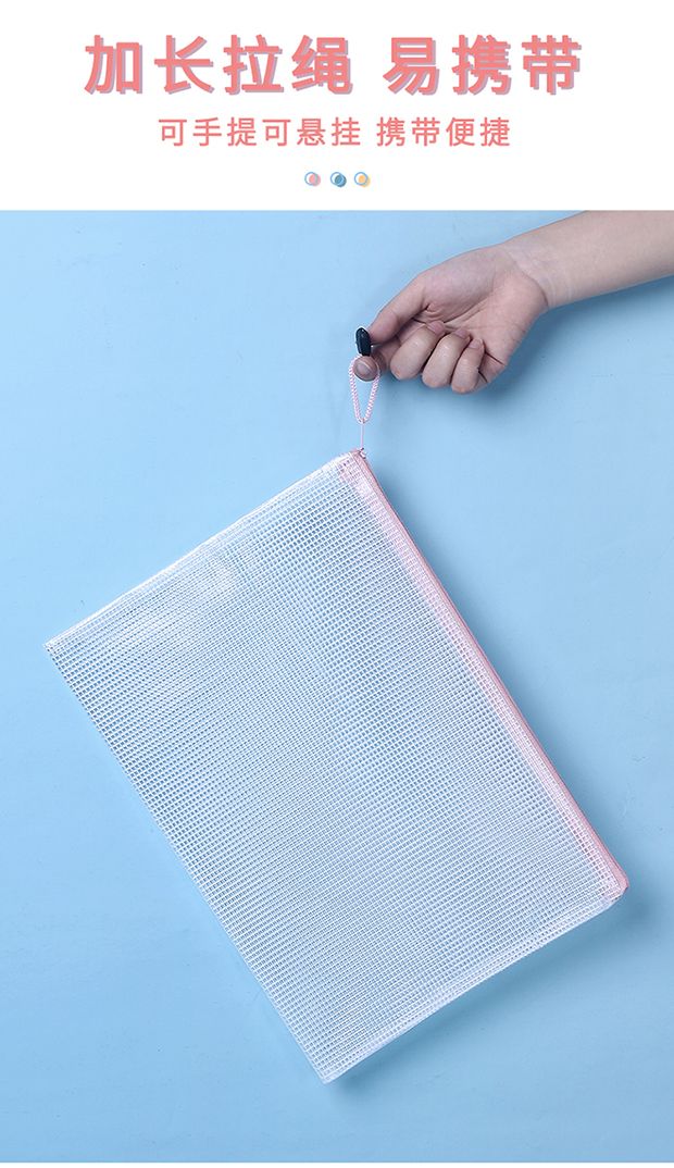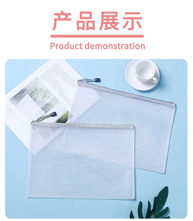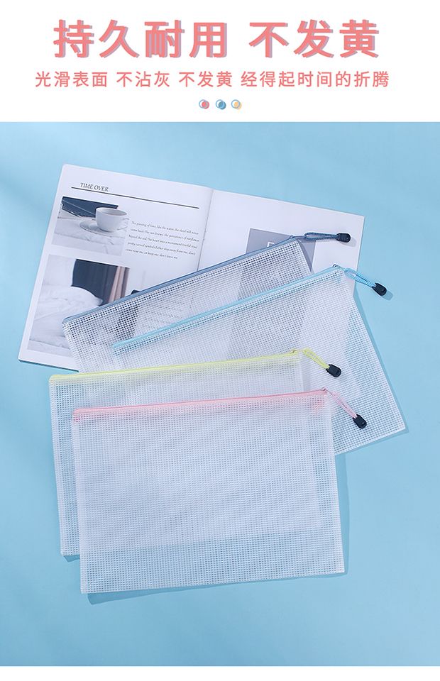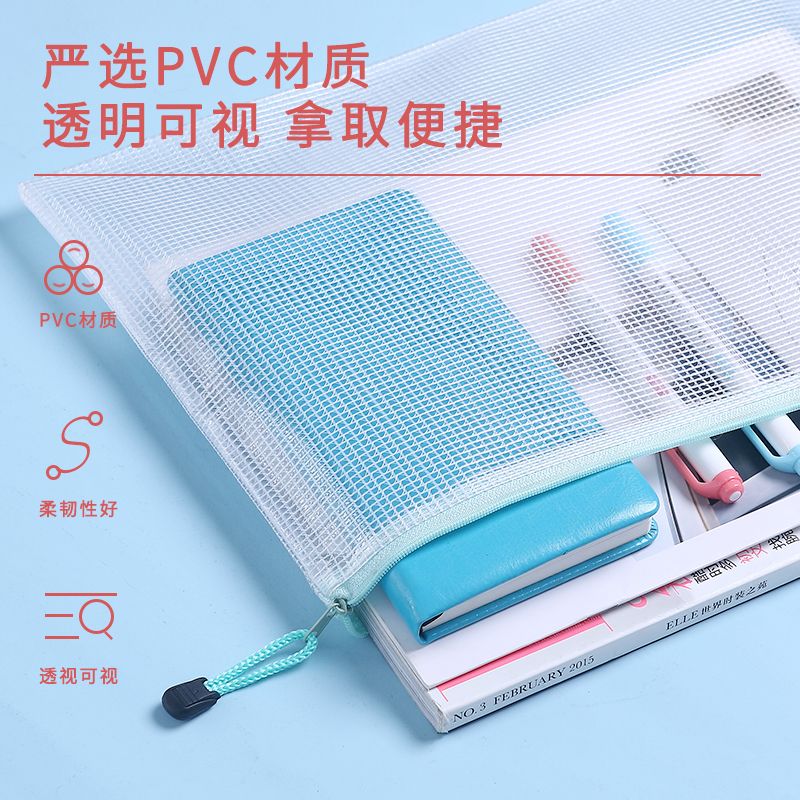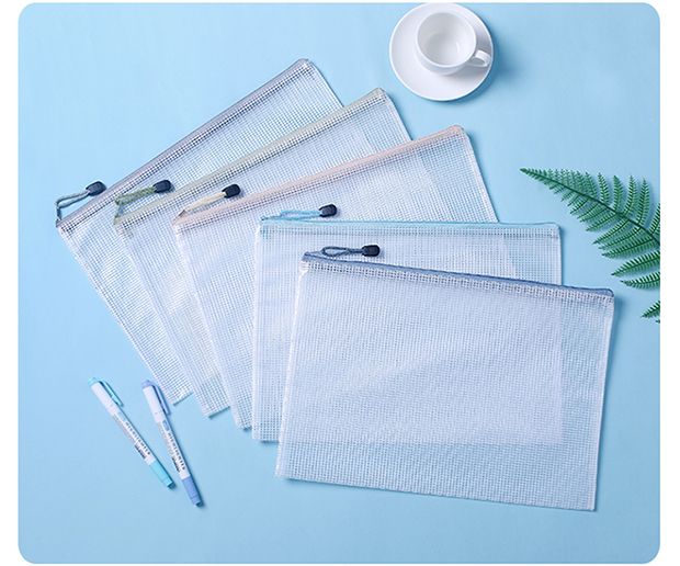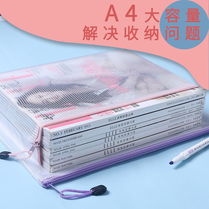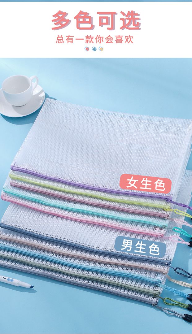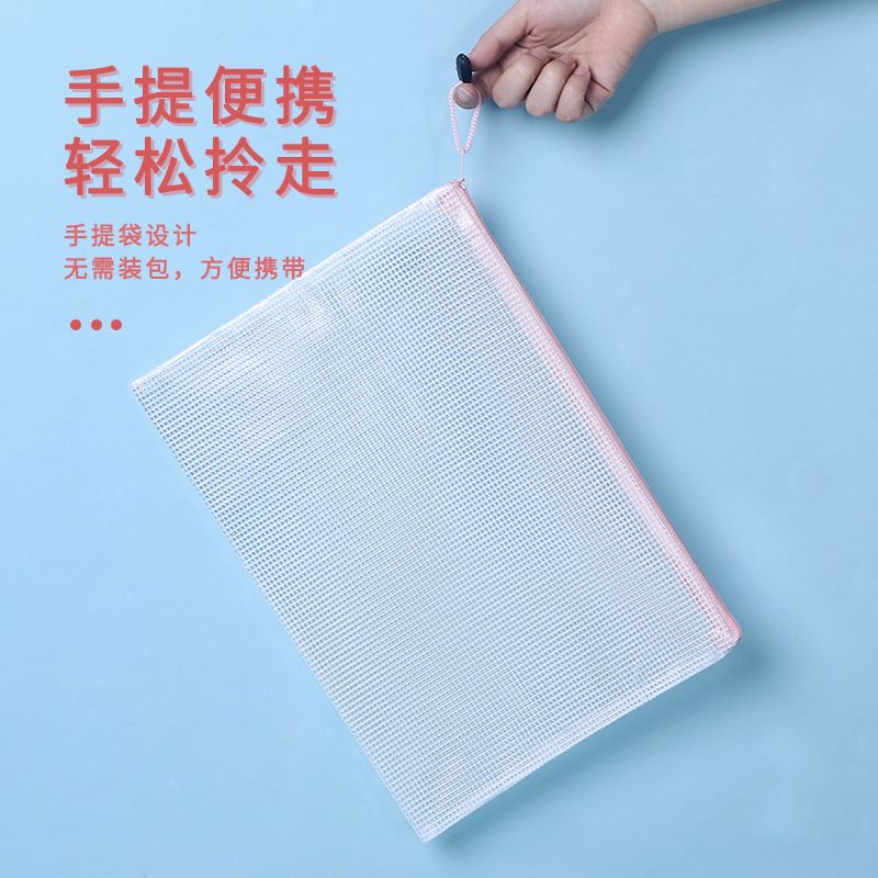 开学必备莫兰迪A4透明网格文件拉链袋大容量防水收纳袋10个资料袋
