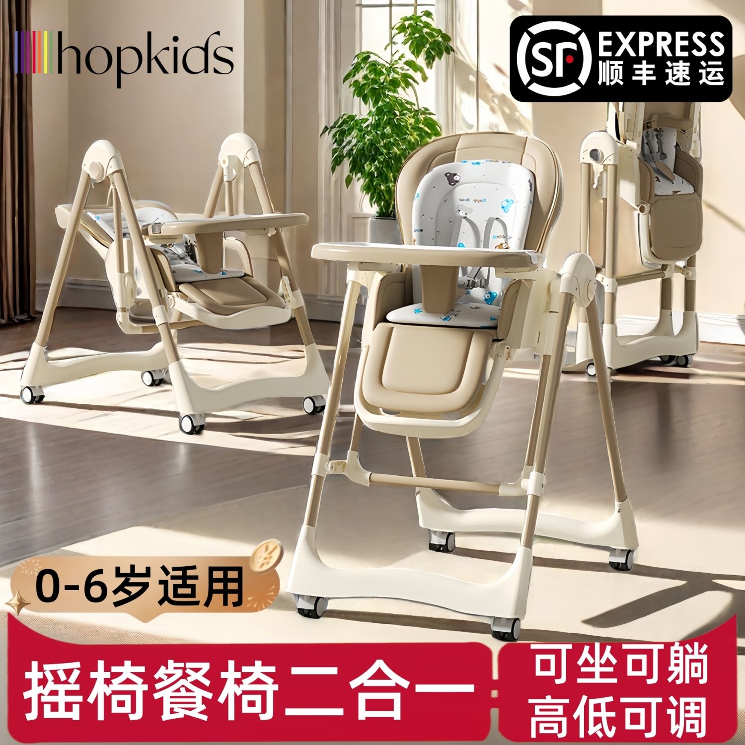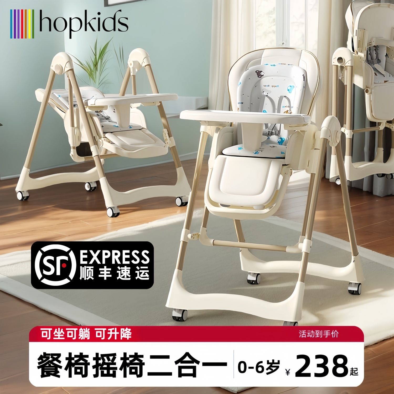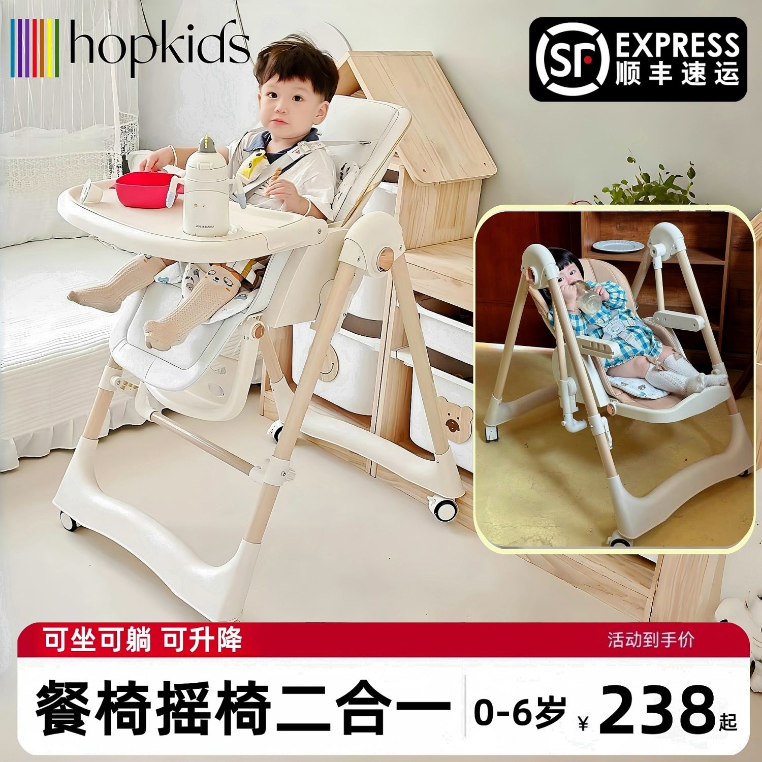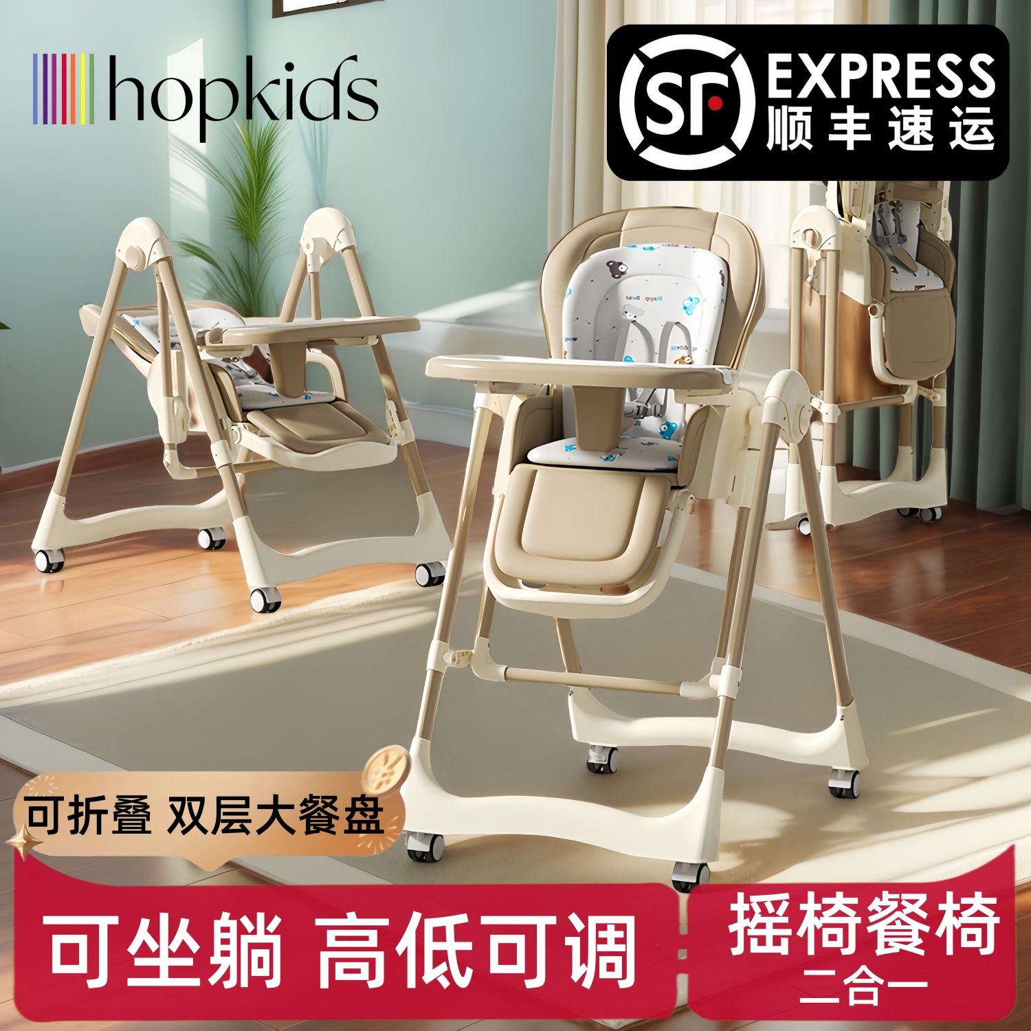 HOPKIDS宝宝餐椅桌婴儿可折叠多功能儿童便携吃饭椅家用可躺摇椅