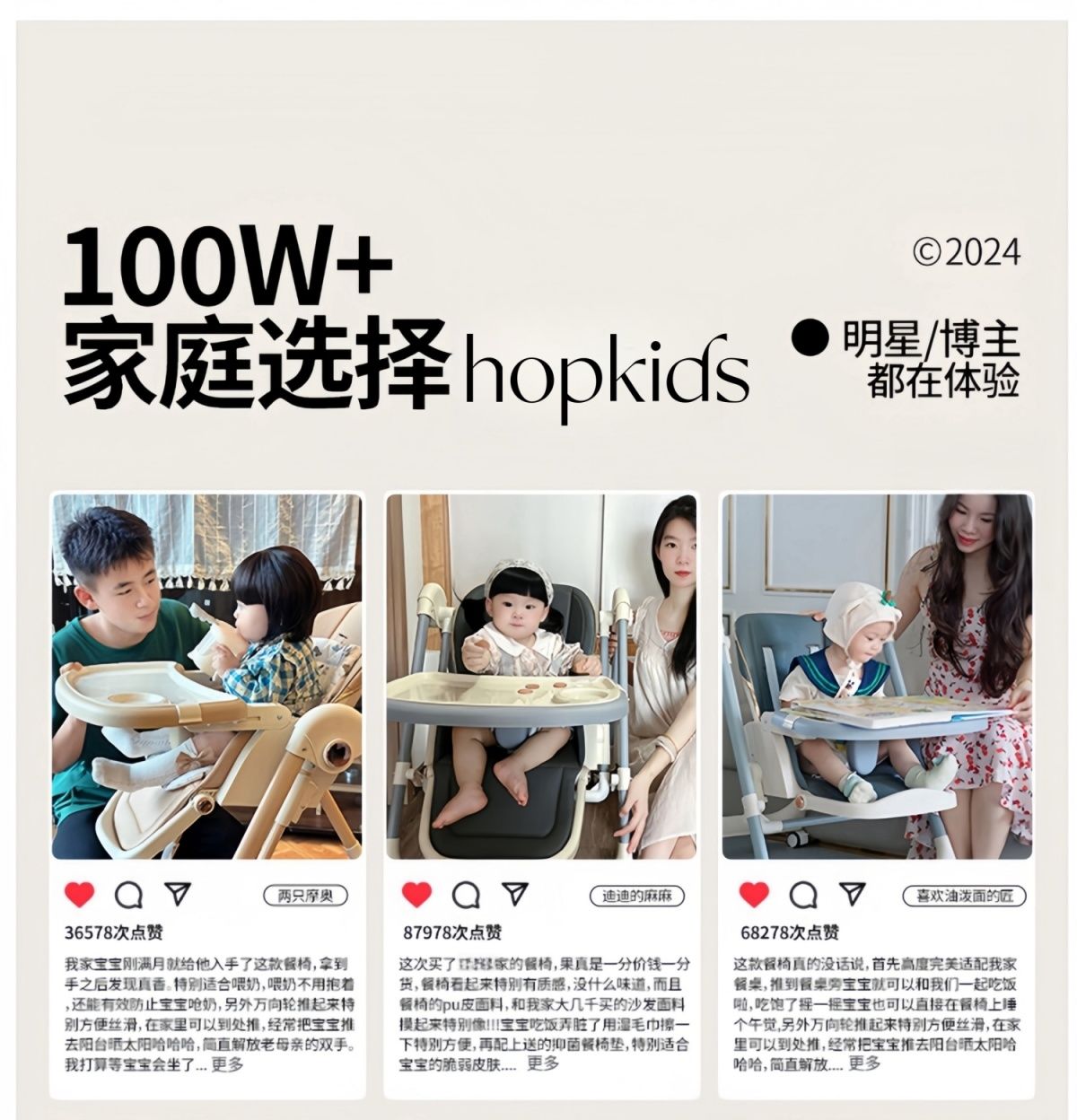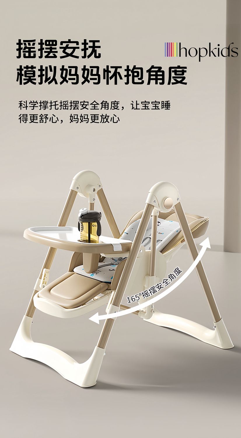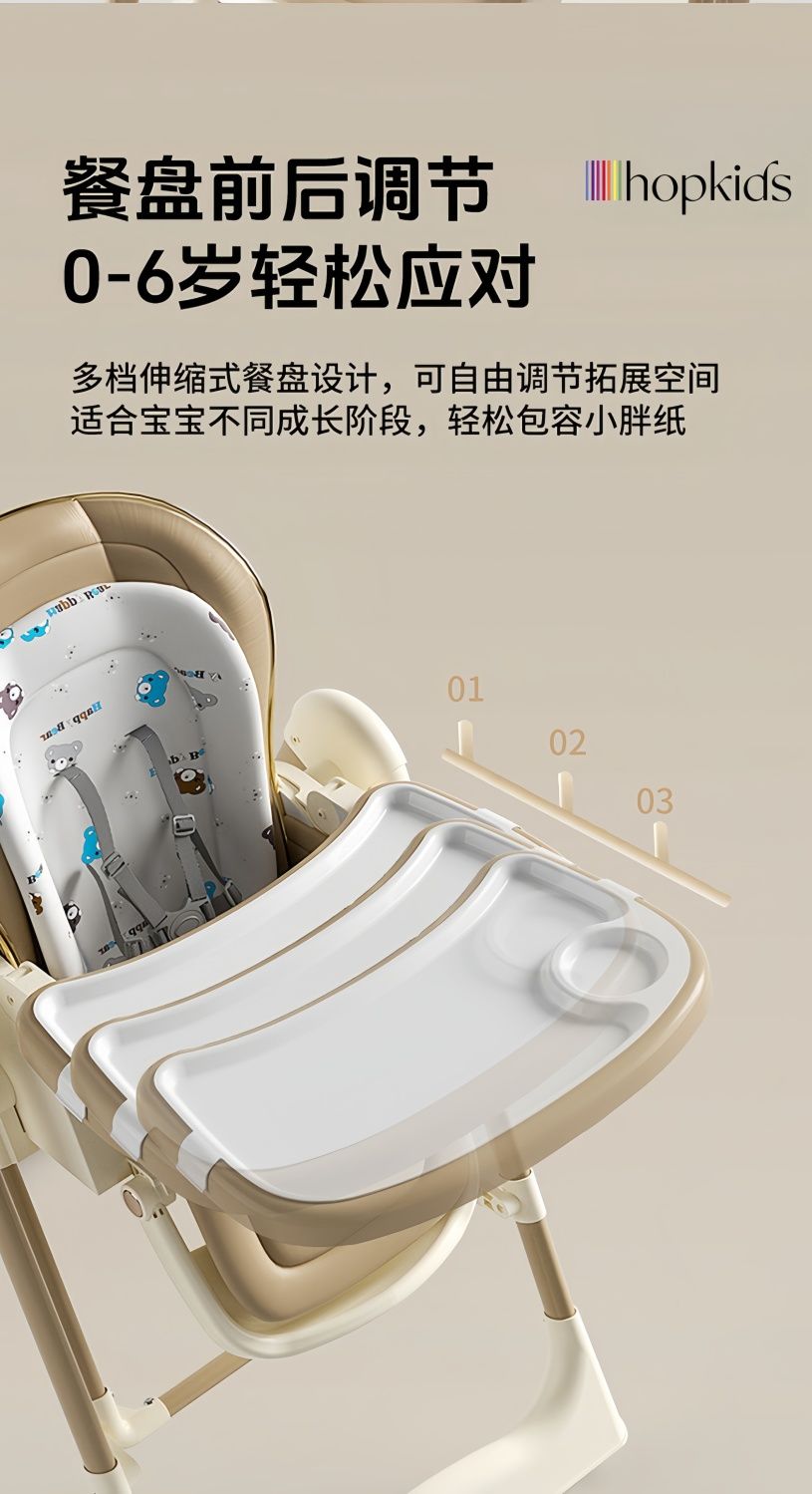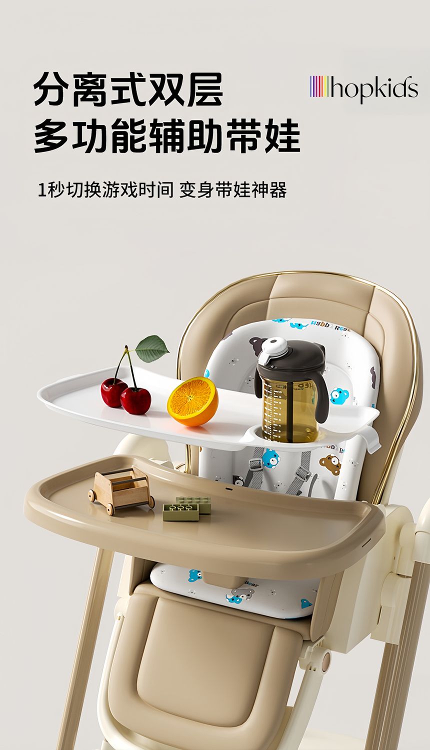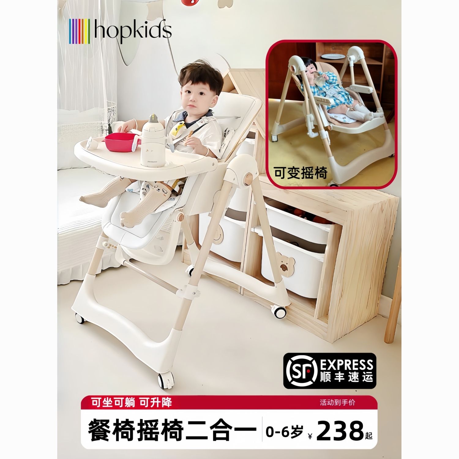 HOPKIDS宝宝餐椅桌婴儿可折叠多功能儿童便携吃饭椅家用可躺摇椅