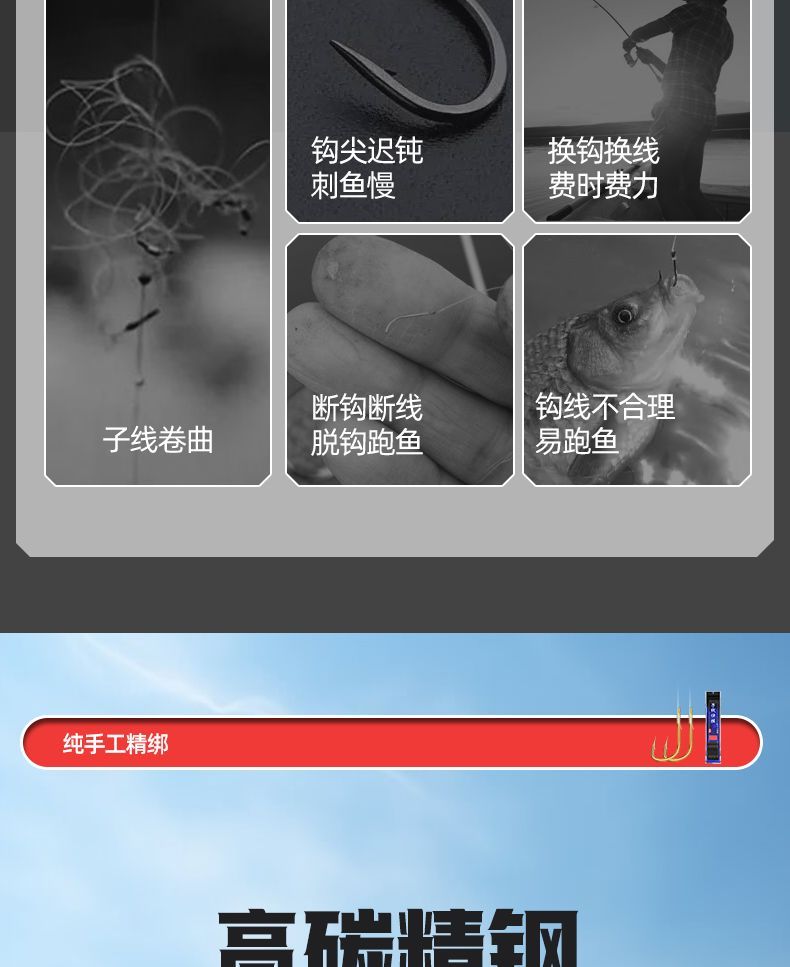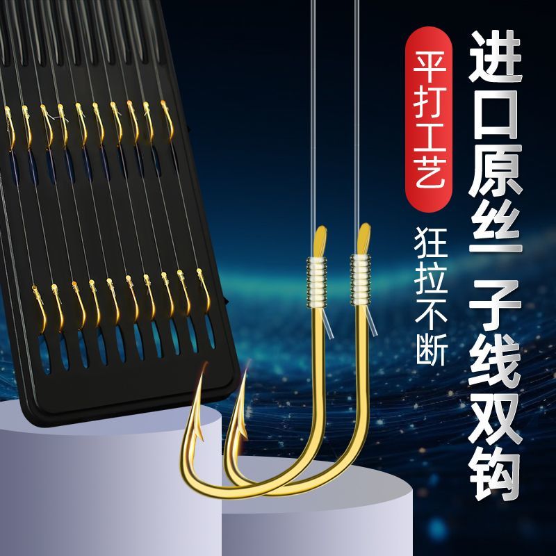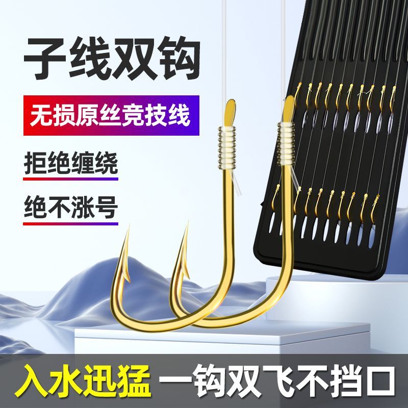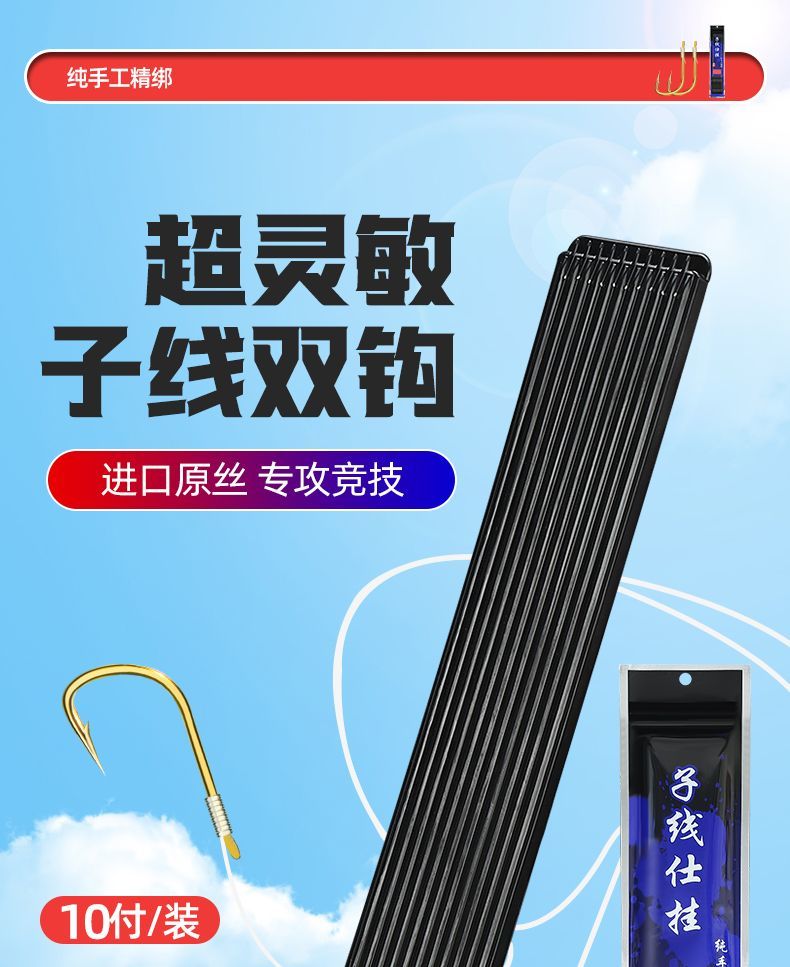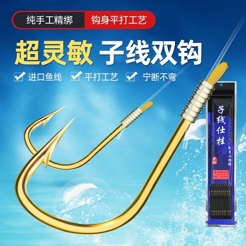 金袖子线50鱼钩好子线野钓清仓双钩成品子线套装正品鲫鱼鱼钩混搭