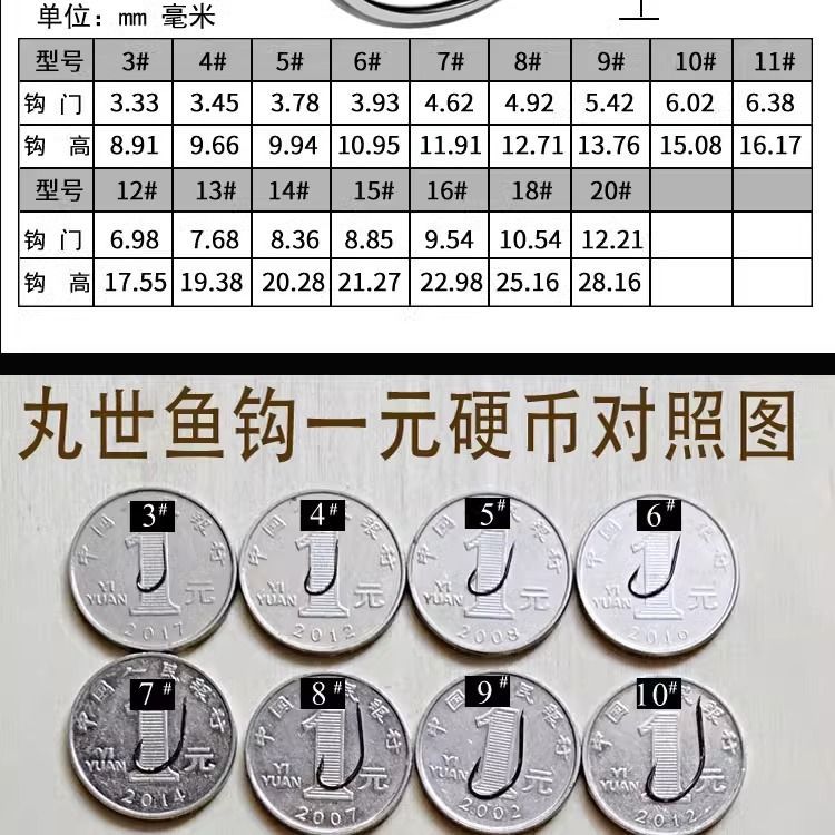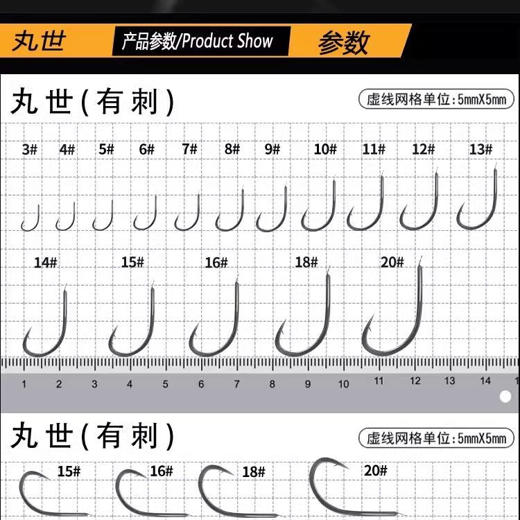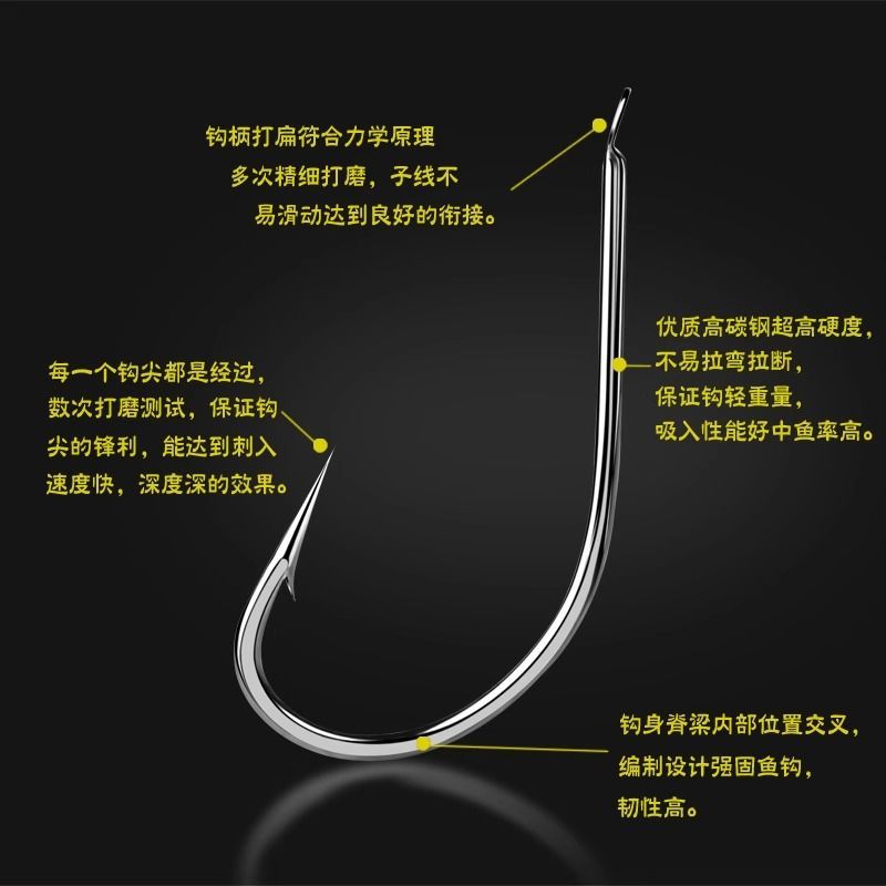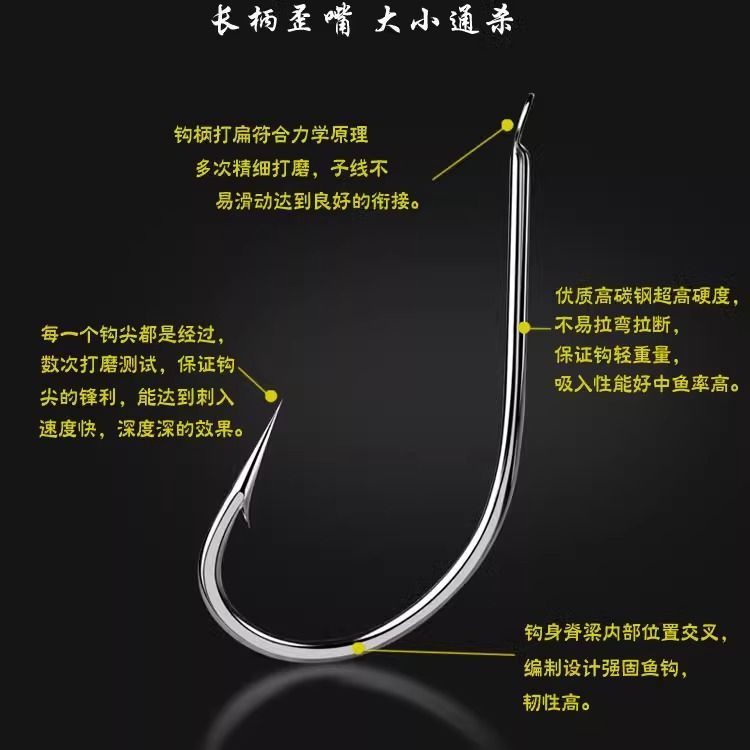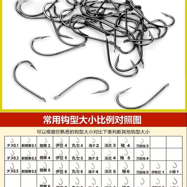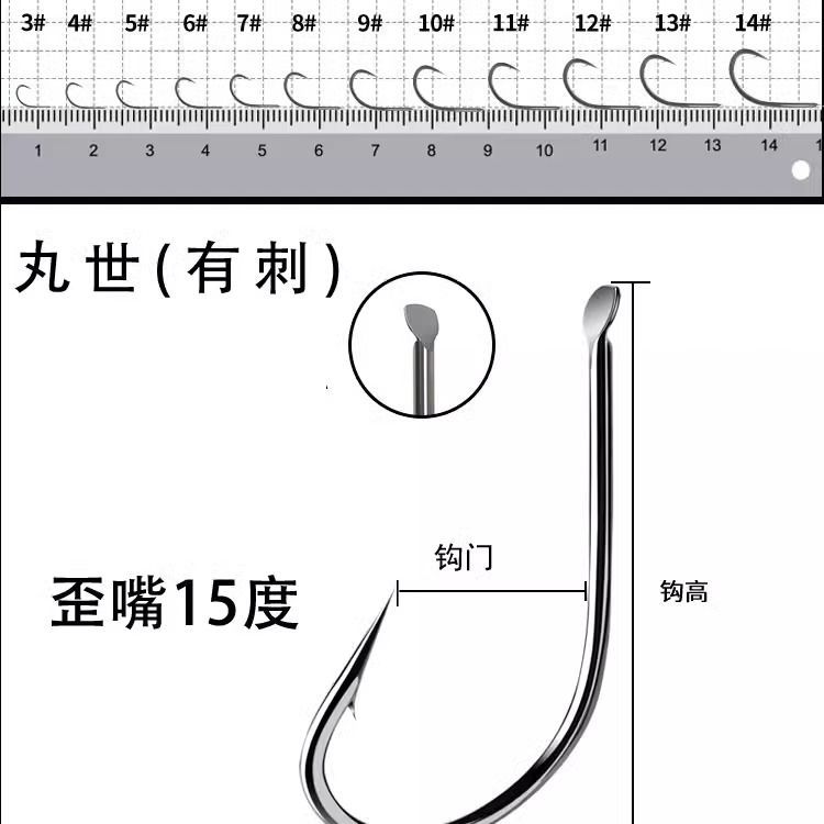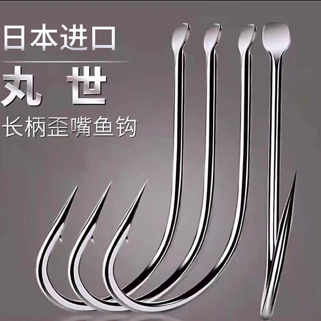 丸世鱼钩长柄散装有倒刺进口歪嘴日本细条钩鲫鱼白条黑鲷鲈鱼海钓