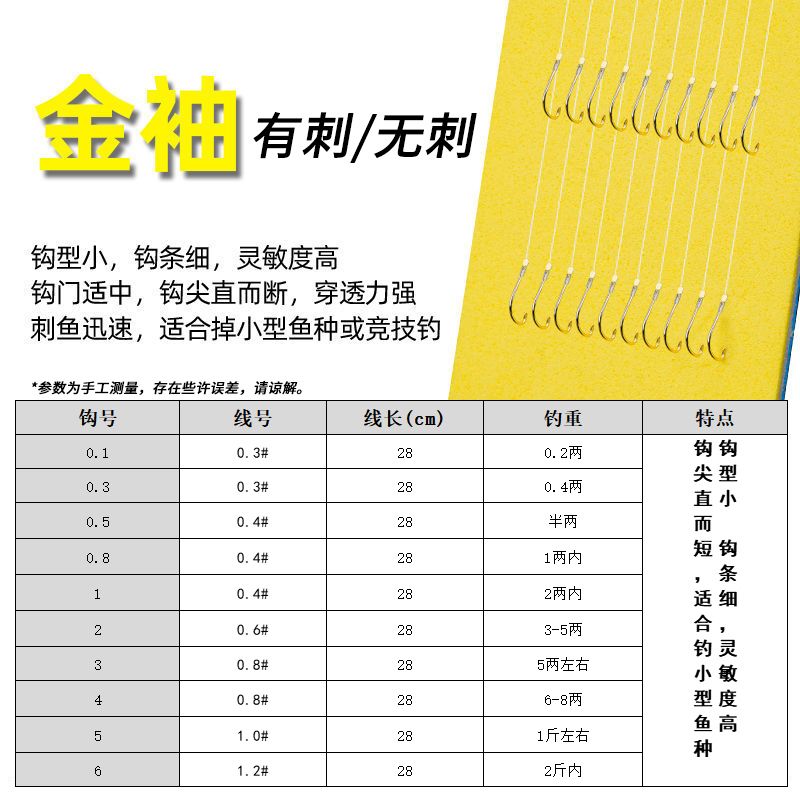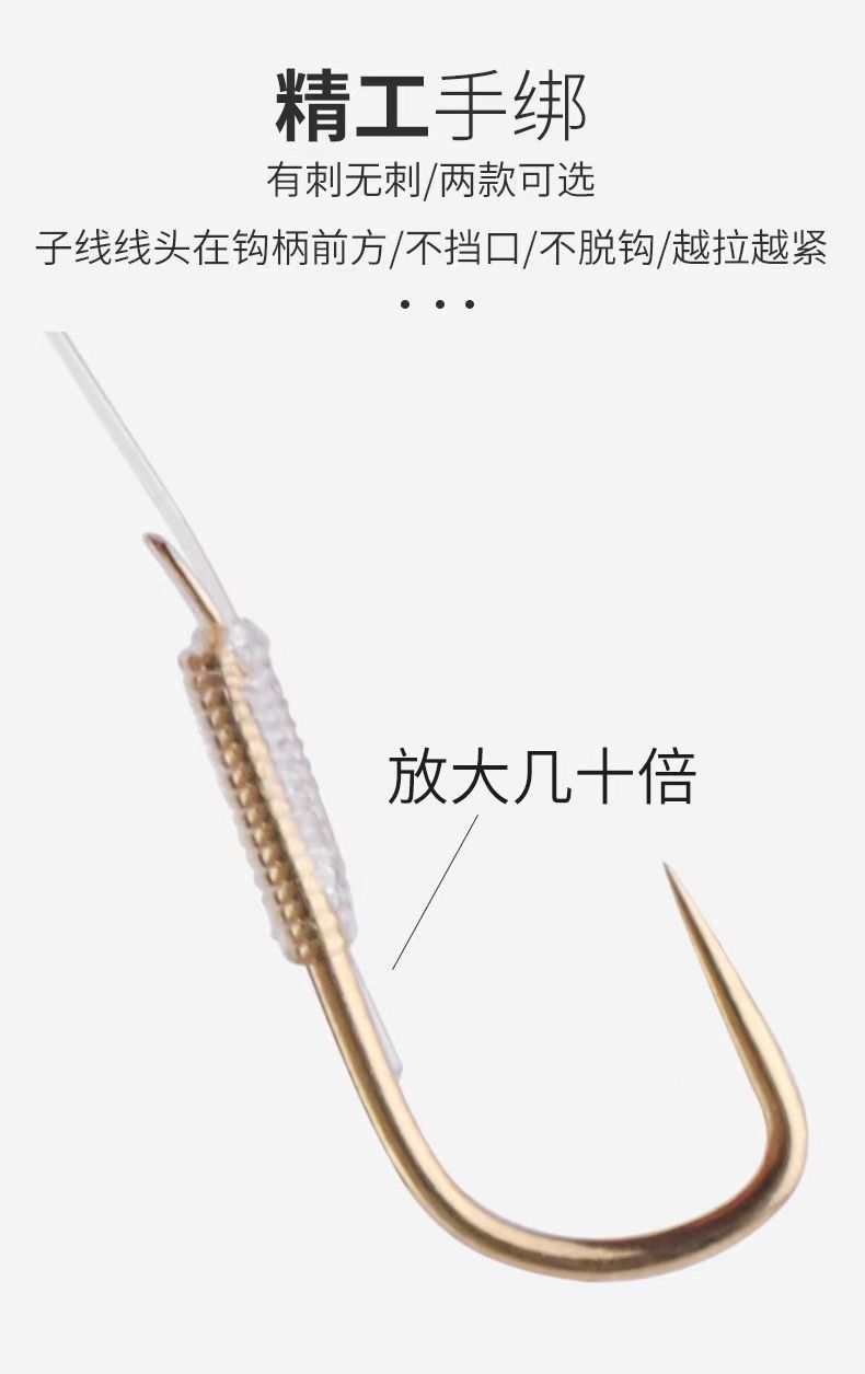 金袖无刺有刺成品子线双钩袖珍0.1号袖钩白条鱼麦穗绑好超小鱼钩