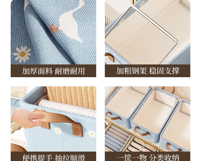 钢架衣服收纳箱衣物裤子收纳盒可折叠布艺大容量储物箱衣柜整理箱