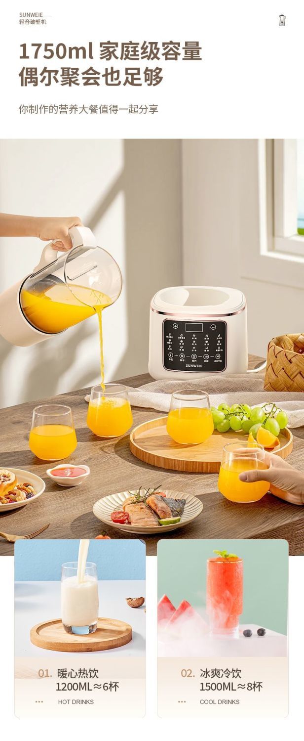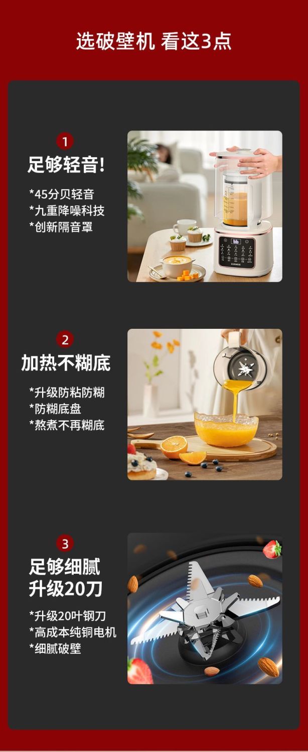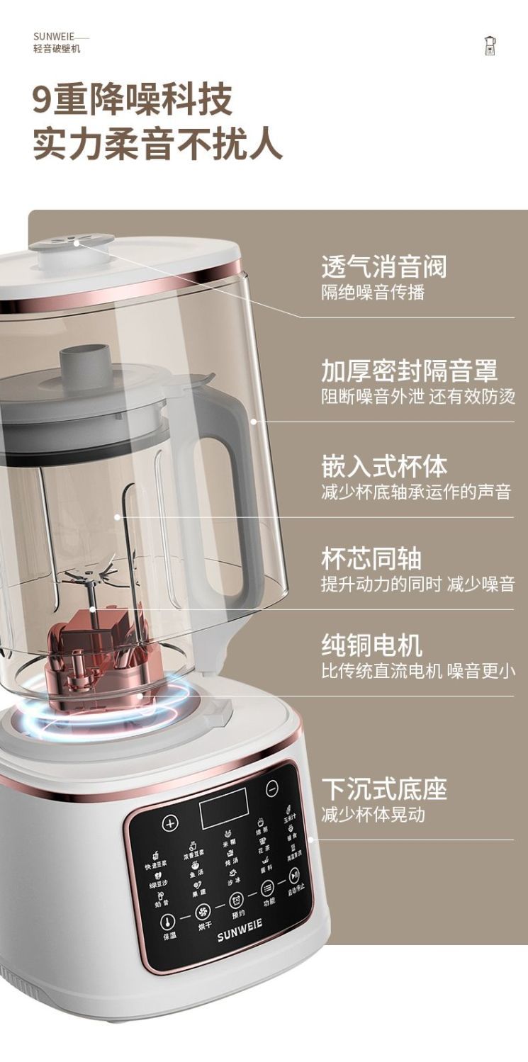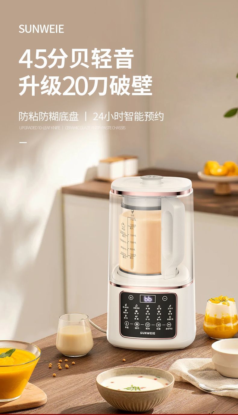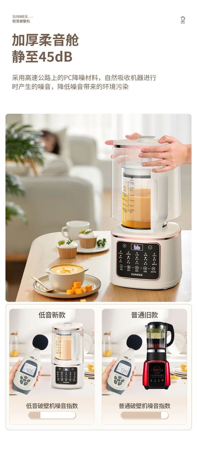 德国尚维尔多功能破壁机带隔音罩静音全自动家用加热豆浆机料理机