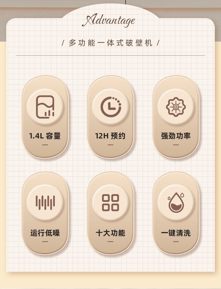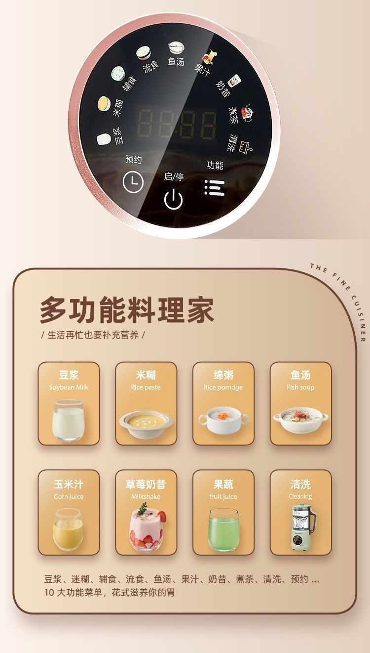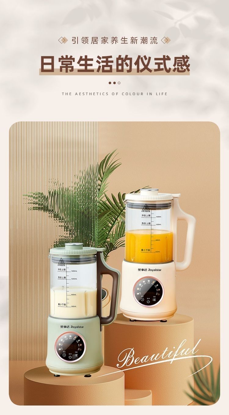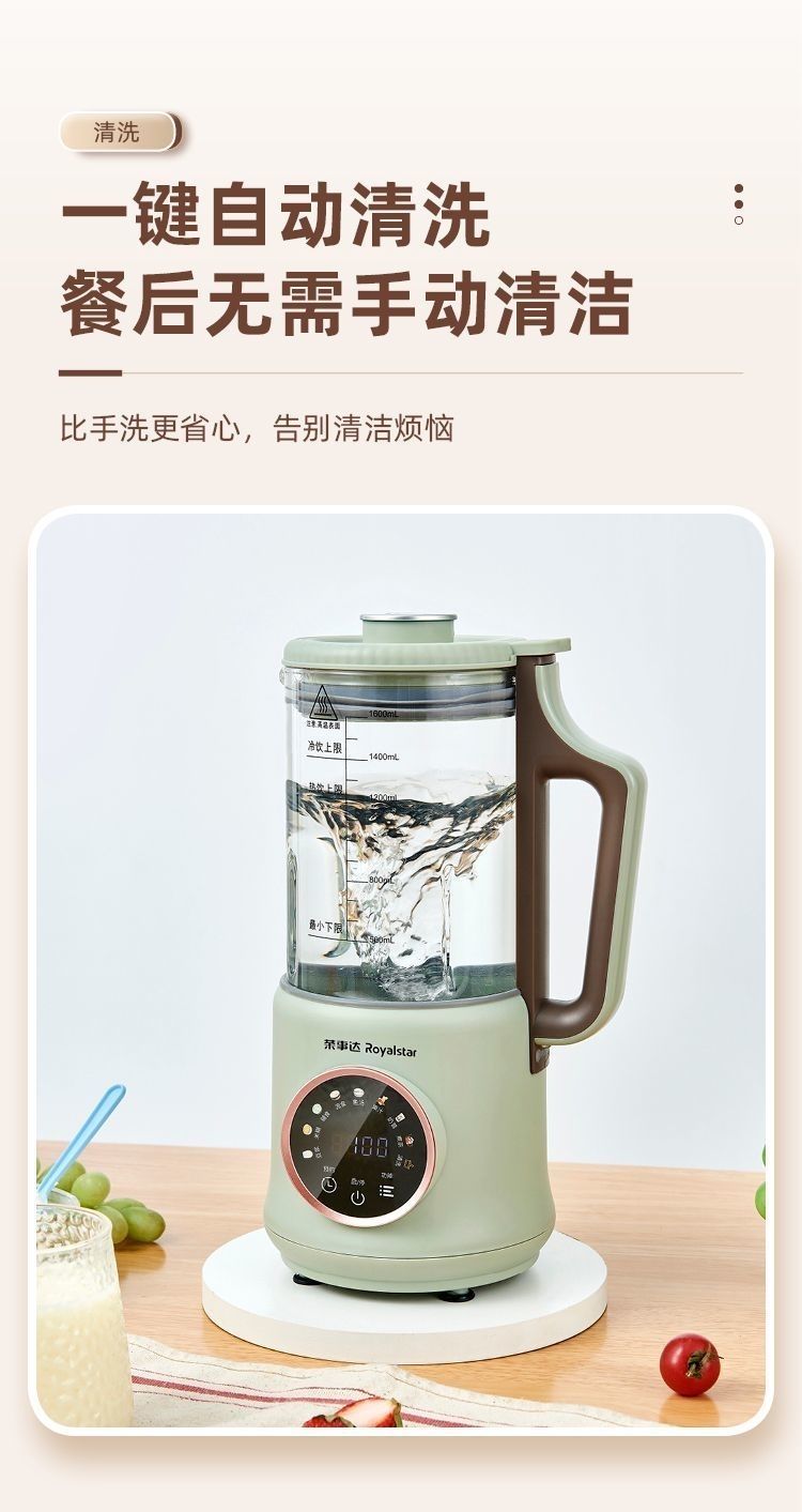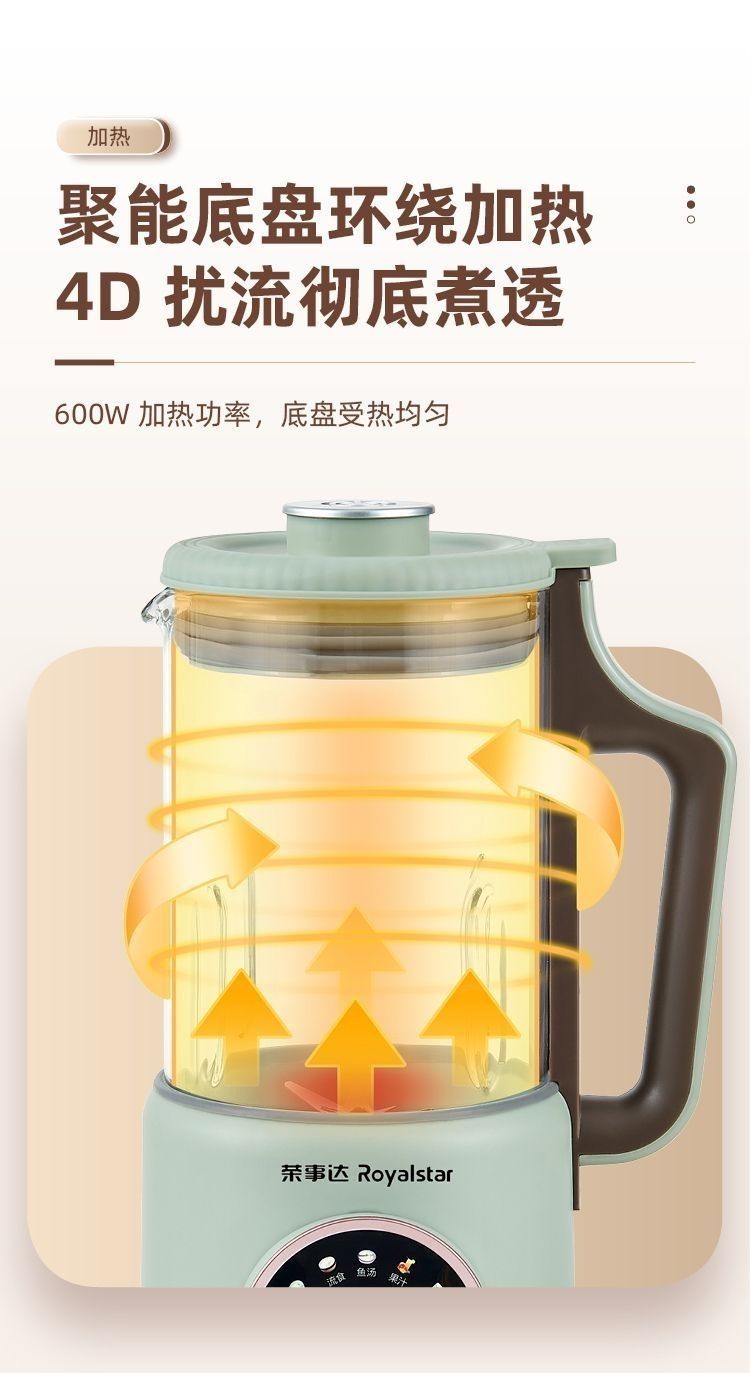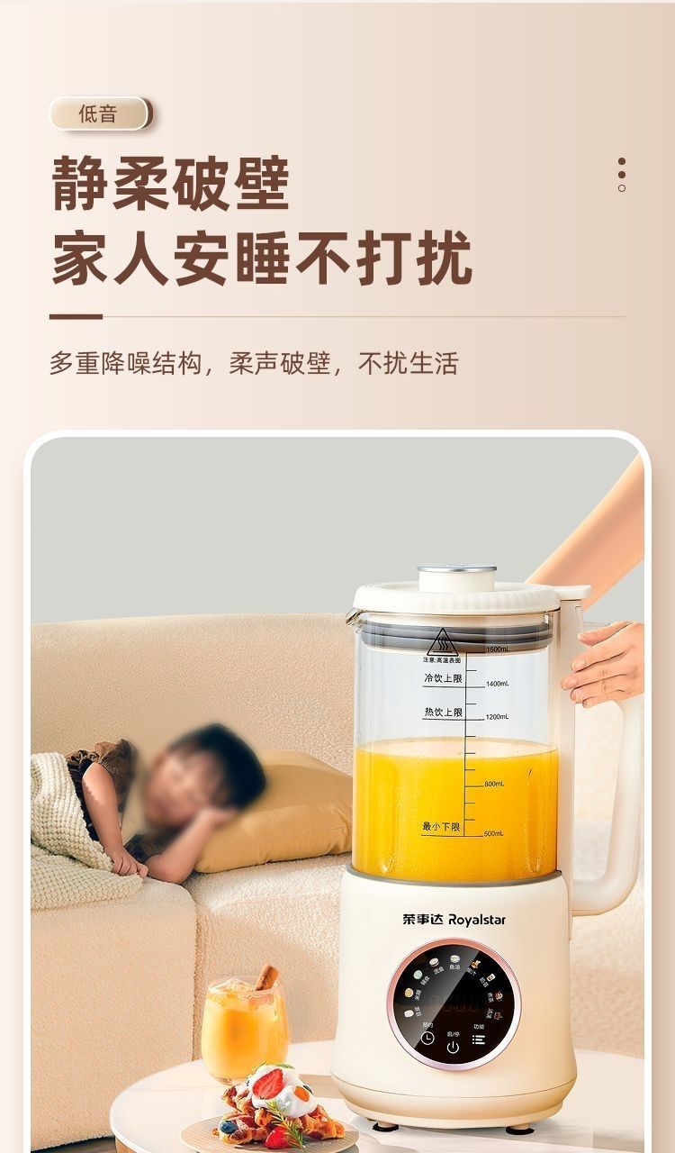 荣事达破壁豆浆机家用全自动清洗静音米糊机辅食果汁陶瓷釉防糊底