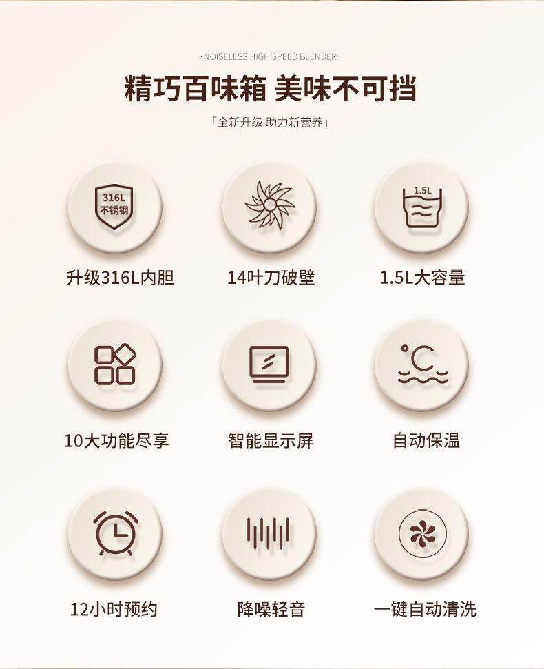 豆浆机智能多功能料理机家用316不锈钢全自动免过滤辅食破壁