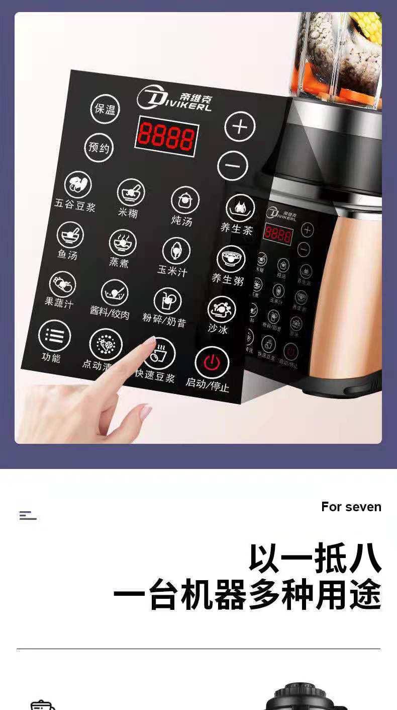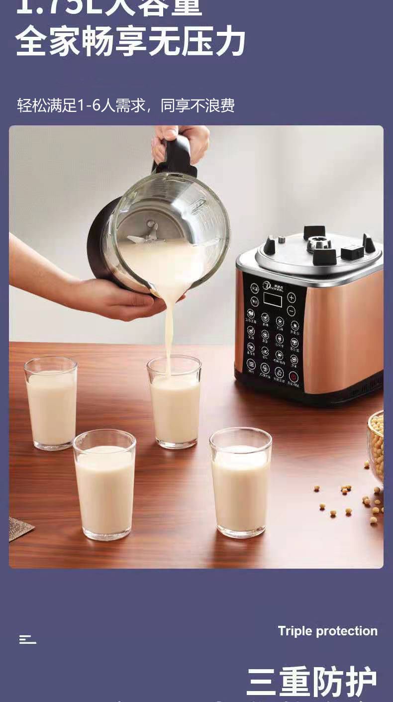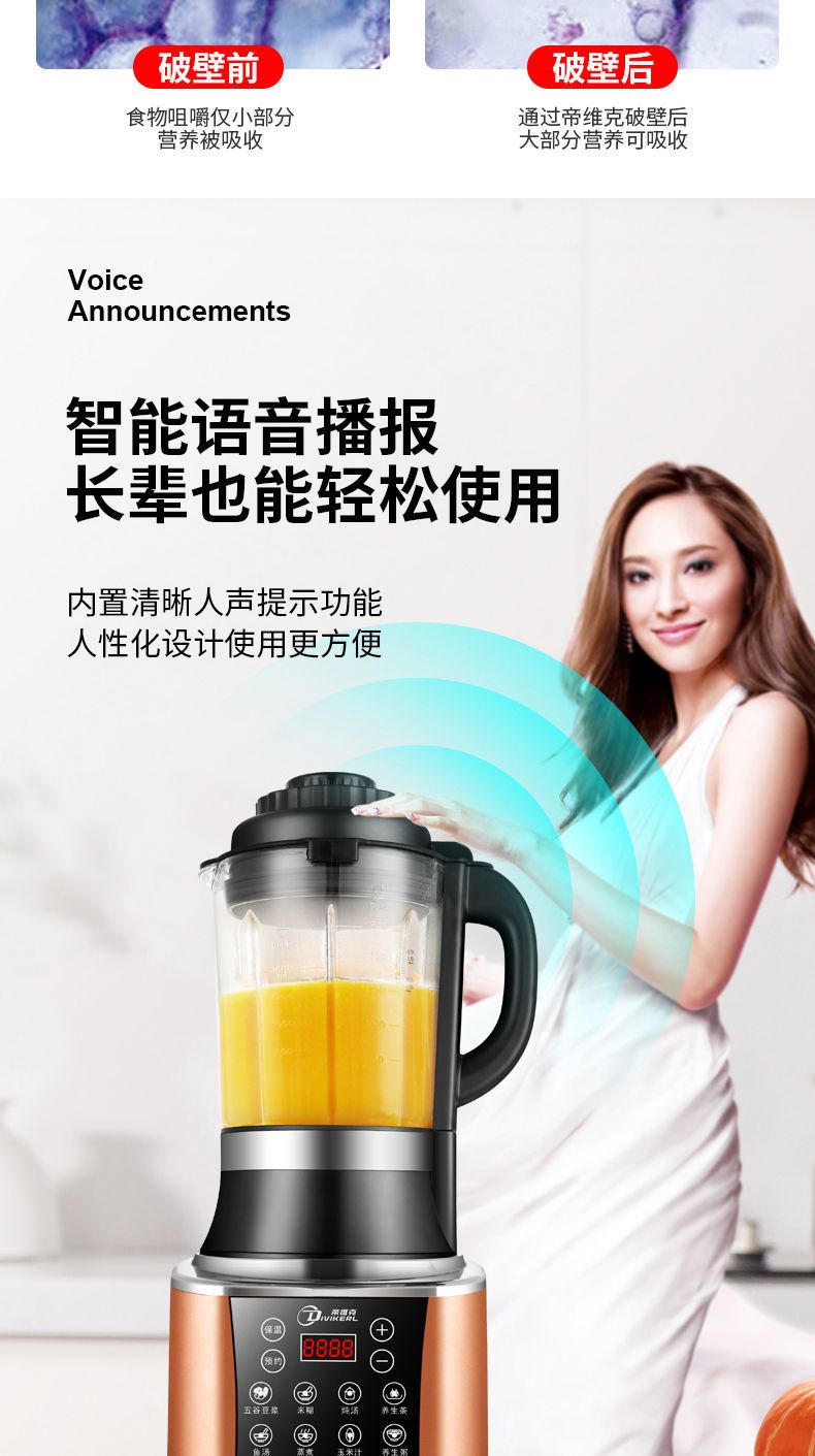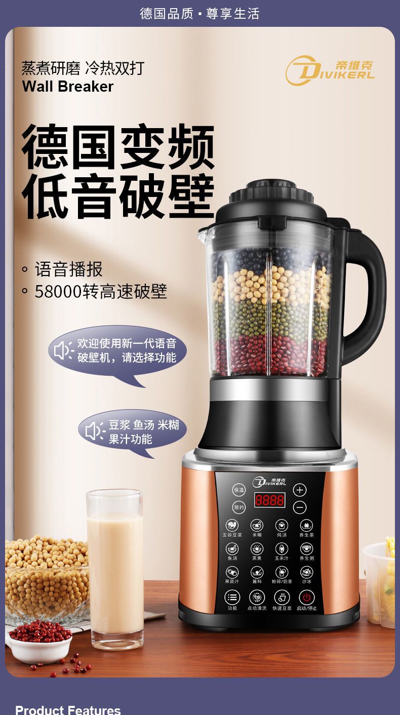 德国新款破壁机家用加热全自动静音无渣免滤豆浆多功能料理养生机