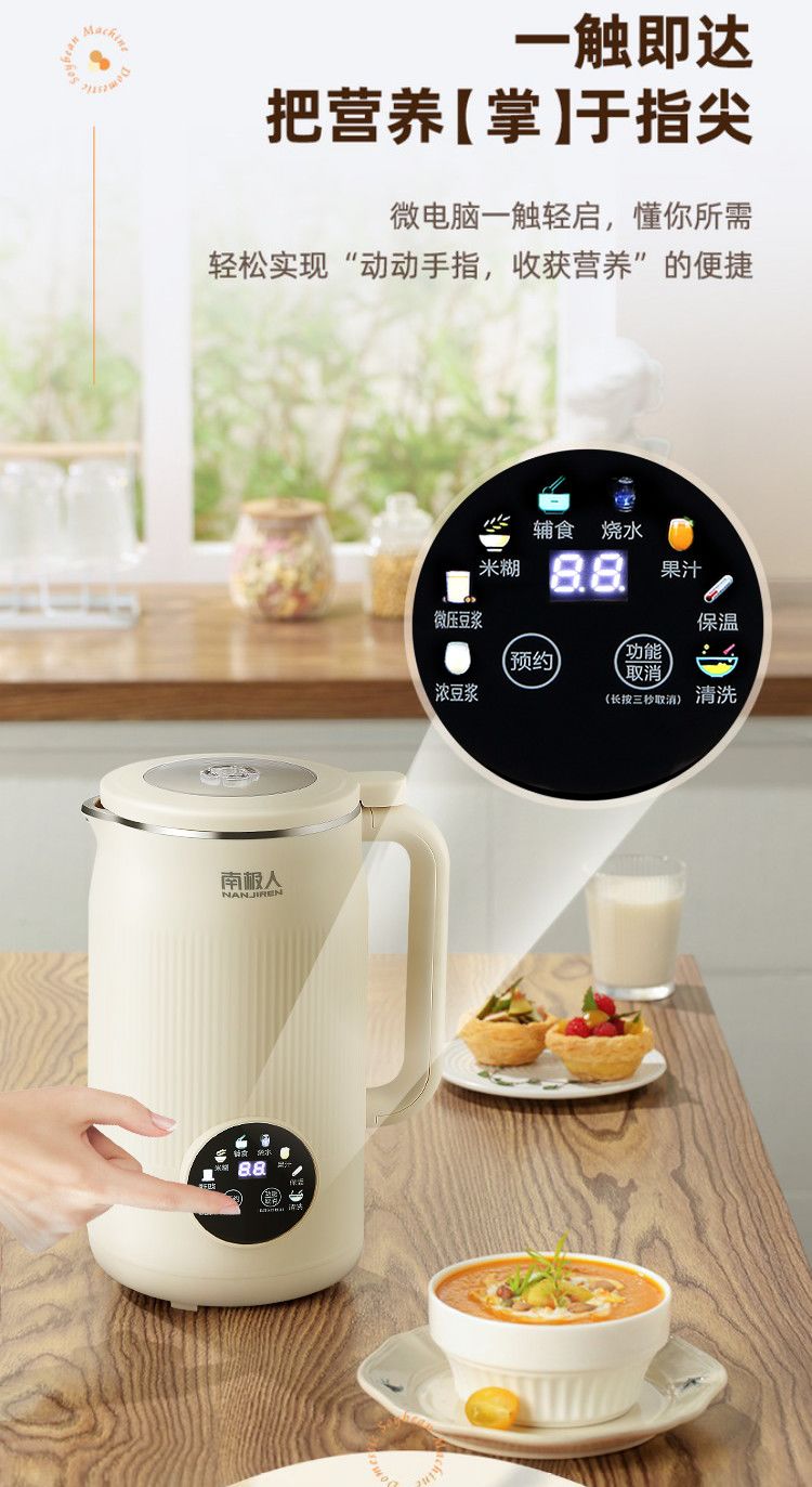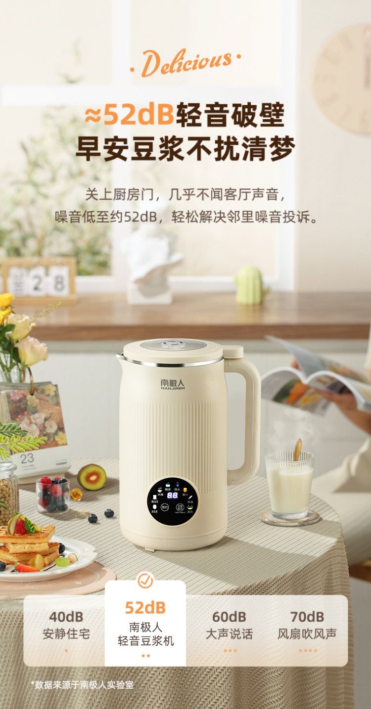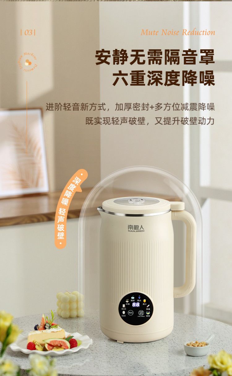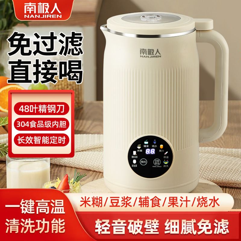 南极人豆浆机家用破壁机无渣免过滤家用加热多功能全自动榨汁料理