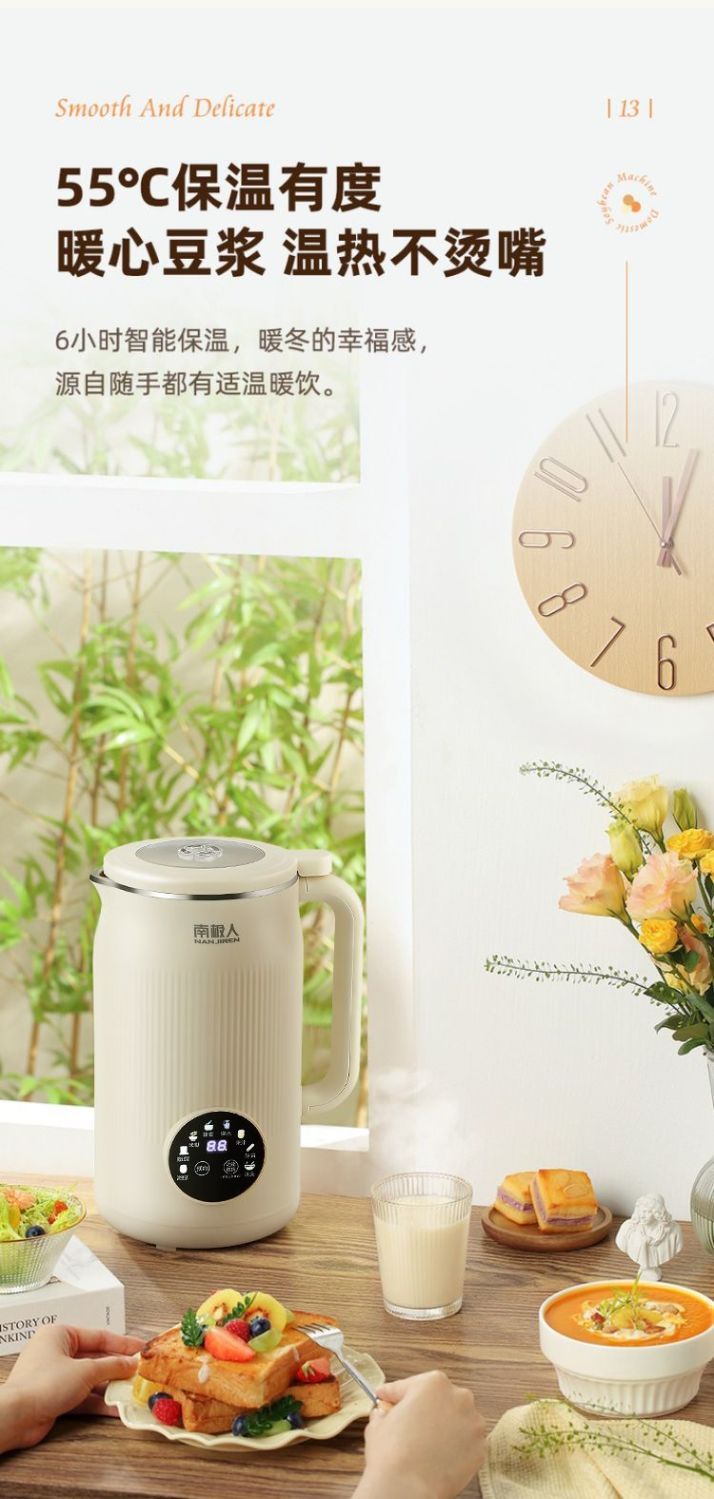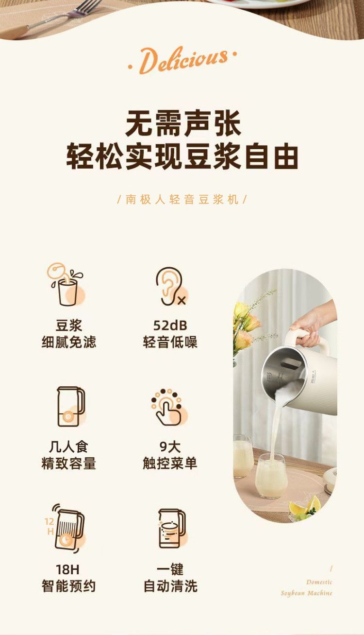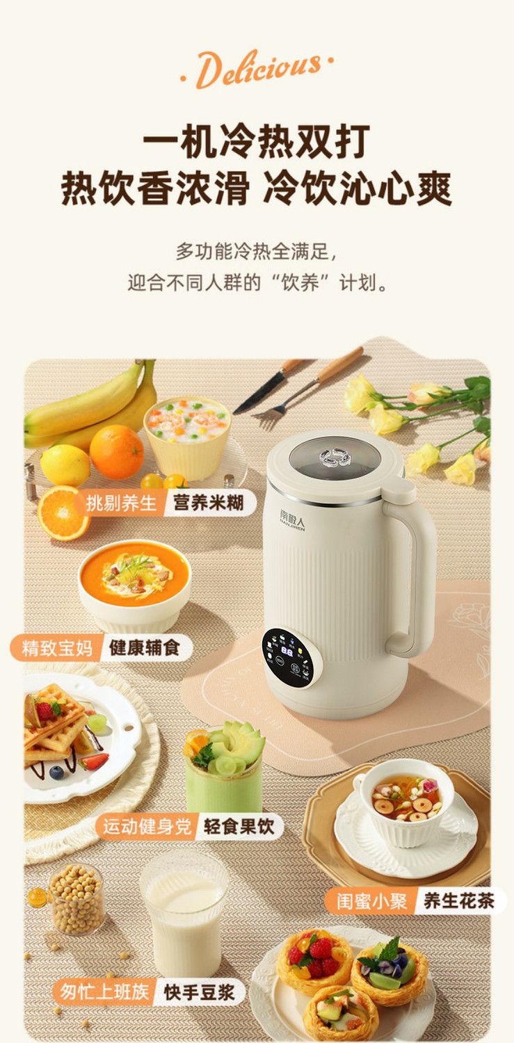南极人豆浆机家用破壁机无渣免过滤家用加热多功能全自动榨汁料理