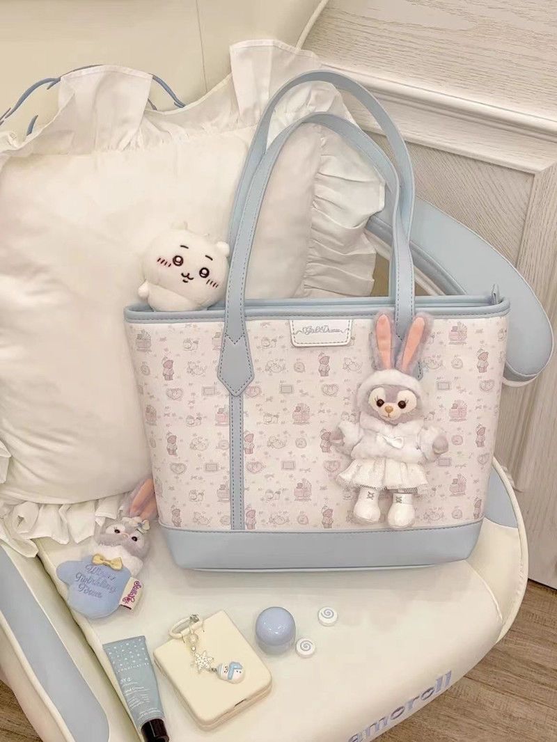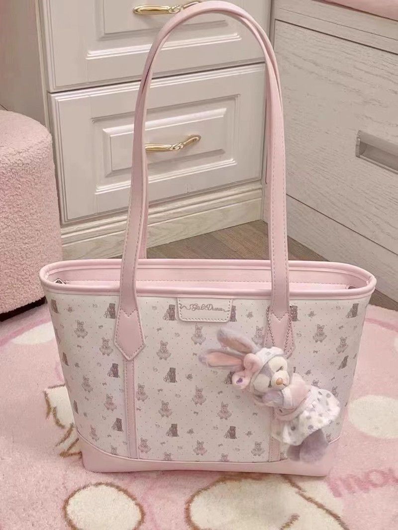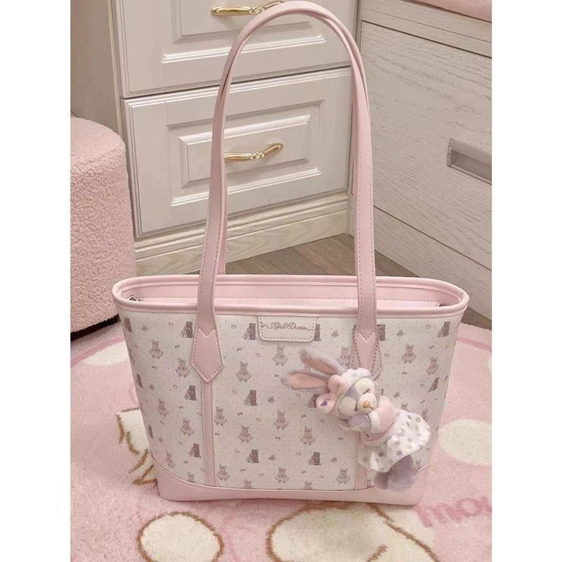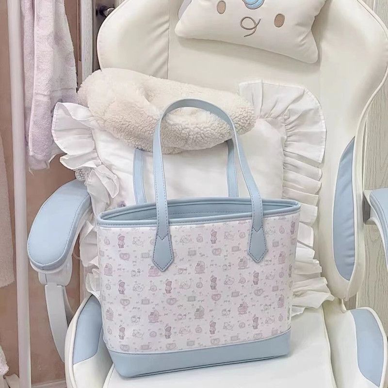 小众设计少女兔熊托特包可爱大容量手提包通勤学生印花卡通单肩包
