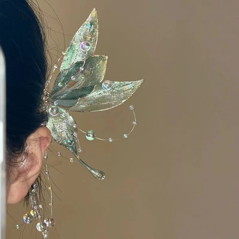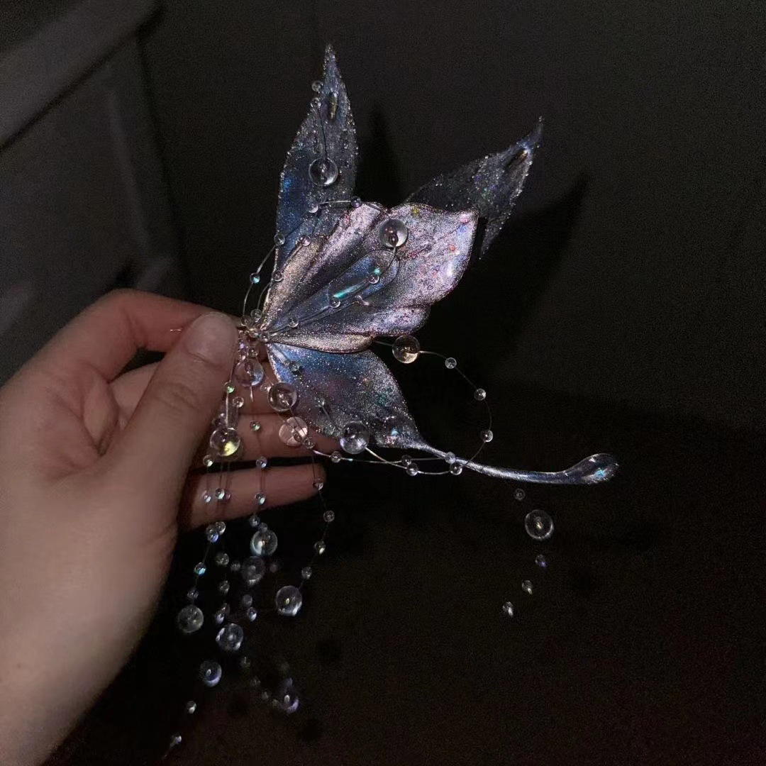 小红书网红同款复古港风亮彩蝴蝶发簪时尚轻奢高级感U形发钗甜美