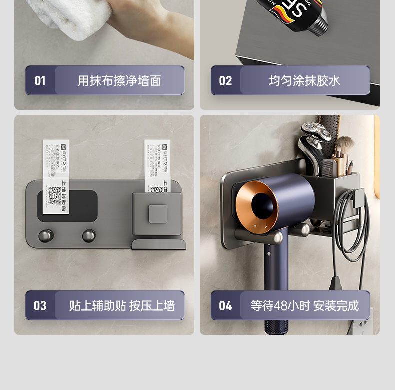 戴森吹风机架子免打孔浴室置物架支架厕所电吹风放置架壁风筒挂架