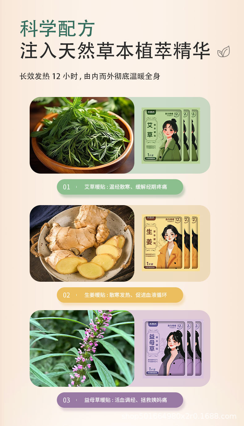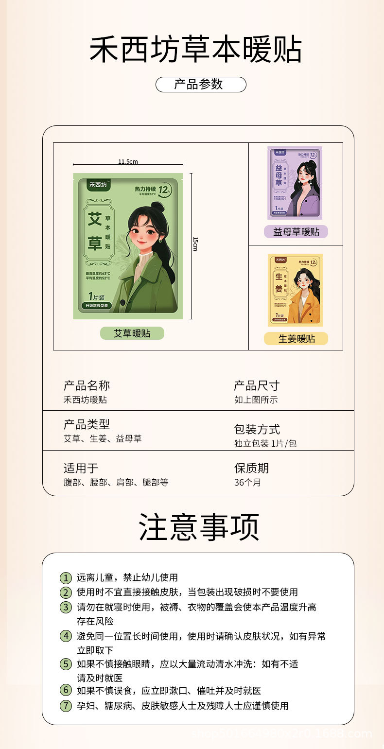 暖宝宝厂家艾草生姜益母草暖贴代加工自发热贴肚子经期姨妈禾西坊