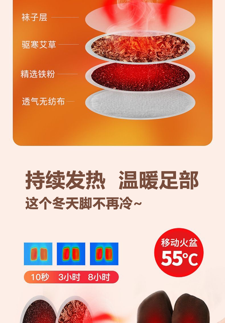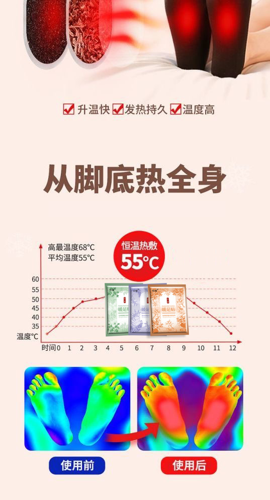 发热足贴保暖脚垫热敷暖宝宝贴暖贴暖足贴自发热贴艾草益母草暖贴