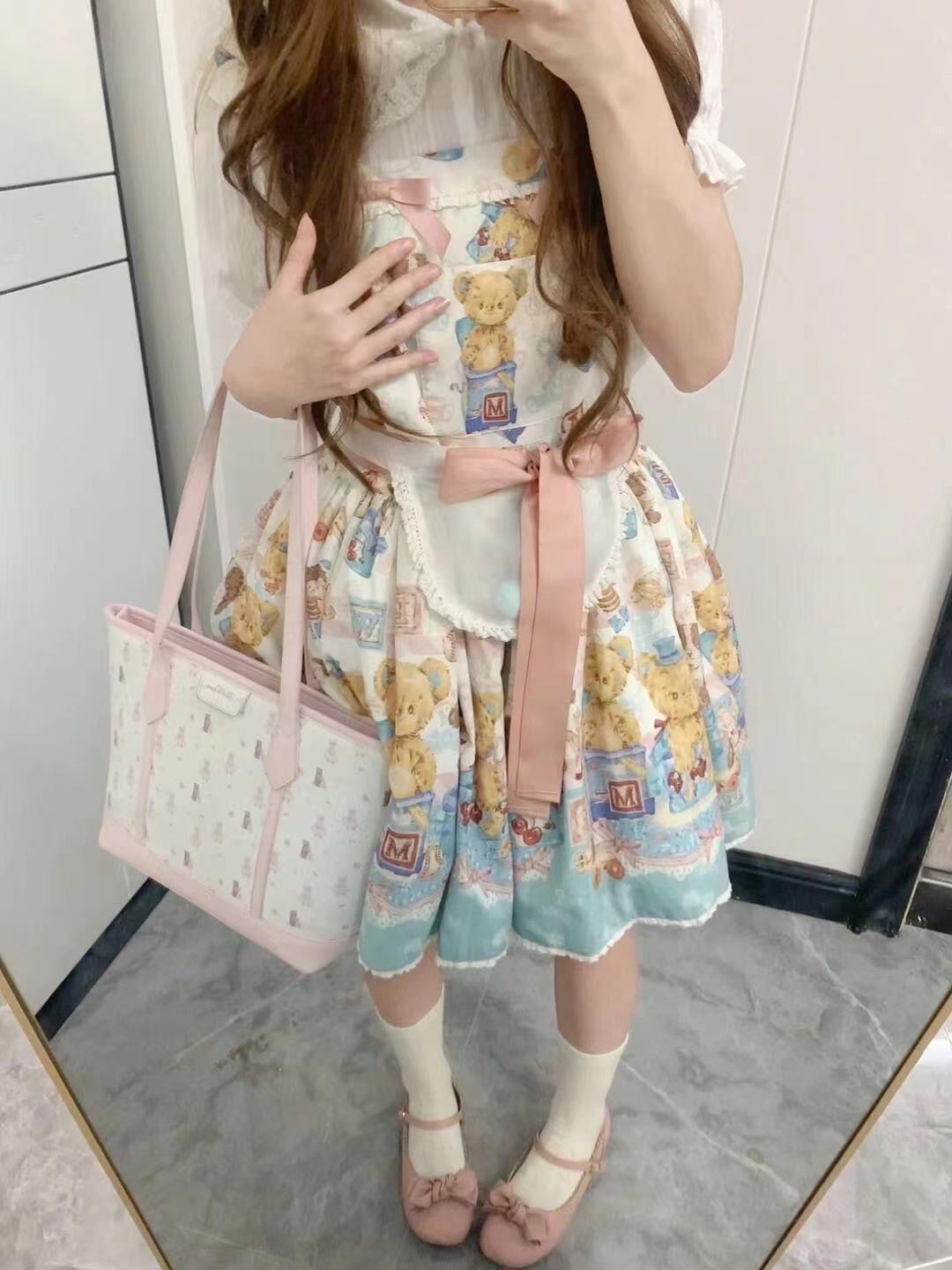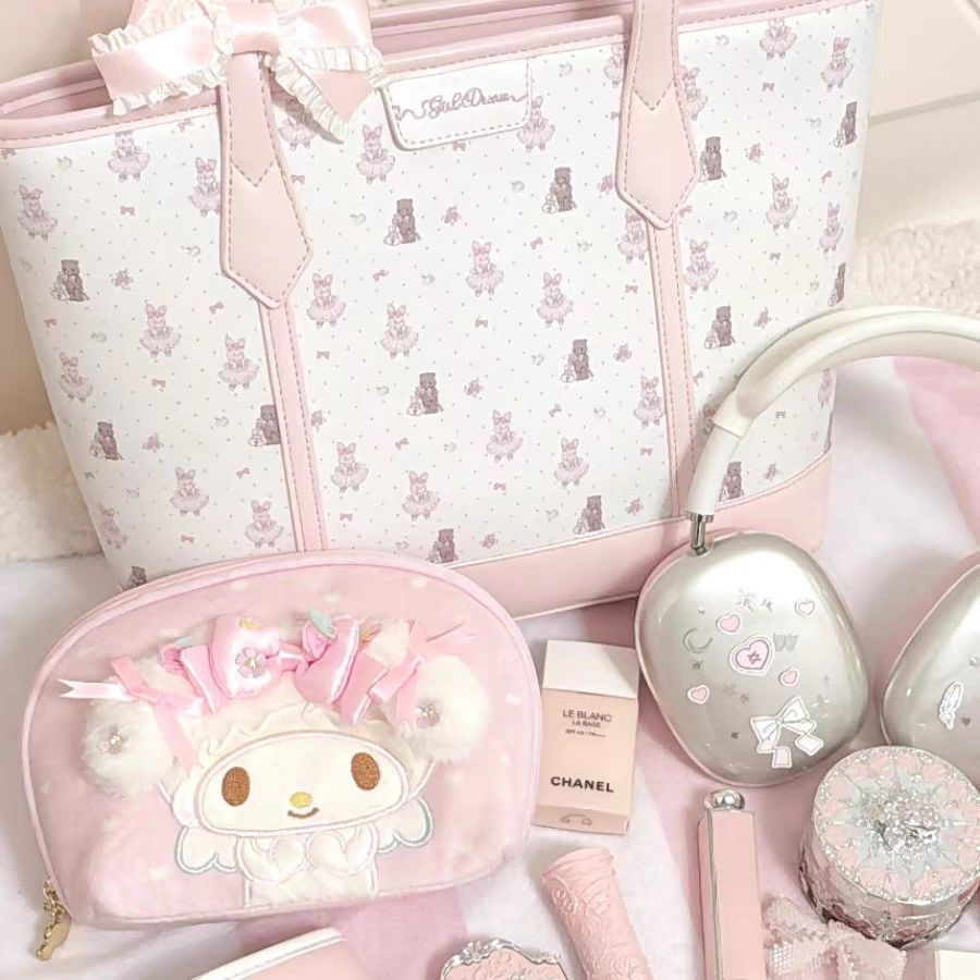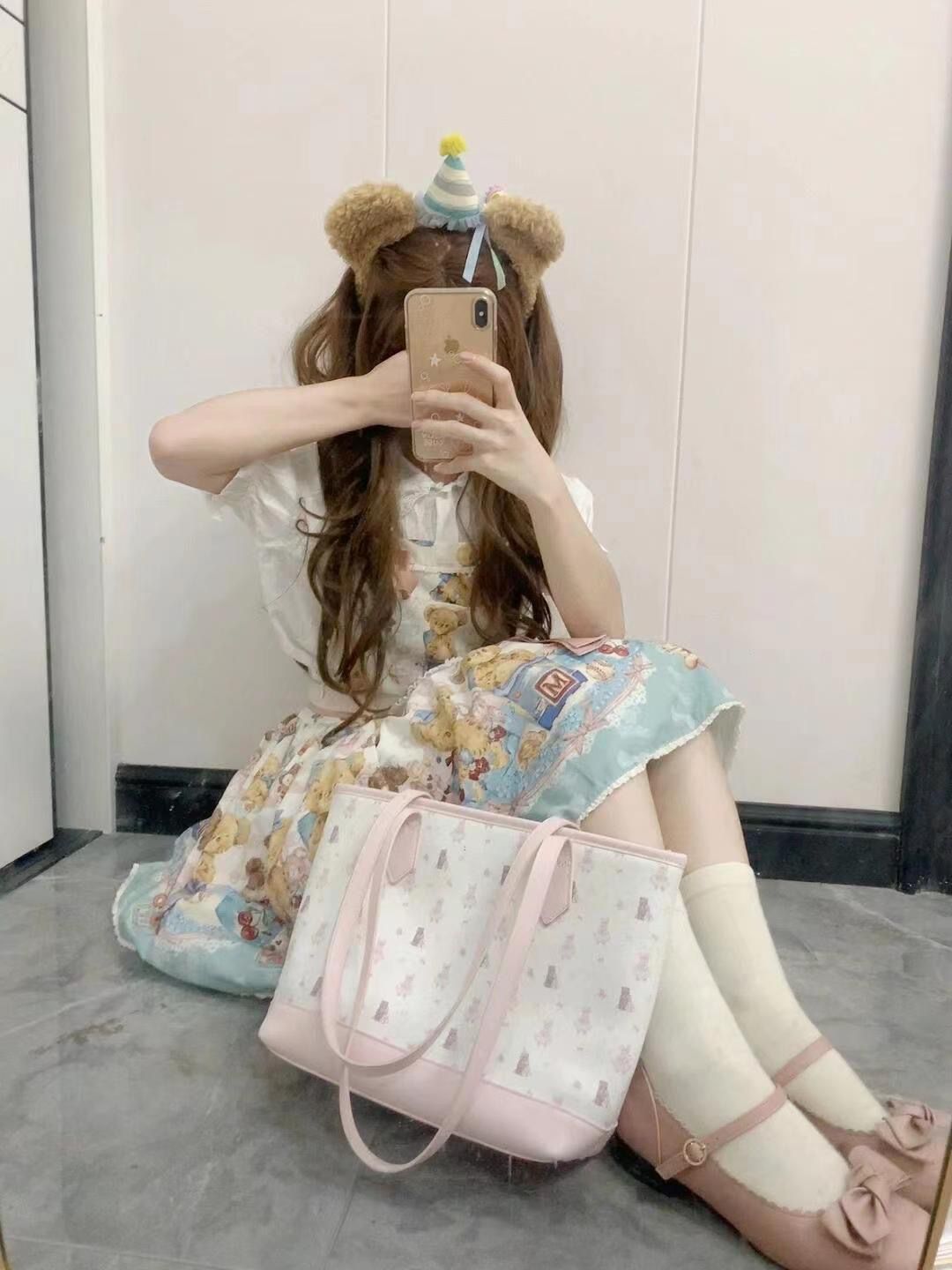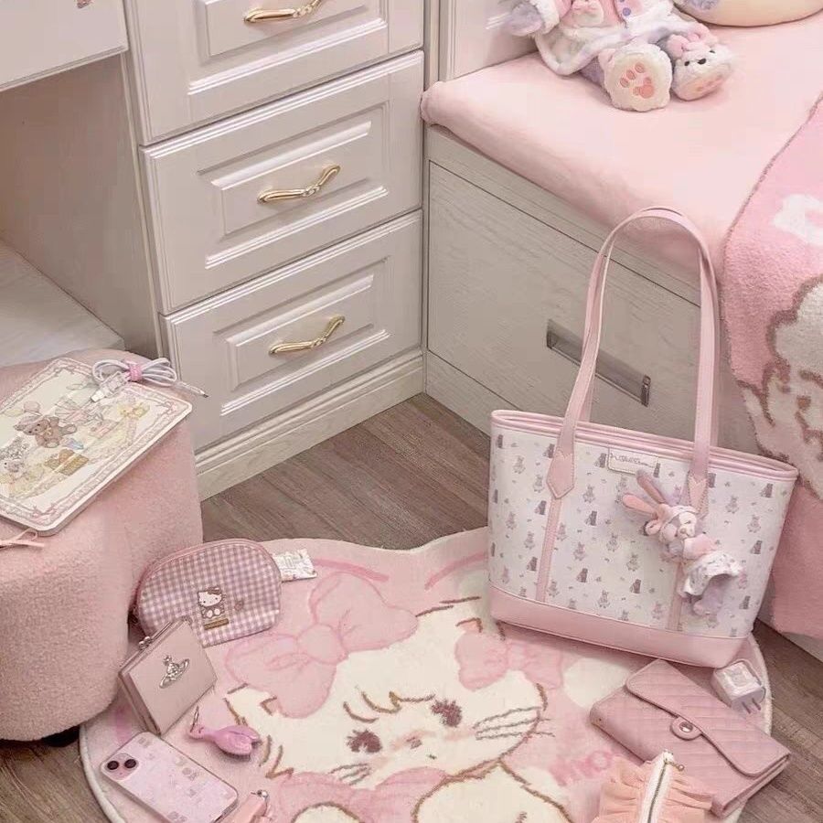 小众设计少女兔熊托特包可爱大容量印花卡通手提包学生通勤单肩包