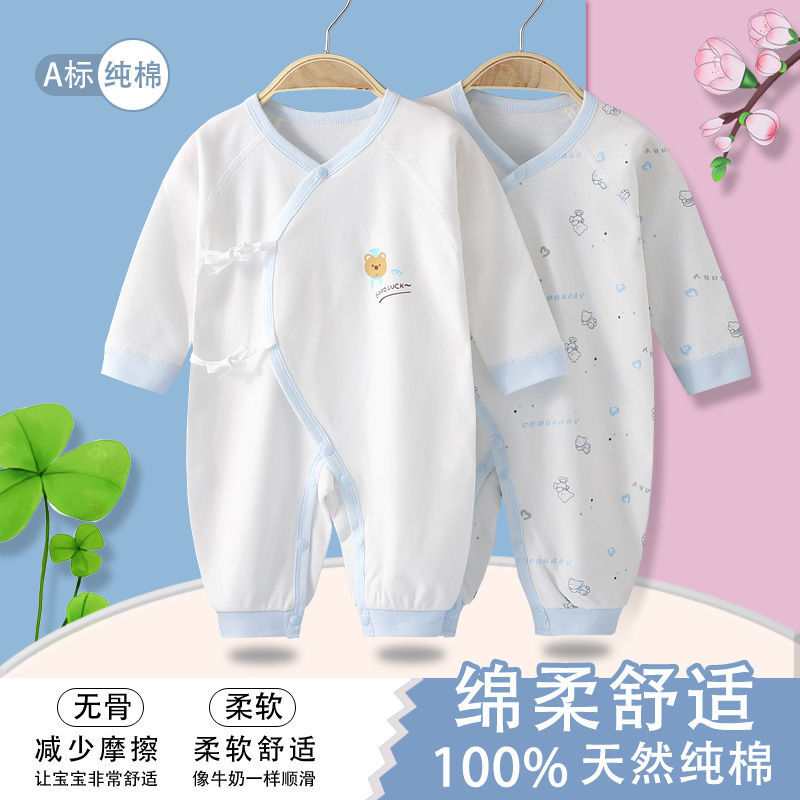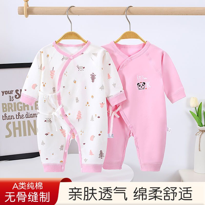婴儿连体衣纯棉空调服哈衣男女宝宝春夏季薄款长袖爬服新生儿睡衣
