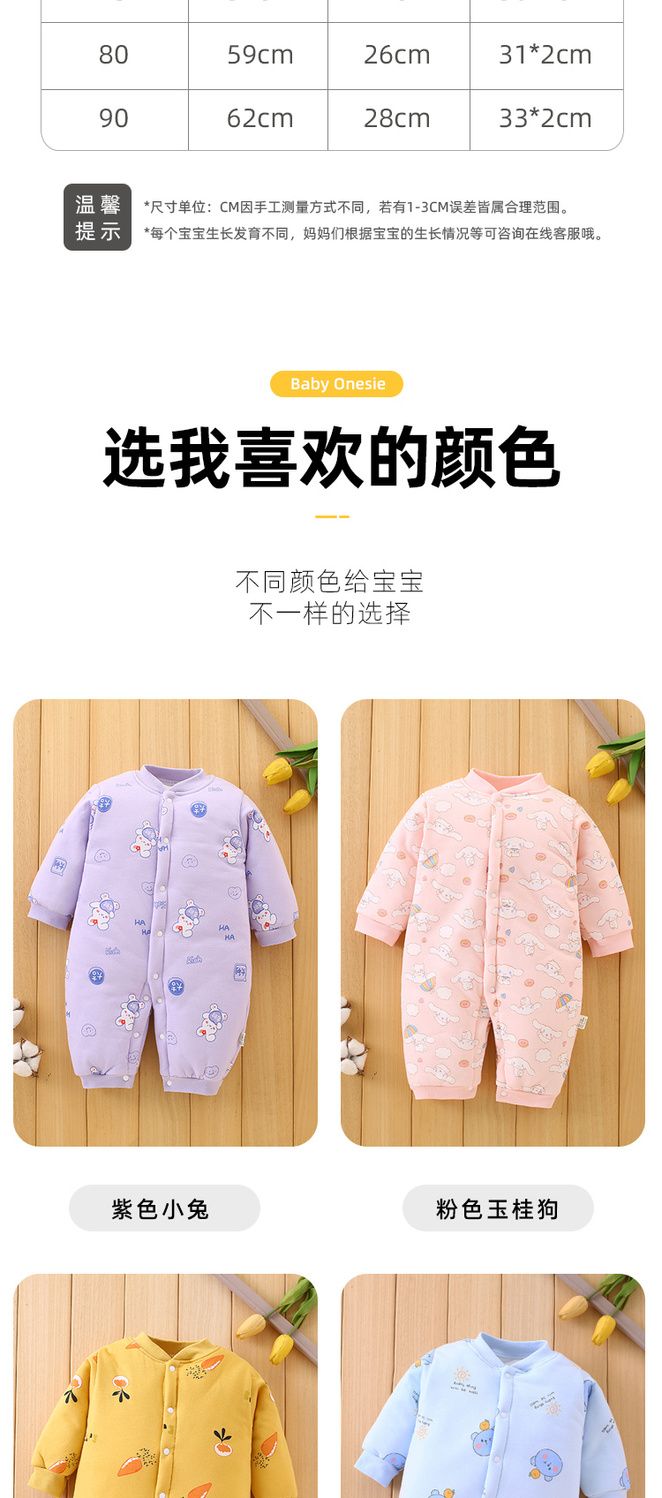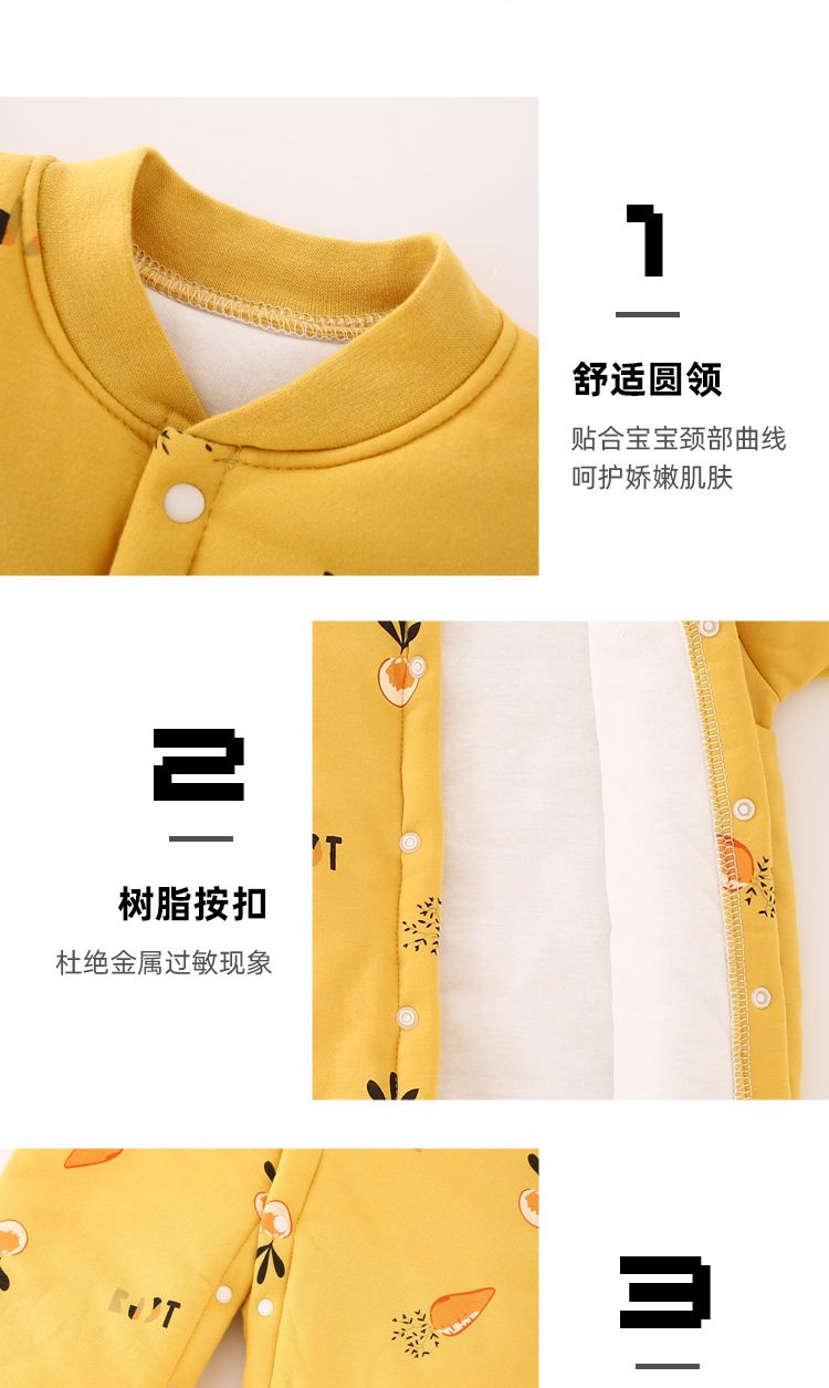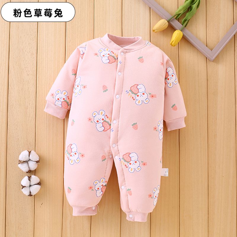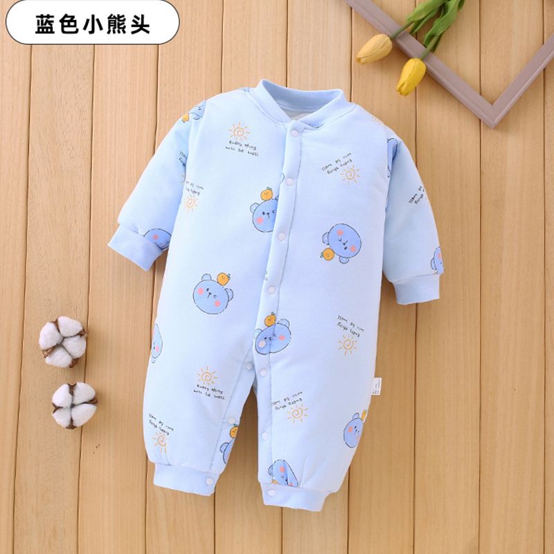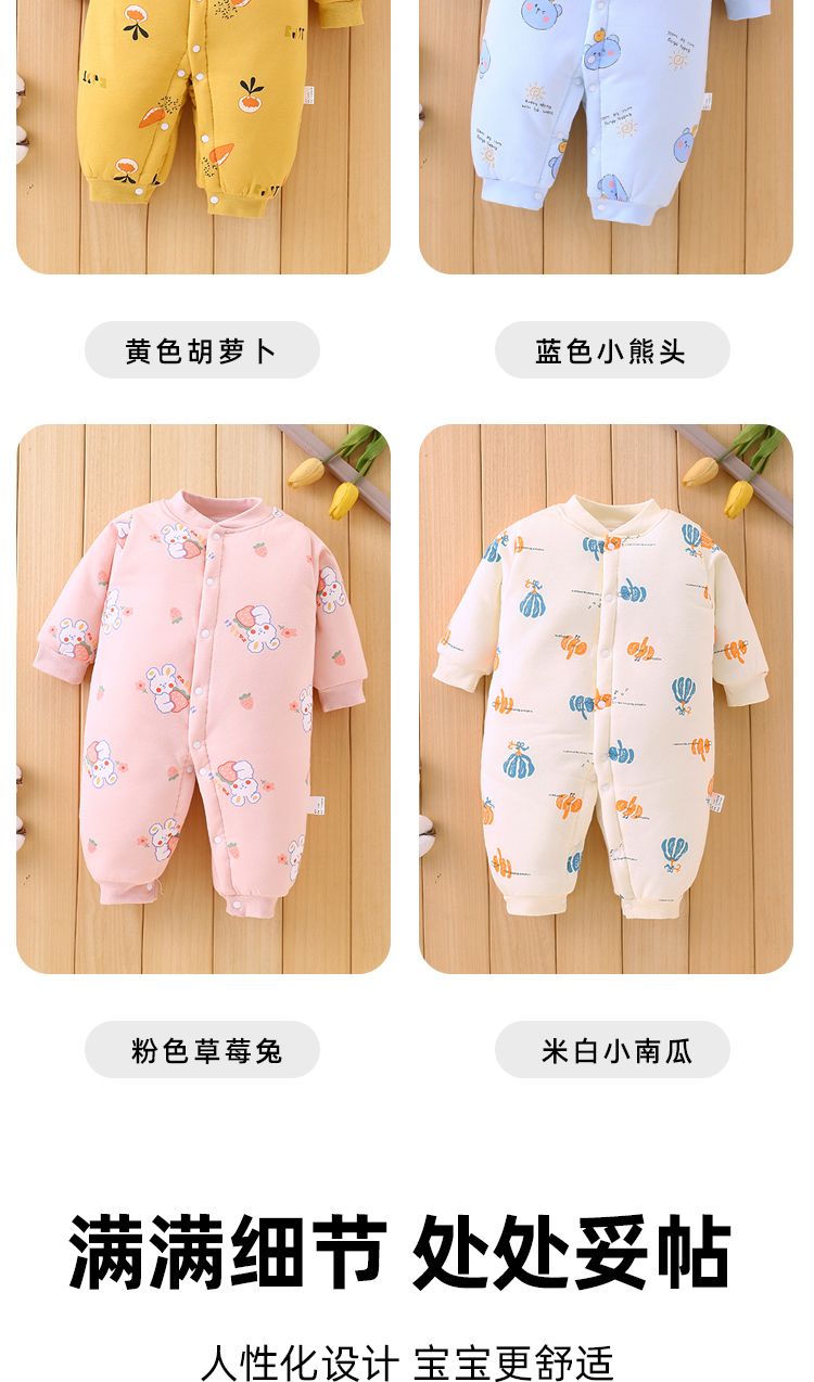 新生婴儿连体衣秋冬季夹棉纯棉衣服套装宝宝保暖婴幼儿冬装外出服