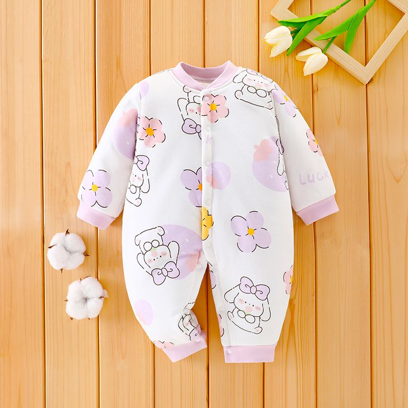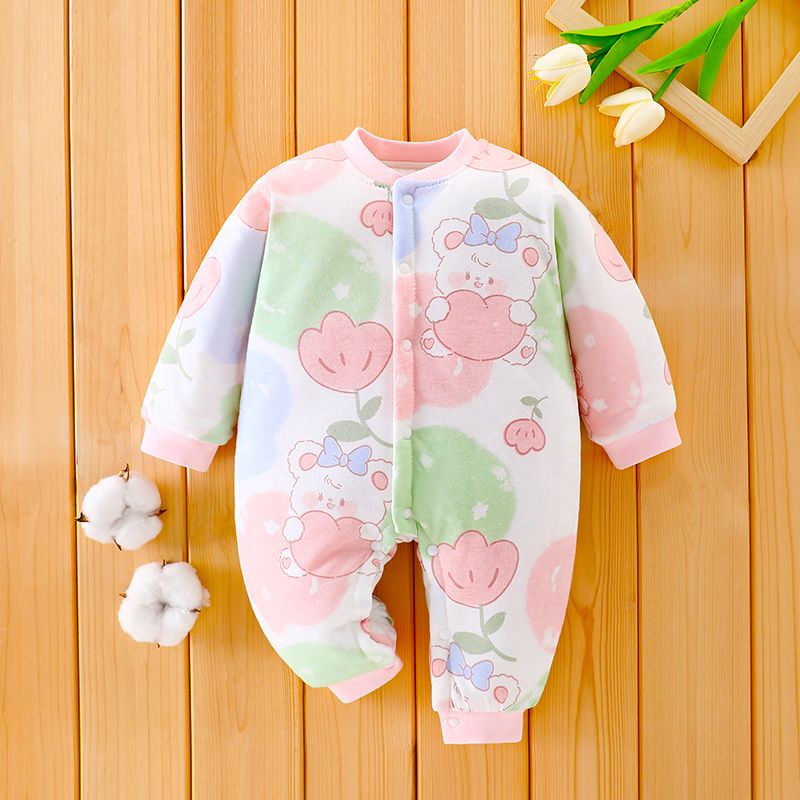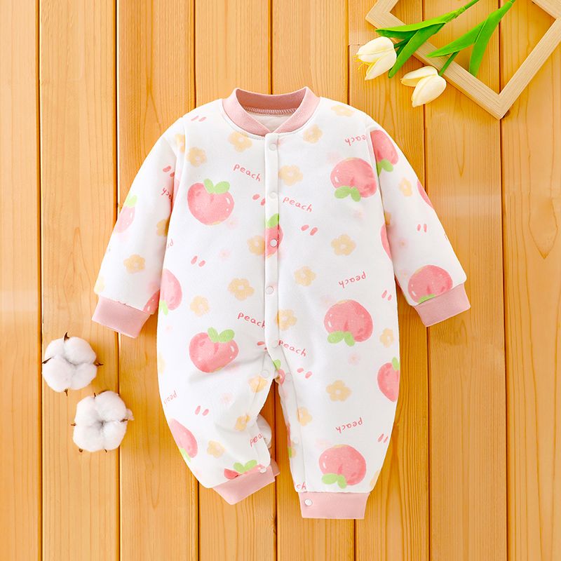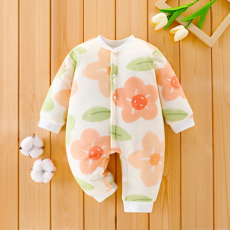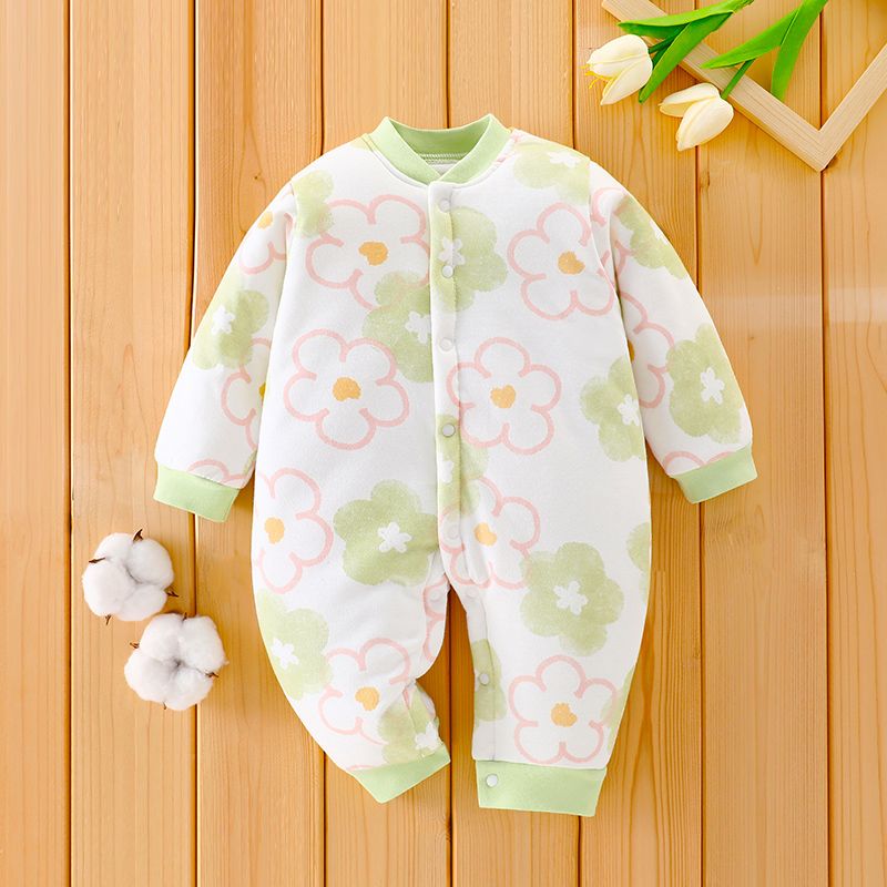 新生婴儿连体衣秋冬季夹棉纯棉衣服套装宝宝保暖婴幼儿冬装外出服