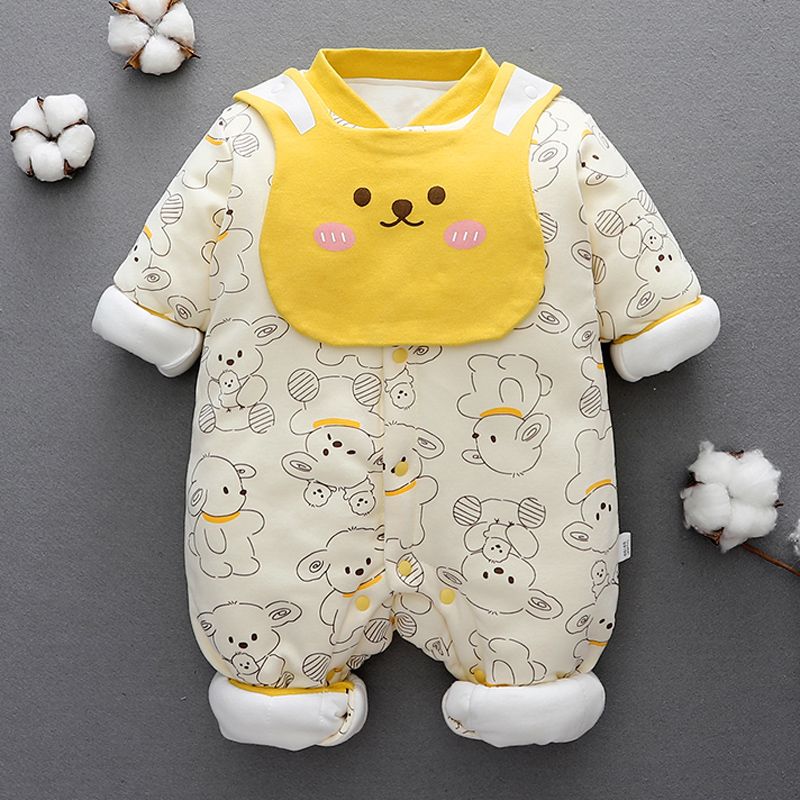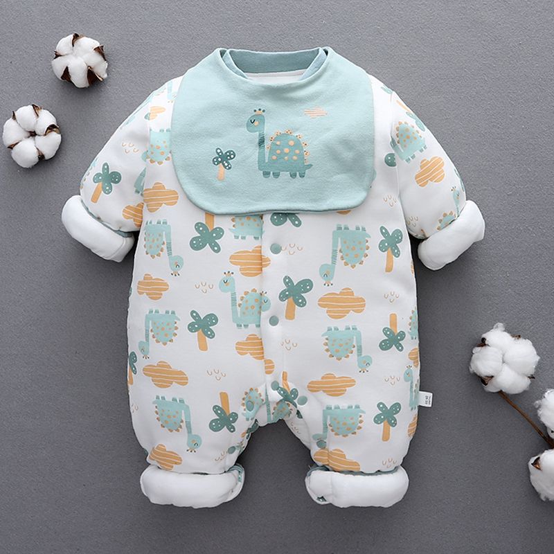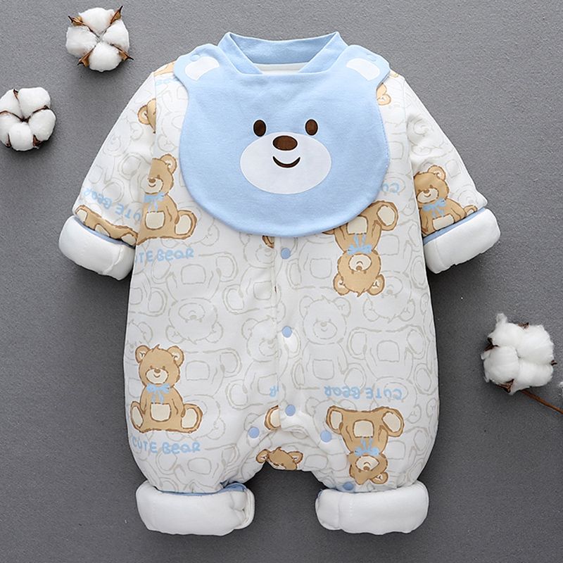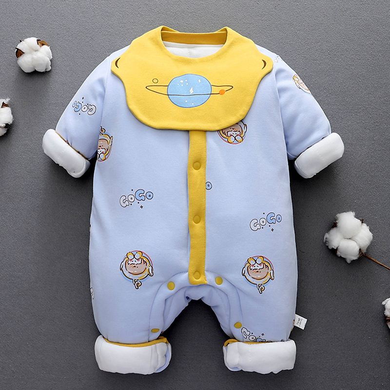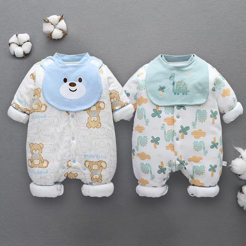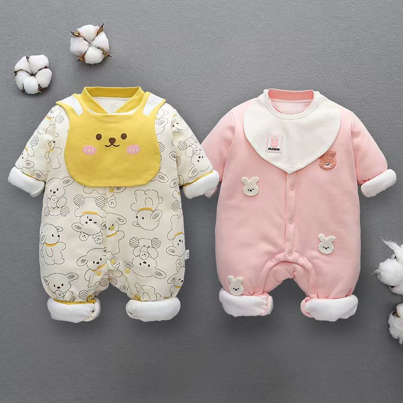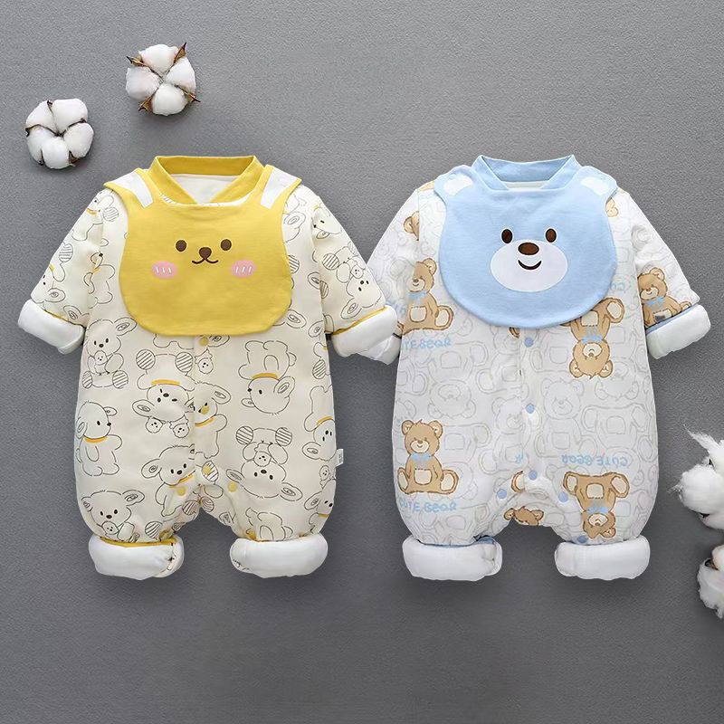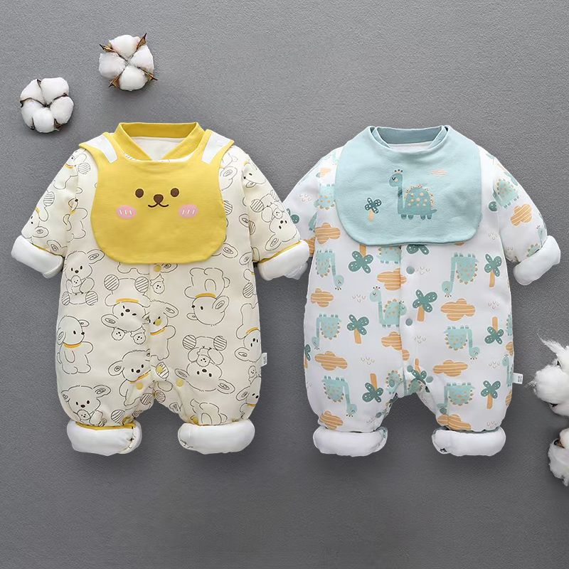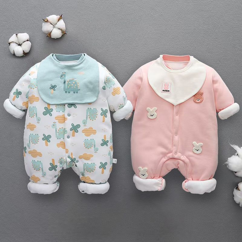 婴儿加厚连体衣秋冬套装新生儿衣服保暖可爱爬服宝宝夹棉冬季外出