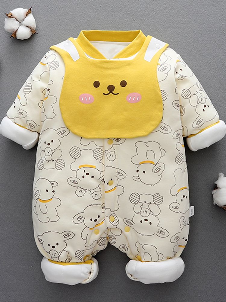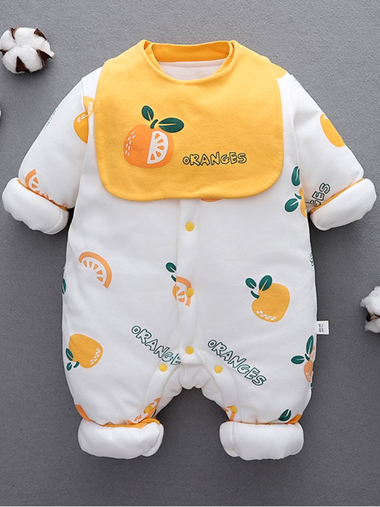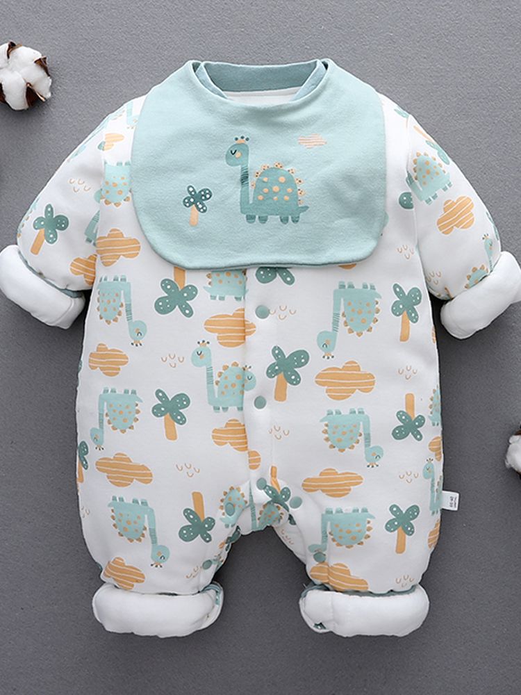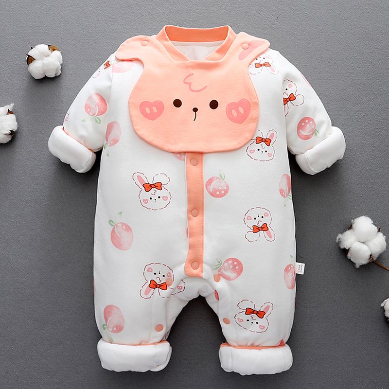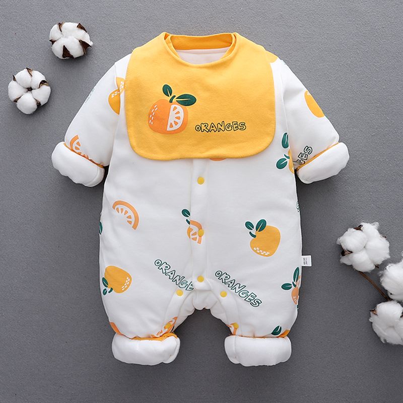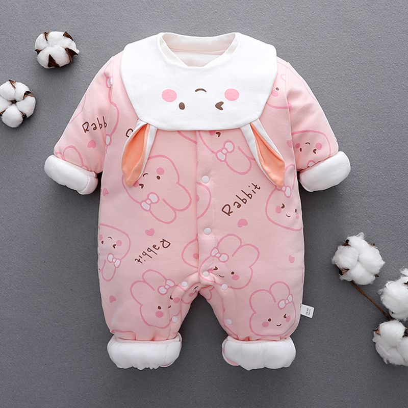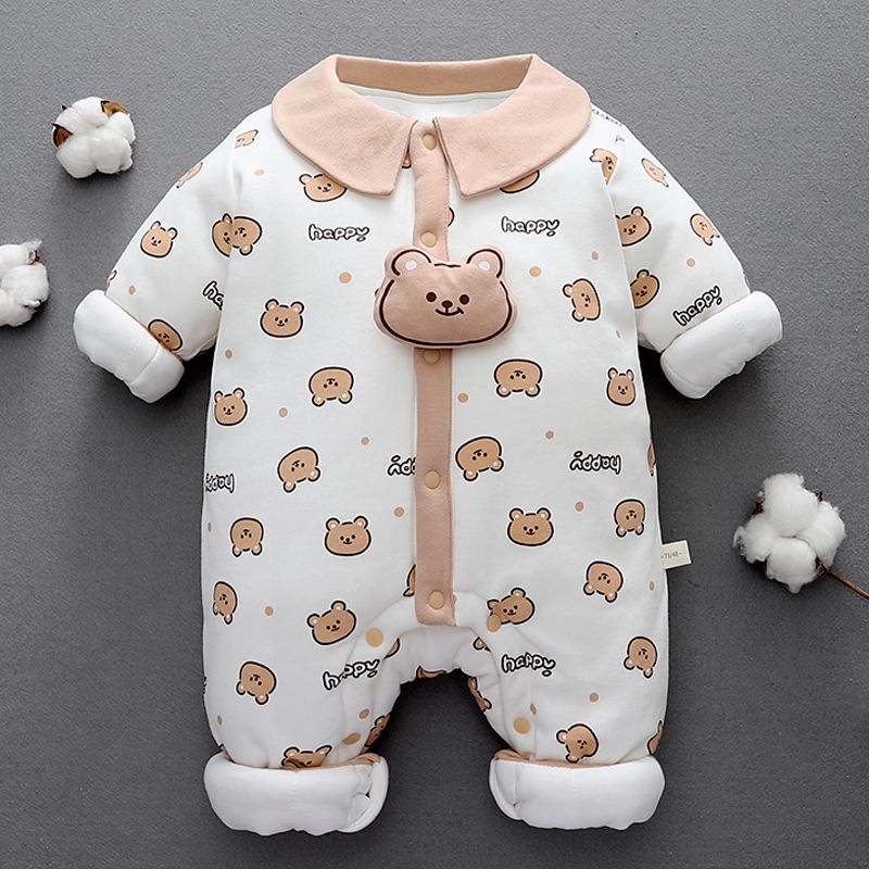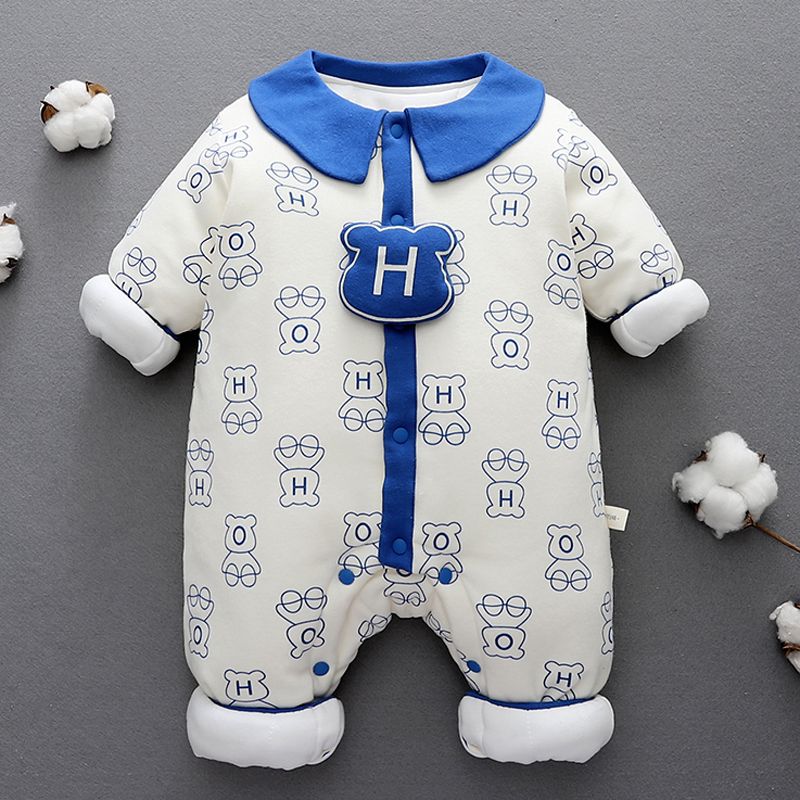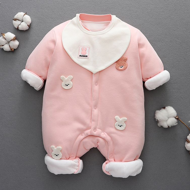 婴儿加厚连体衣秋冬套装新生儿衣服保暖可爱爬服宝宝夹棉冬季外出