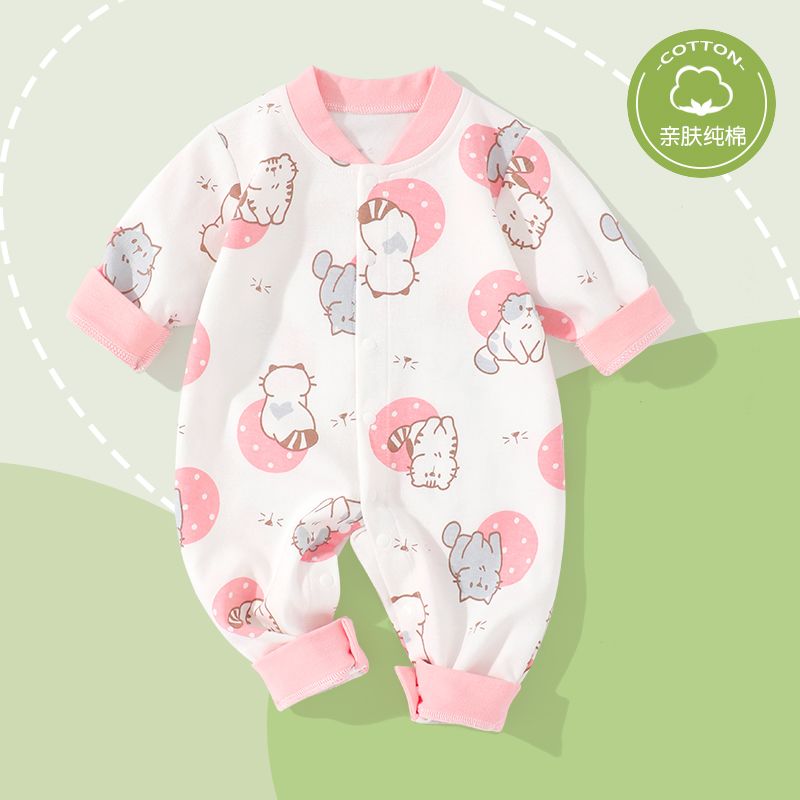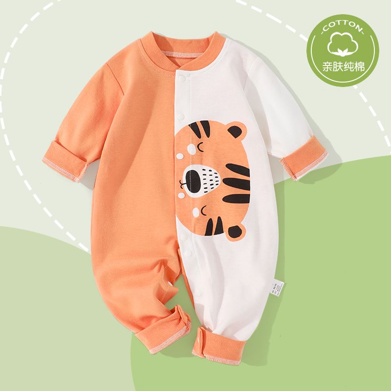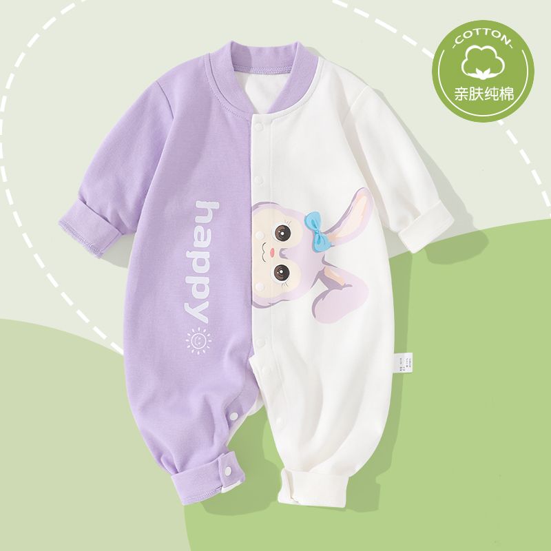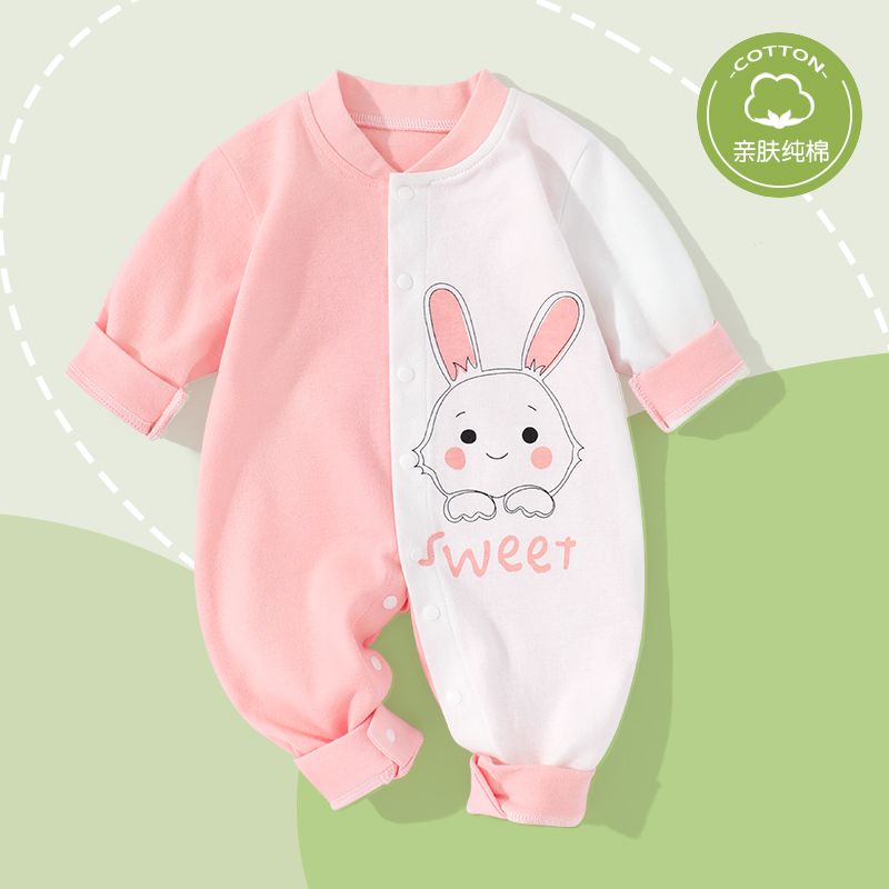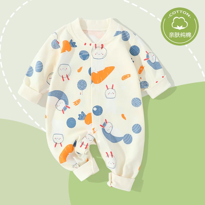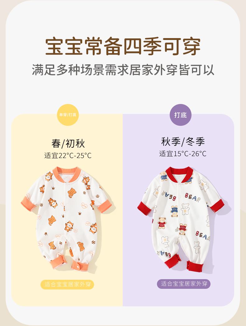 婴儿春秋连体衣长袖纯棉男女宝宝哈衣爬服开档新生儿衣服秋冬外穿
