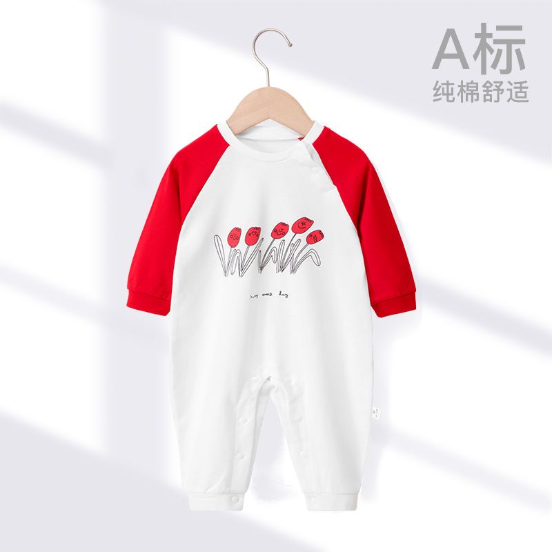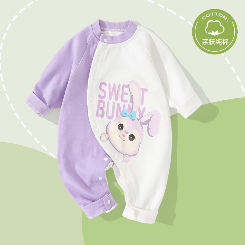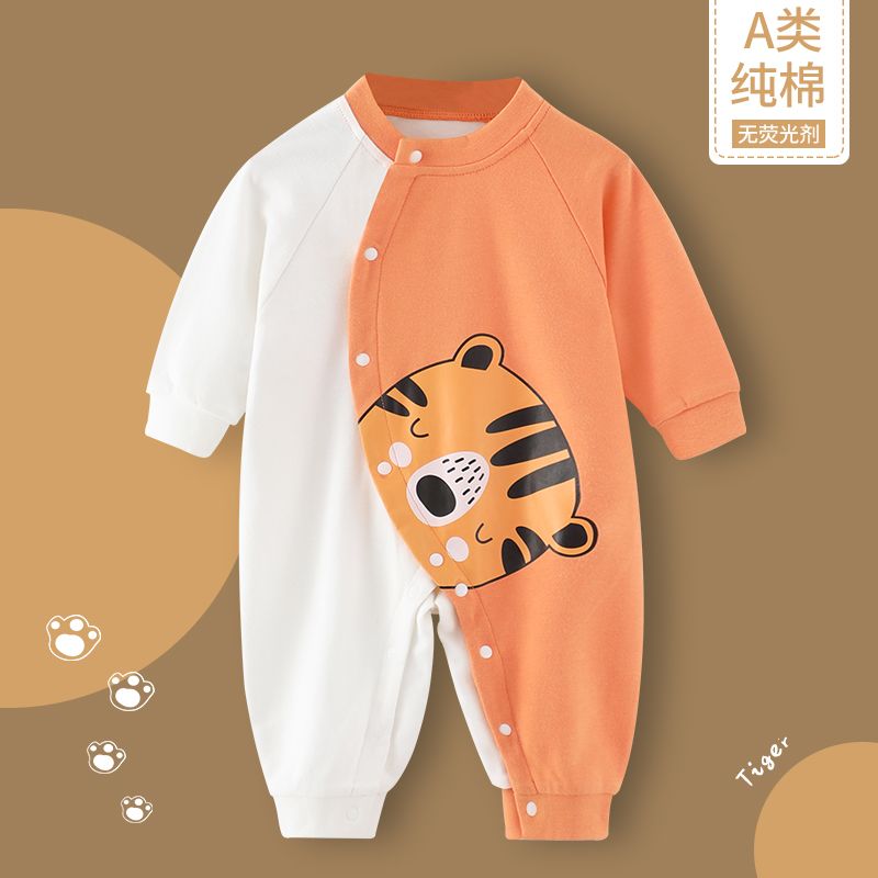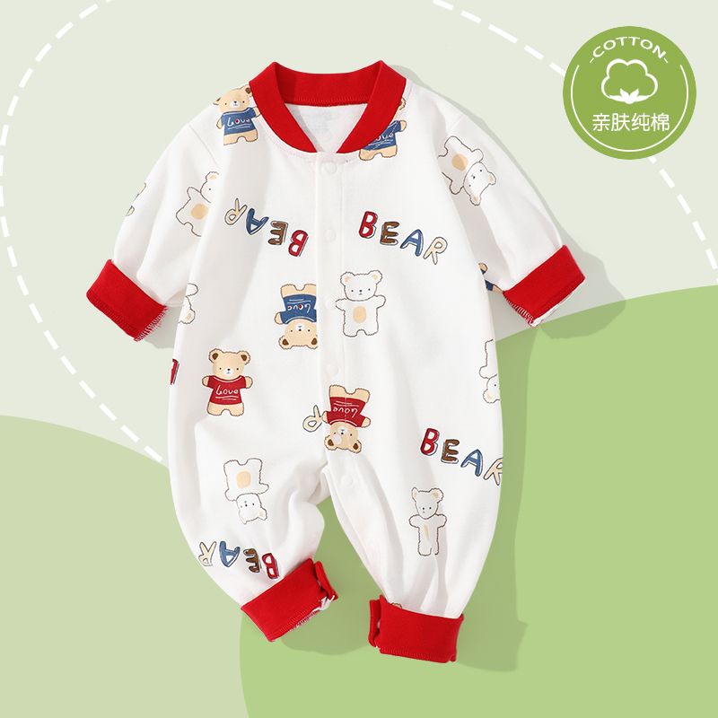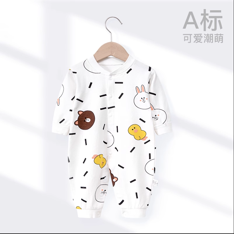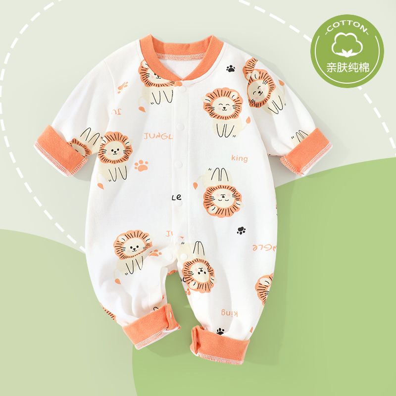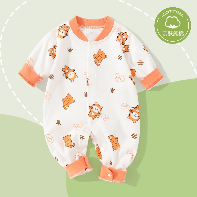 婴儿春秋连体衣长袖纯棉男女宝宝哈衣爬服开档新生儿衣服秋冬外穿