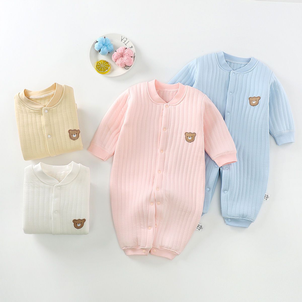 婴儿衣服秋冬套装新生儿连体衣保暖夹棉睡衣0-1岁男宝宝秋装哈衣