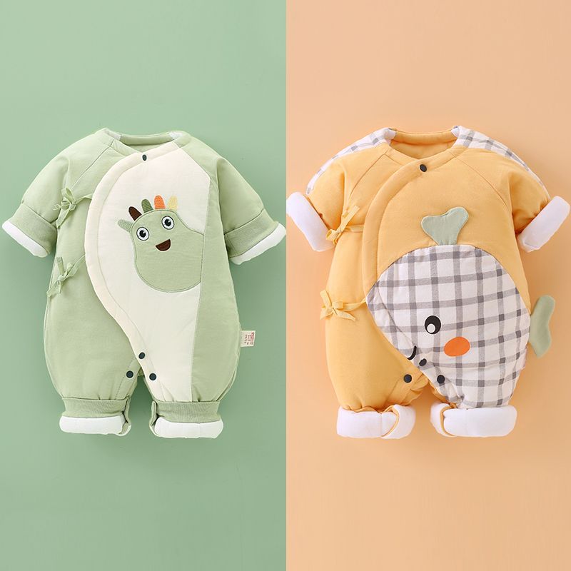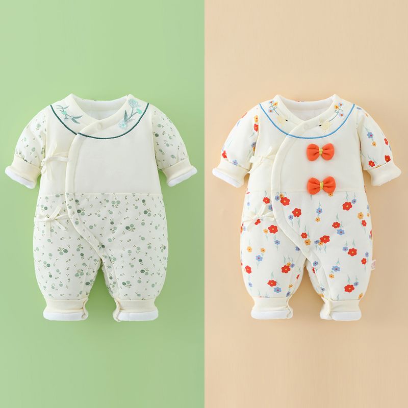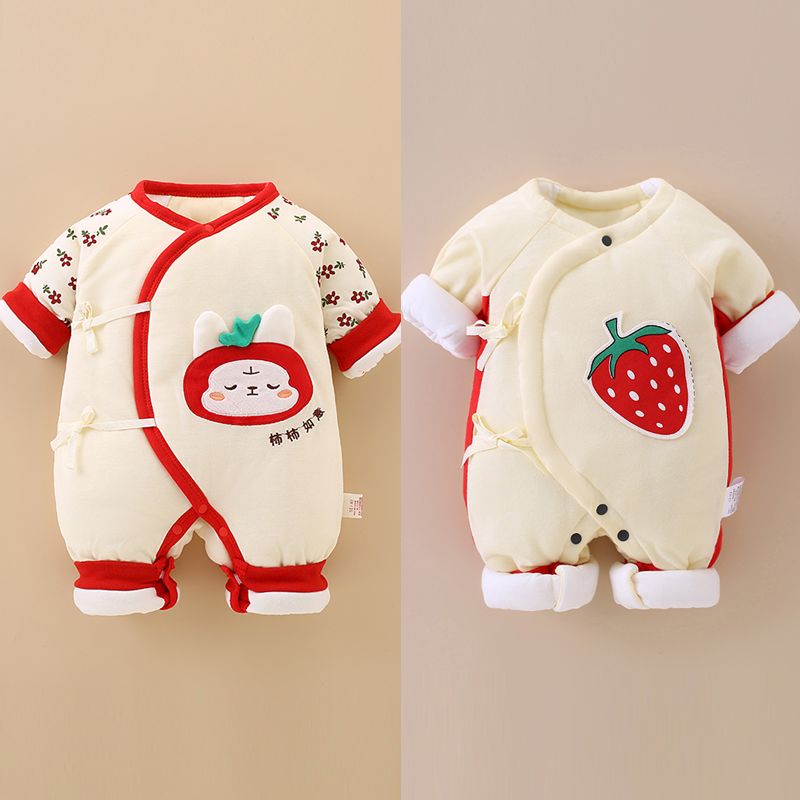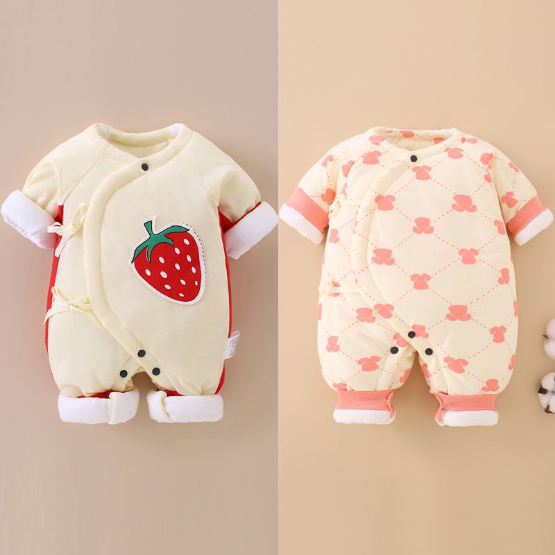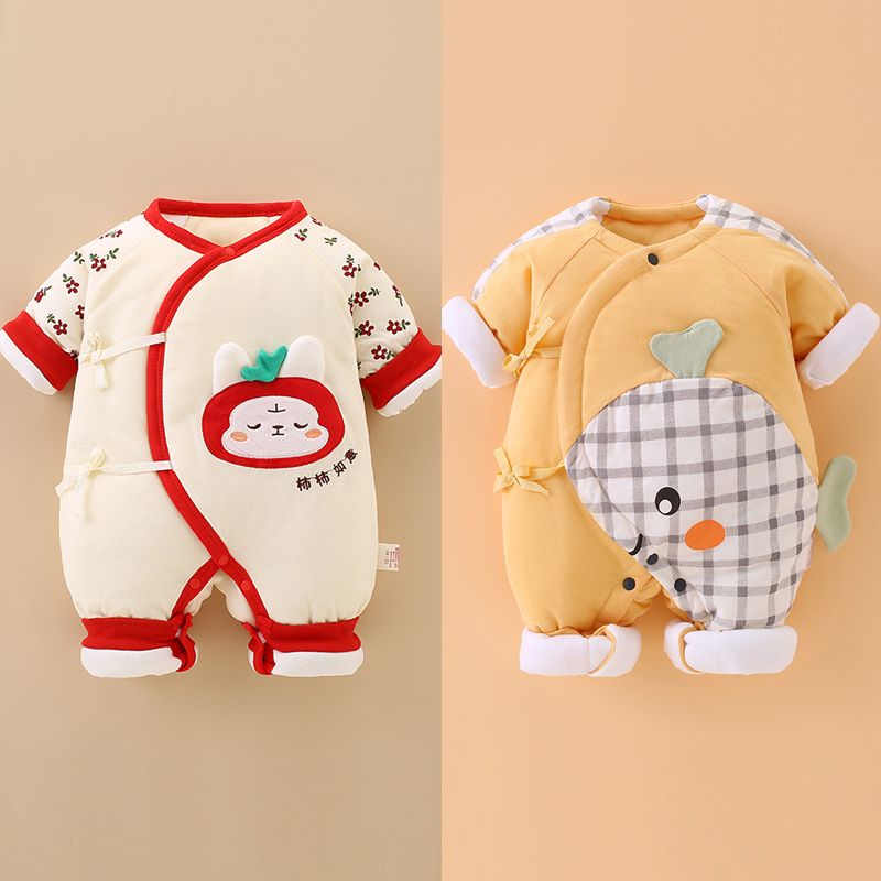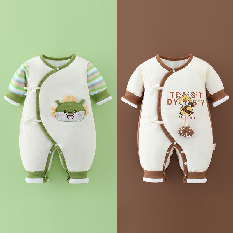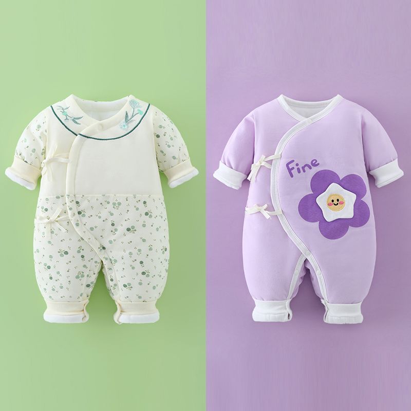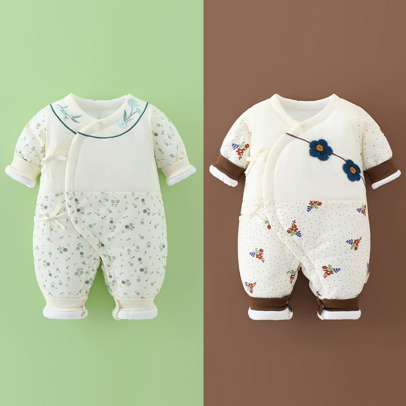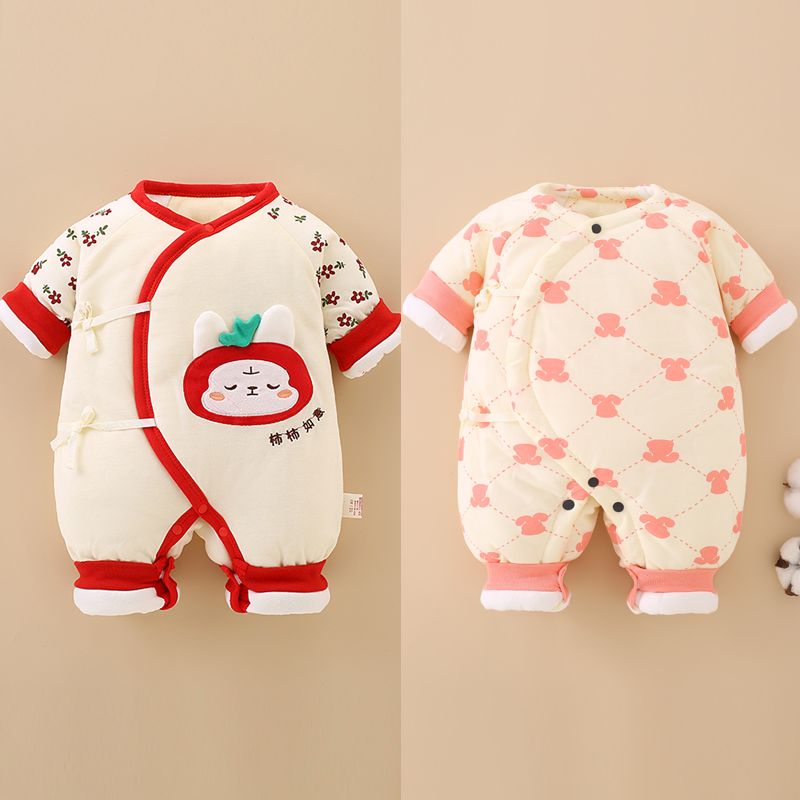 两件装新生儿衣服秋冬连体衣冬天婴儿加厚冬季薄棉刚出生宝宝套装