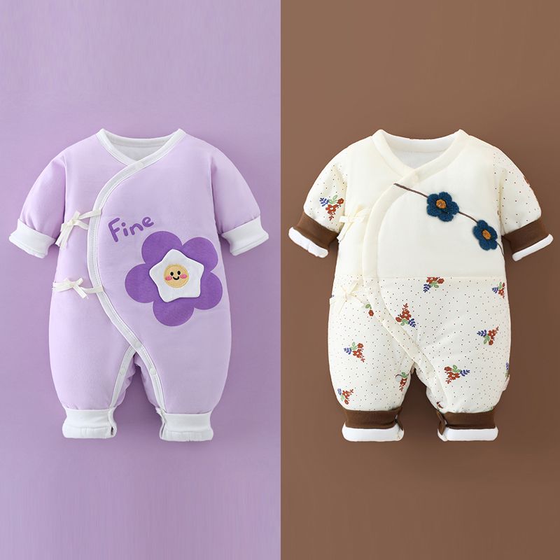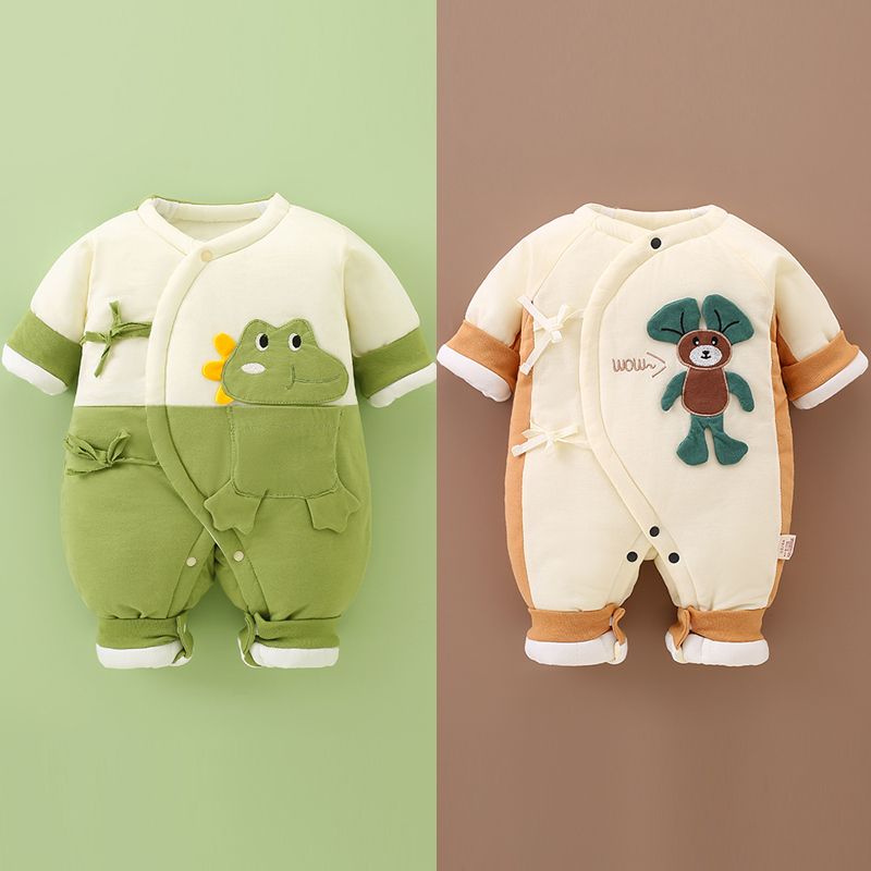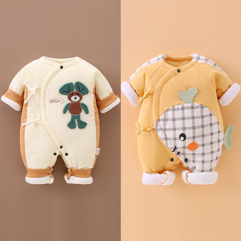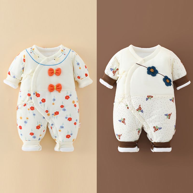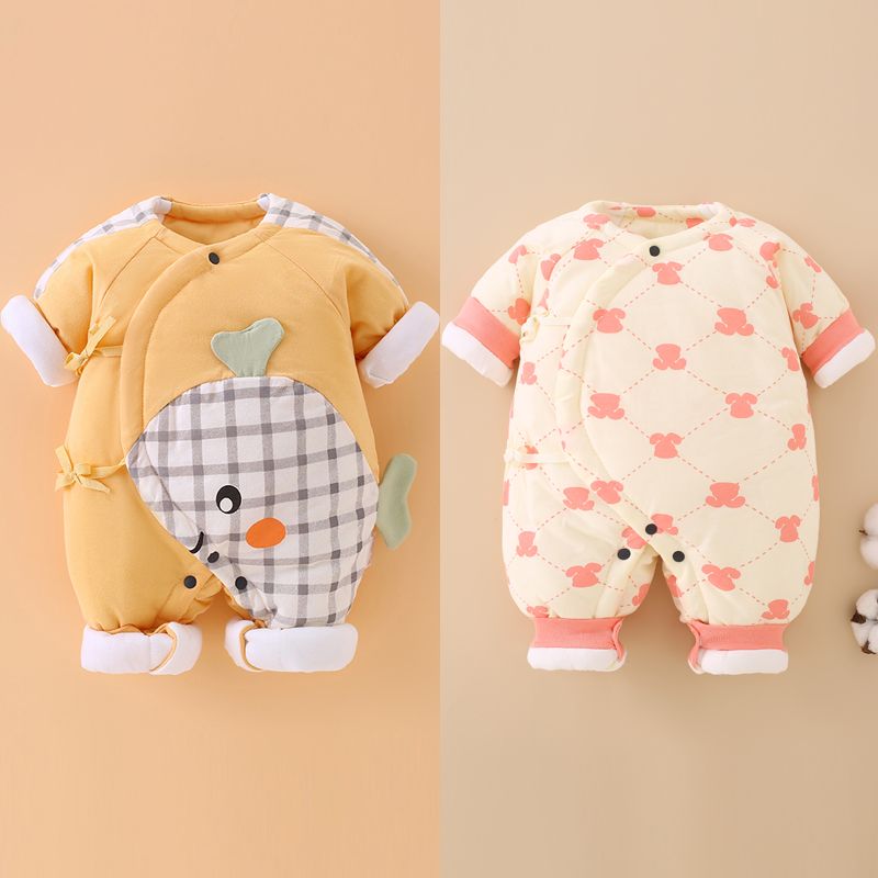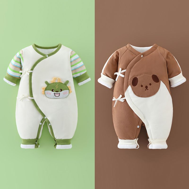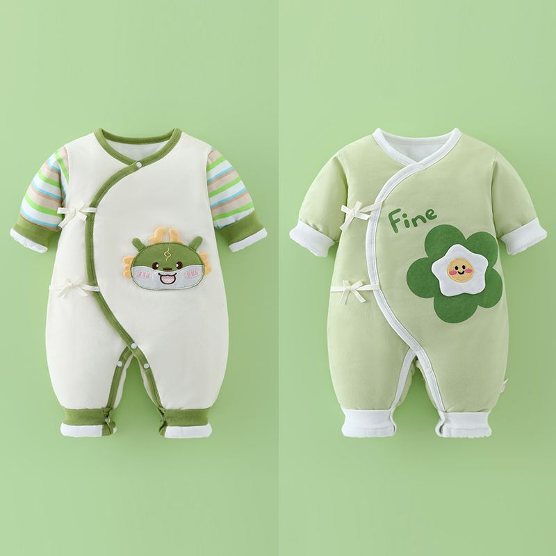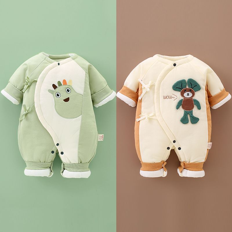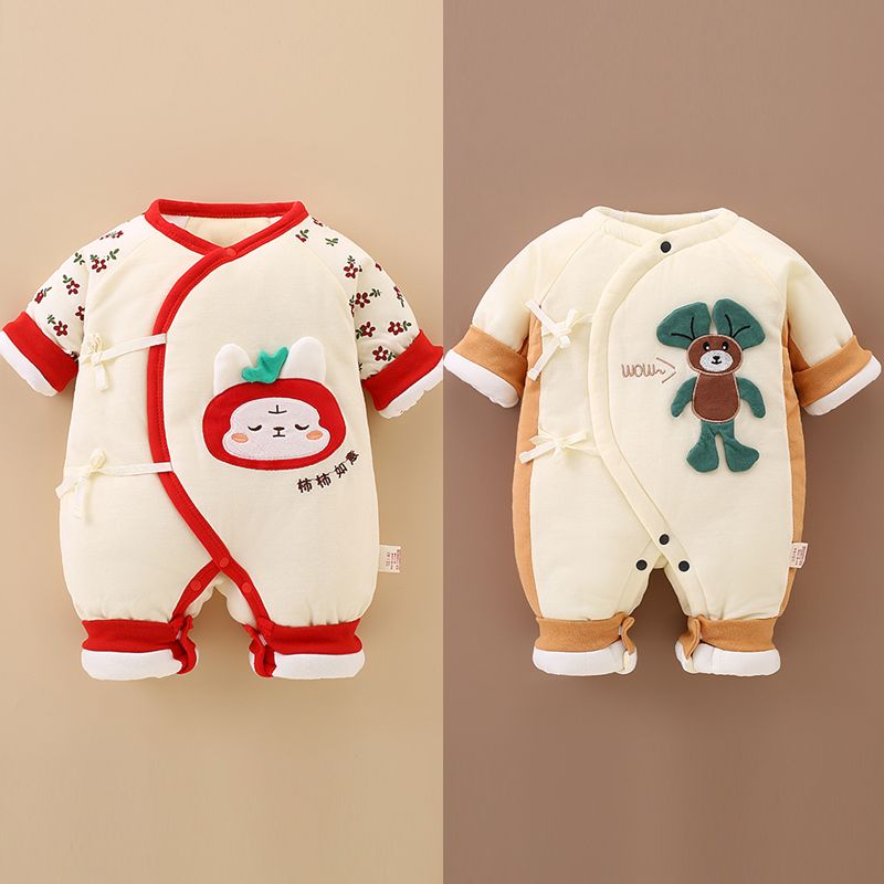 两件装新生儿衣服秋冬连体衣冬天婴儿加厚冬季薄棉刚出生宝宝套装