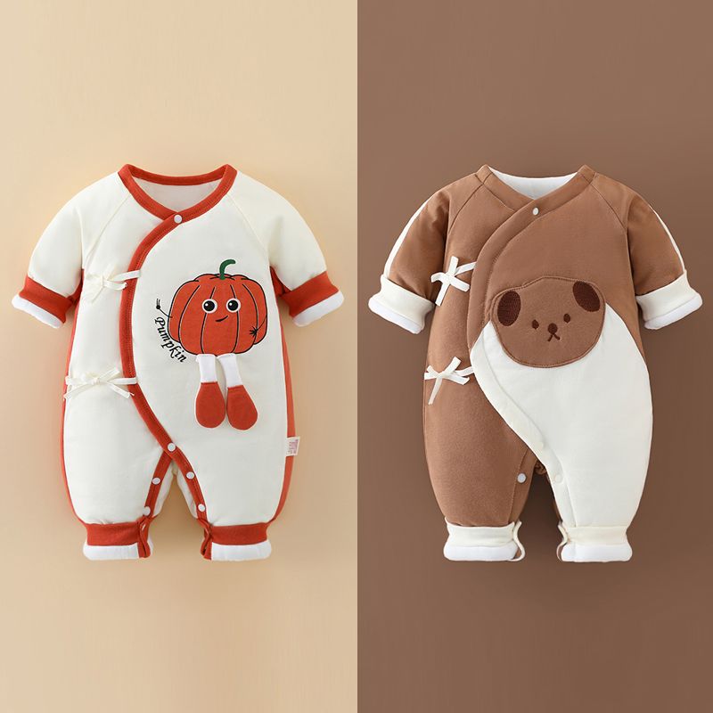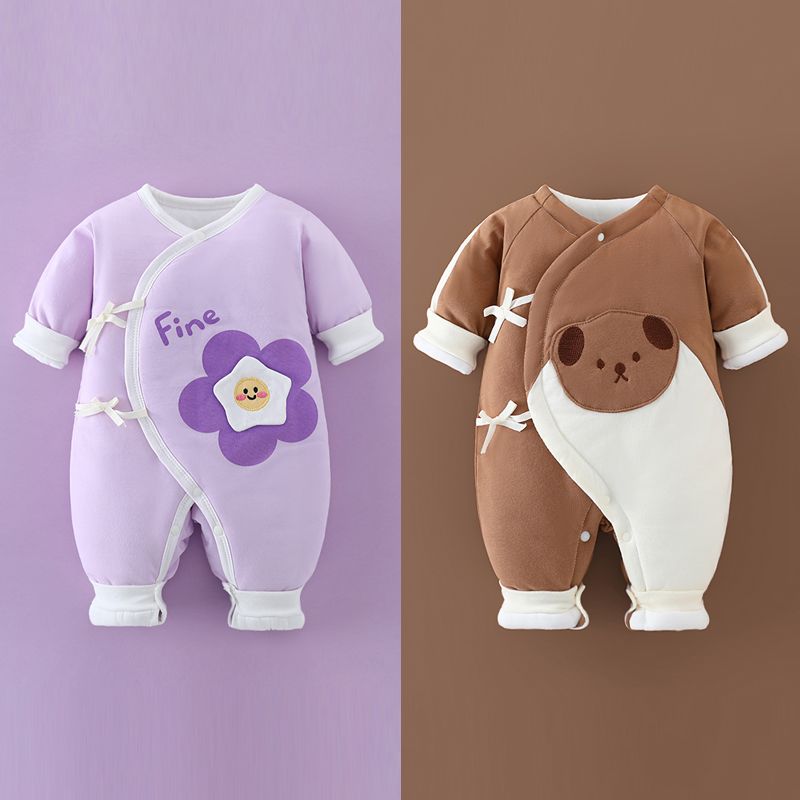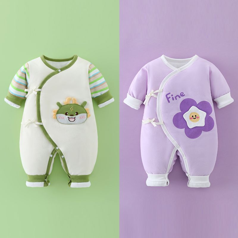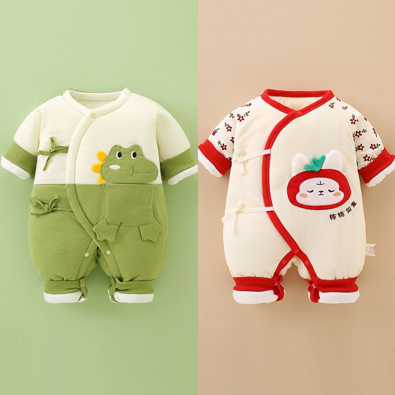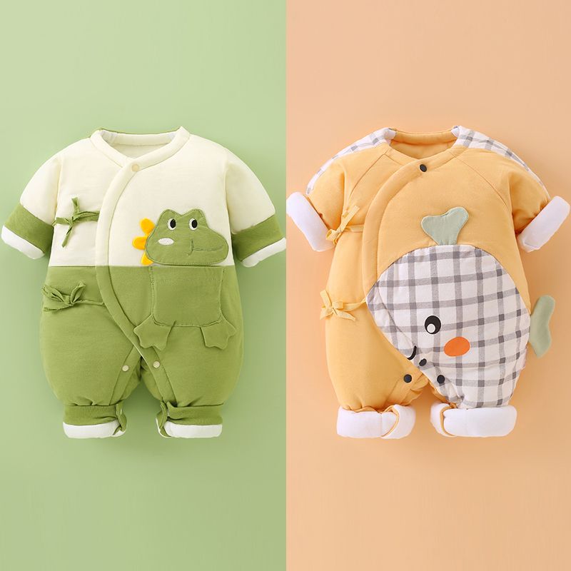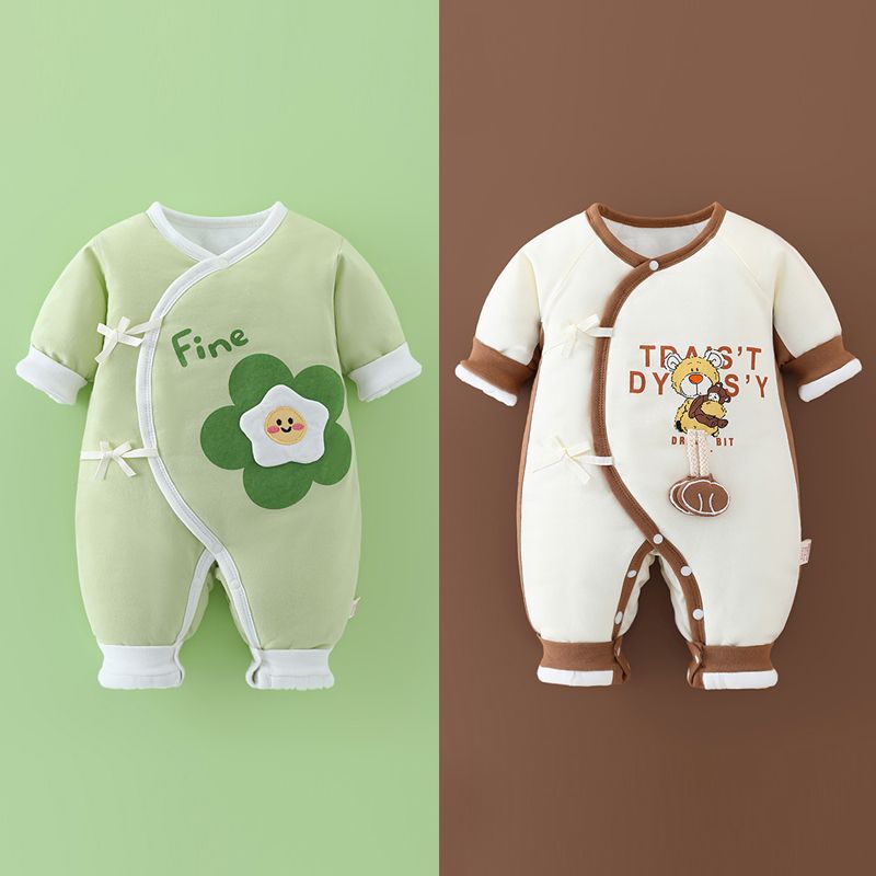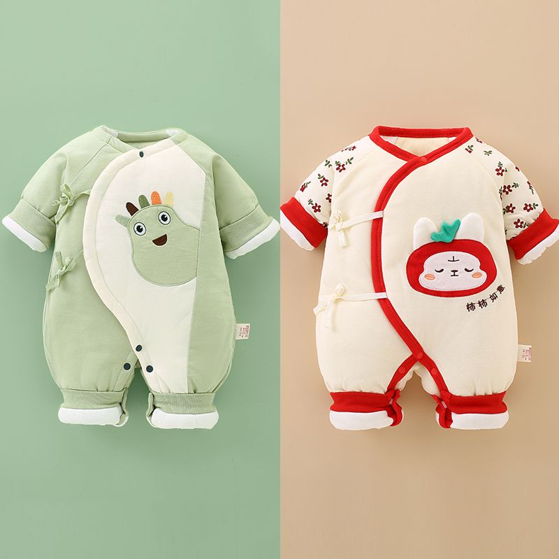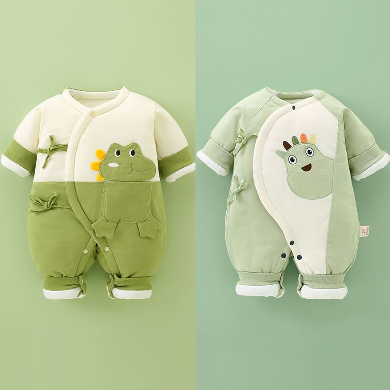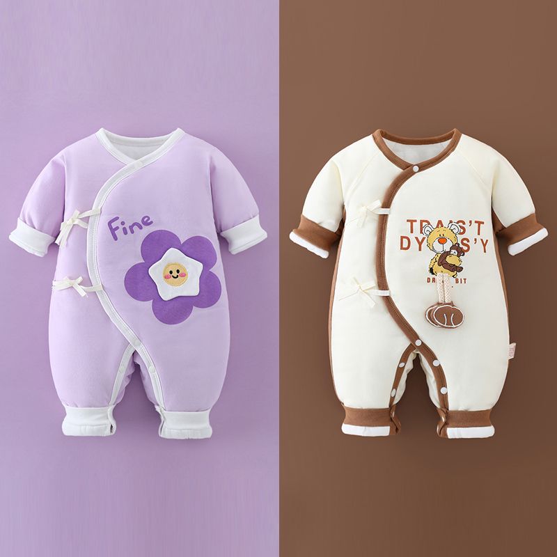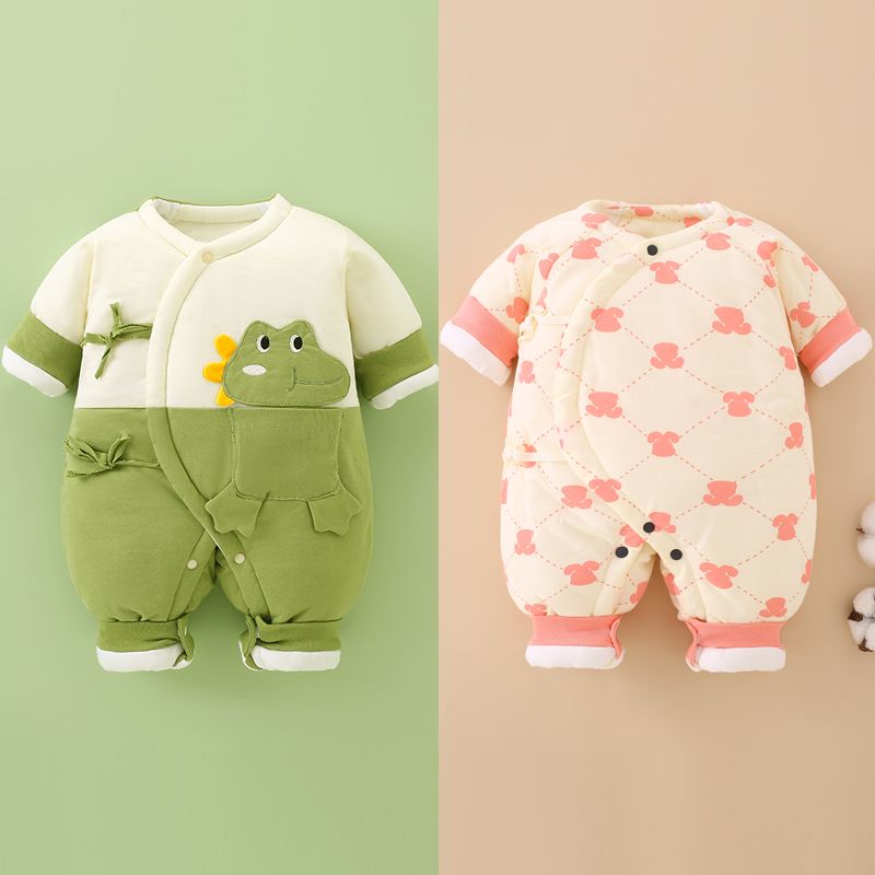 两件装新生儿衣服秋冬连体衣冬天婴儿加厚冬季薄棉刚出生宝宝套装