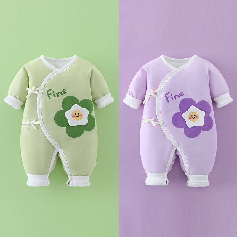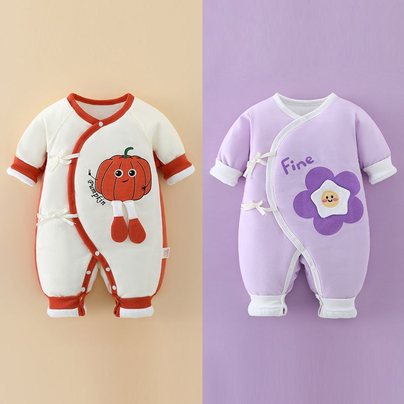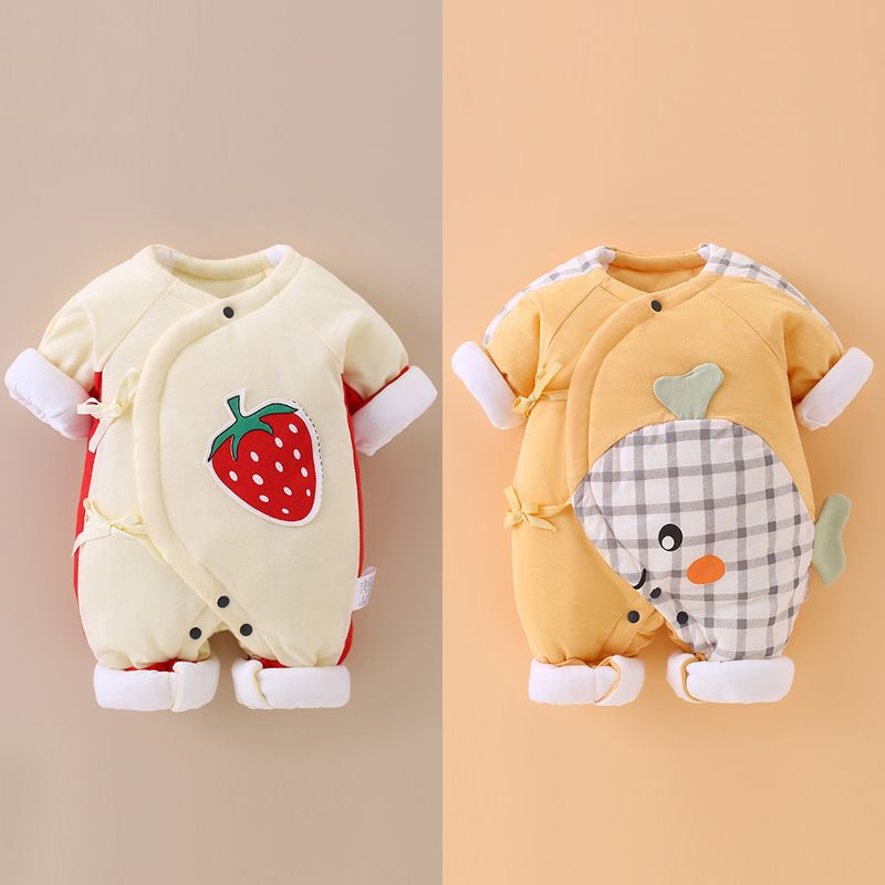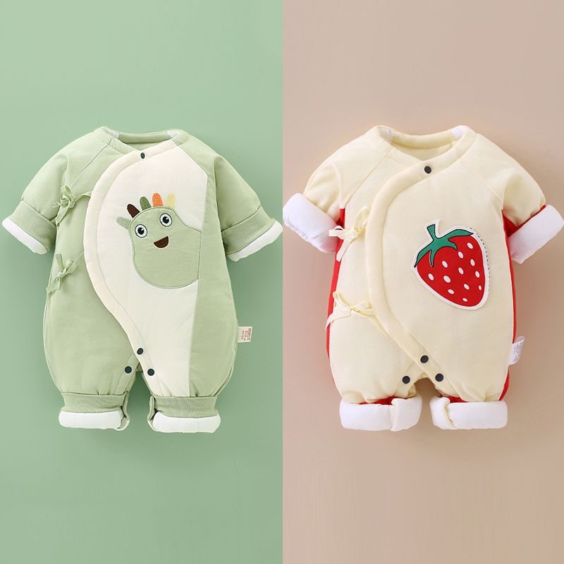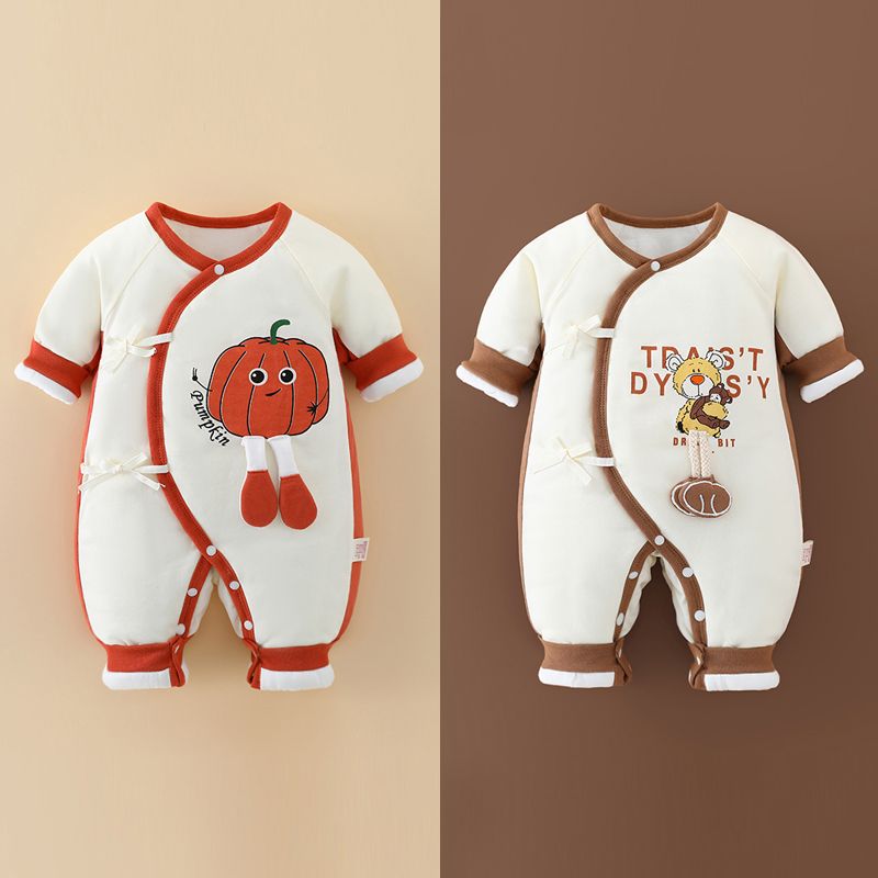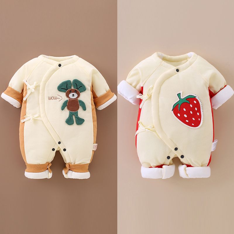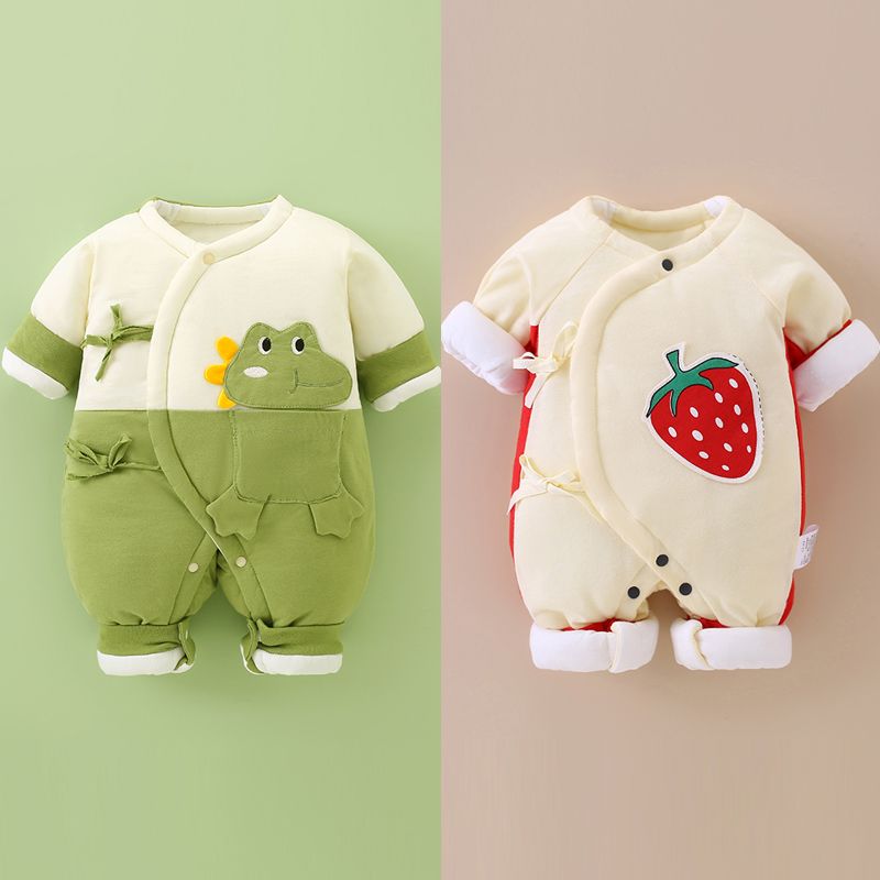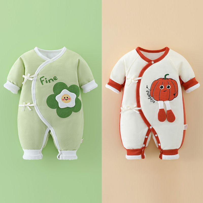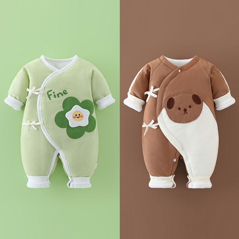 两件装新生儿衣服秋冬连体衣冬天婴儿加厚冬季薄棉刚出生宝宝套装