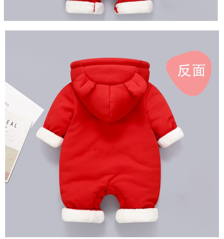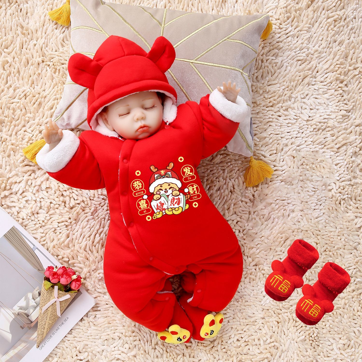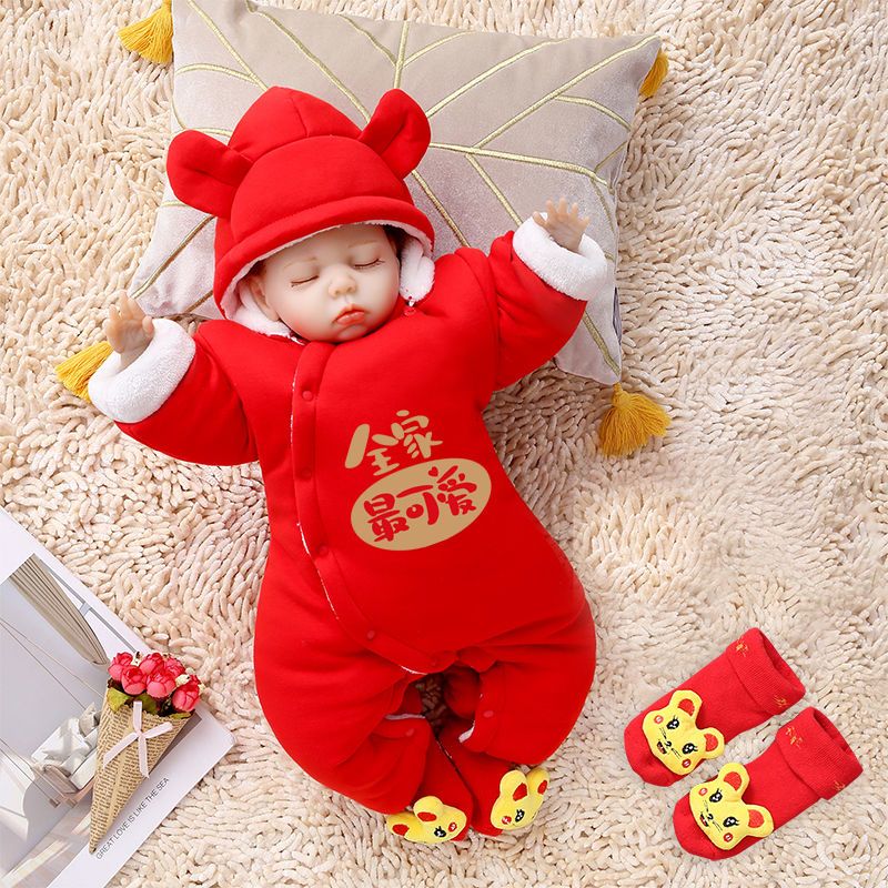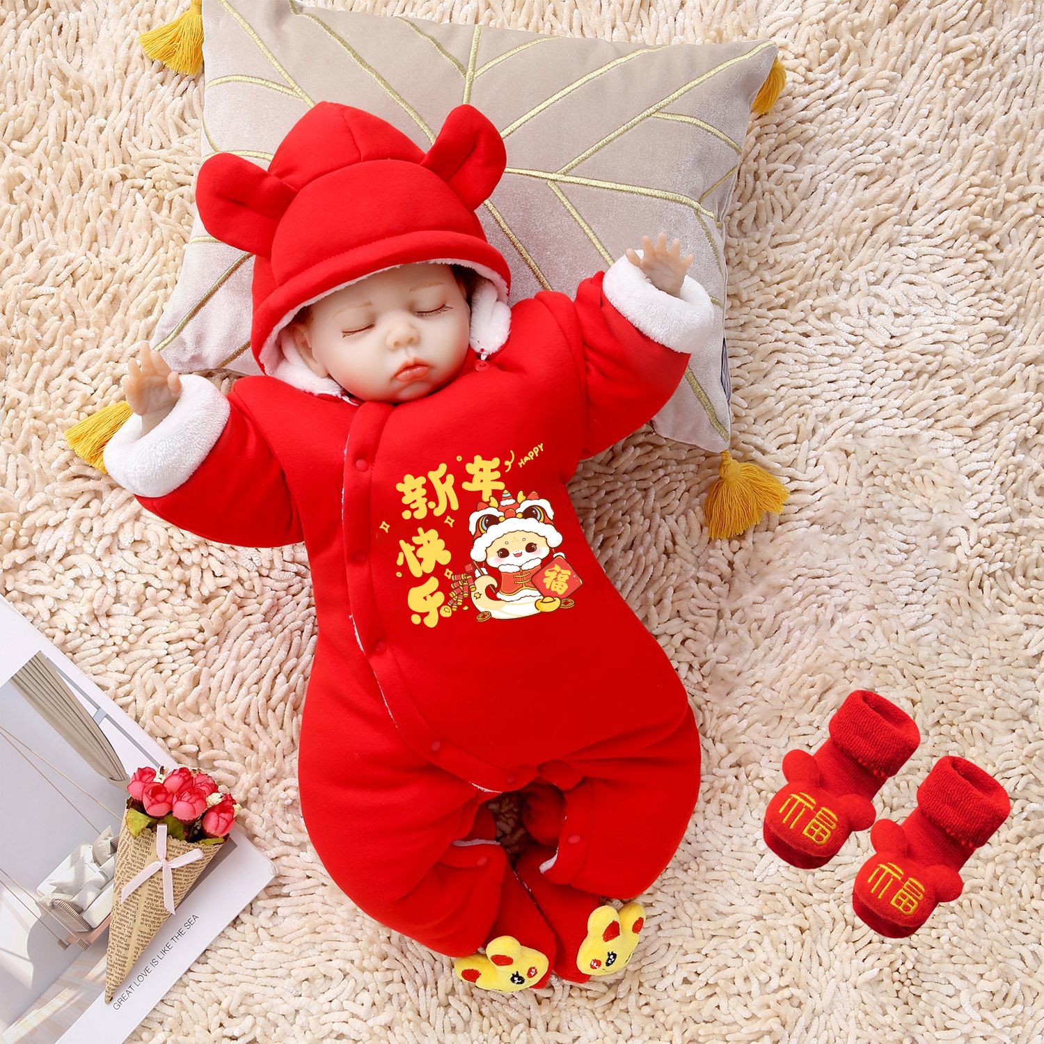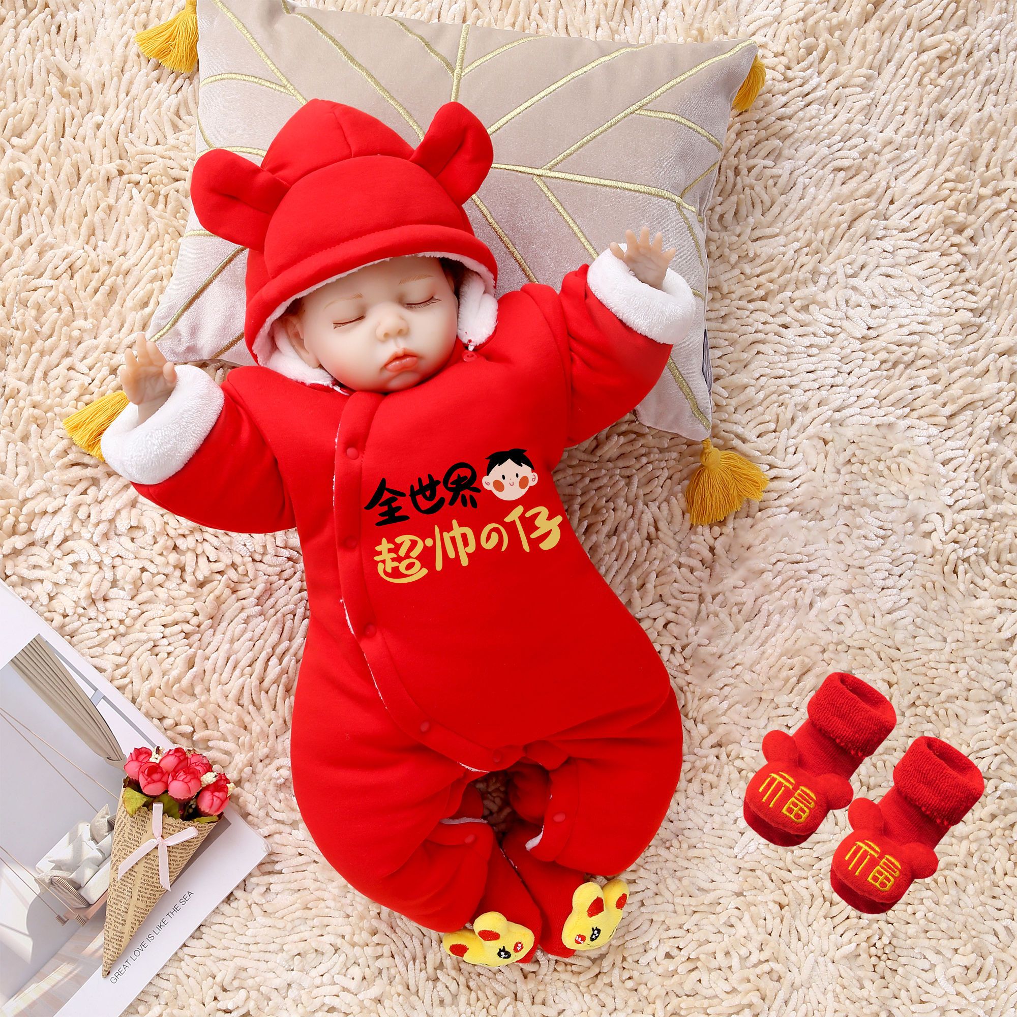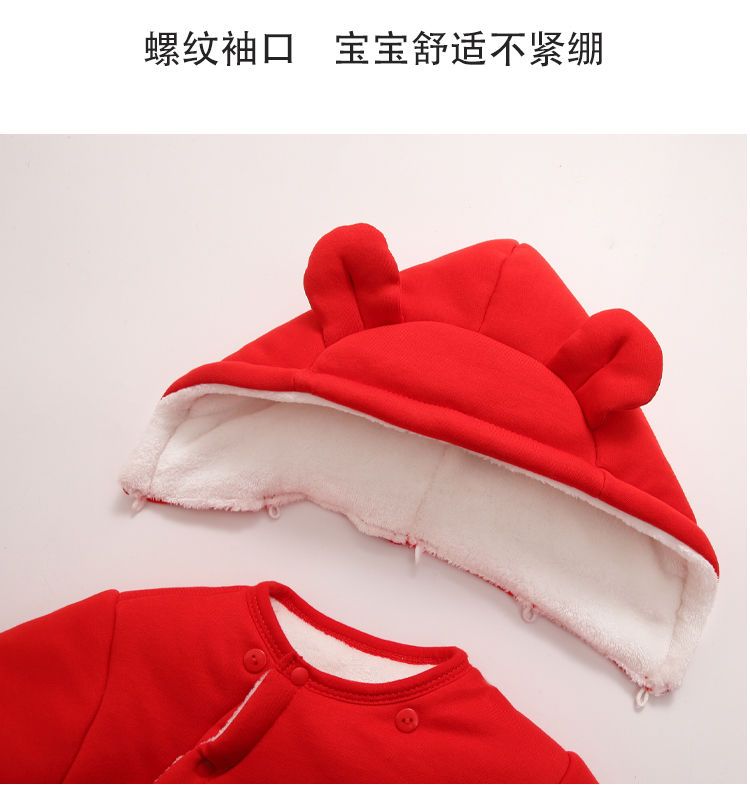 新生婴儿衣服秋冬加绒加厚外出棉服刚出生满月男女宝宝连体衣套装
