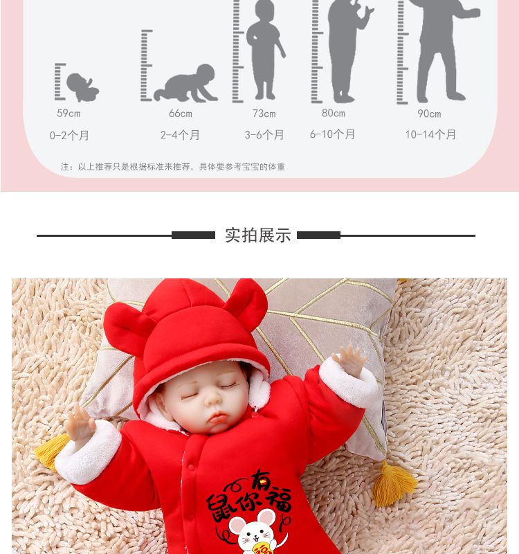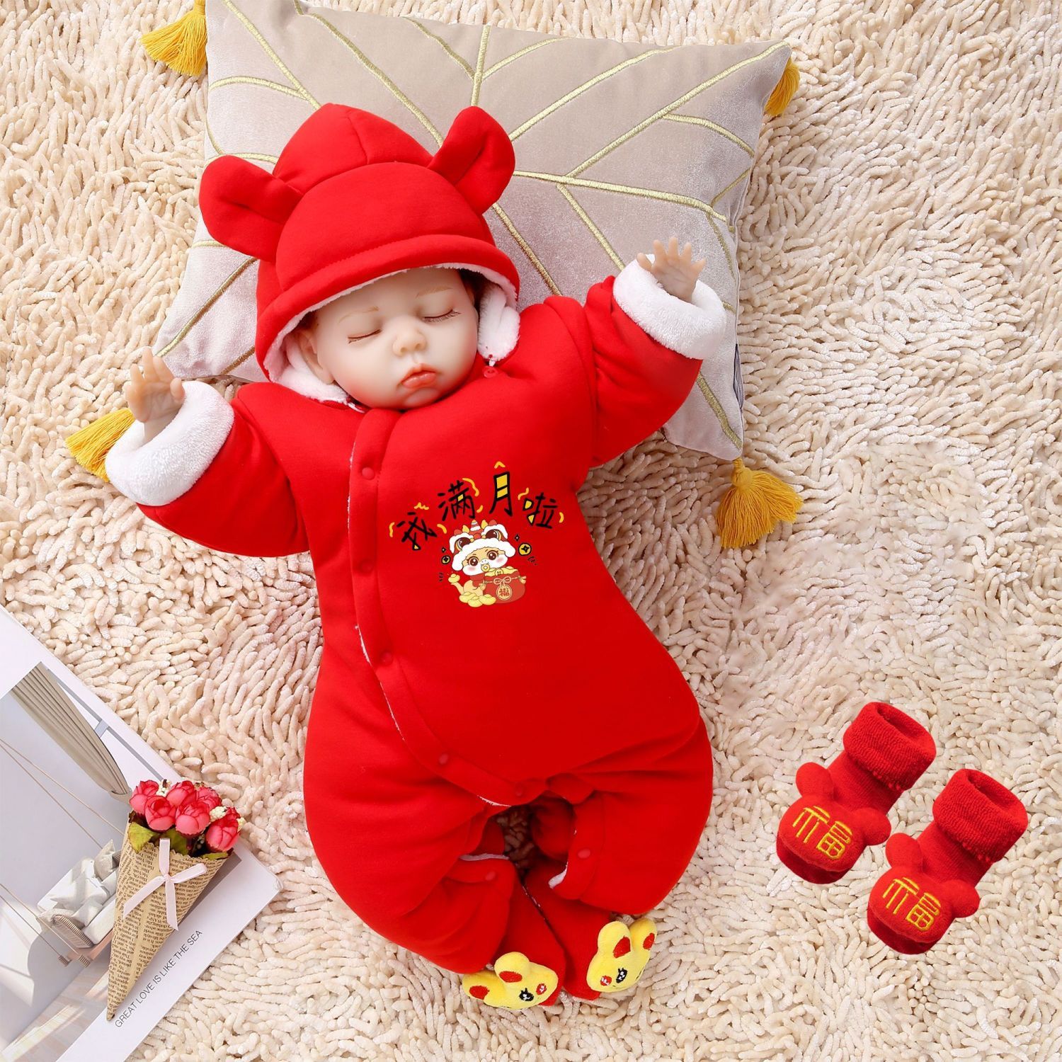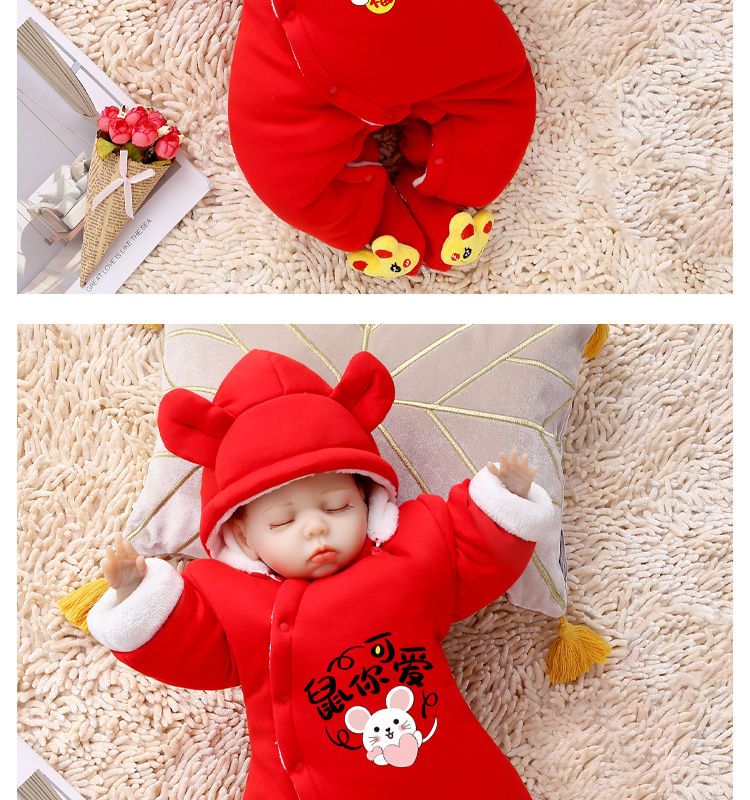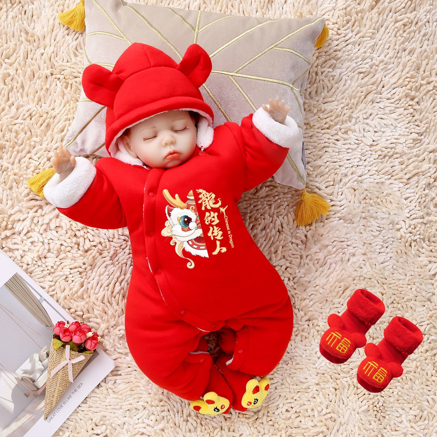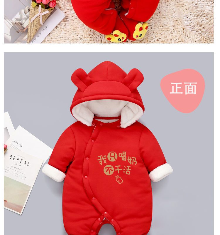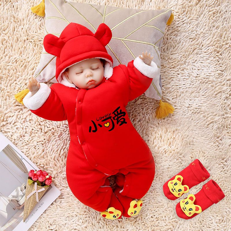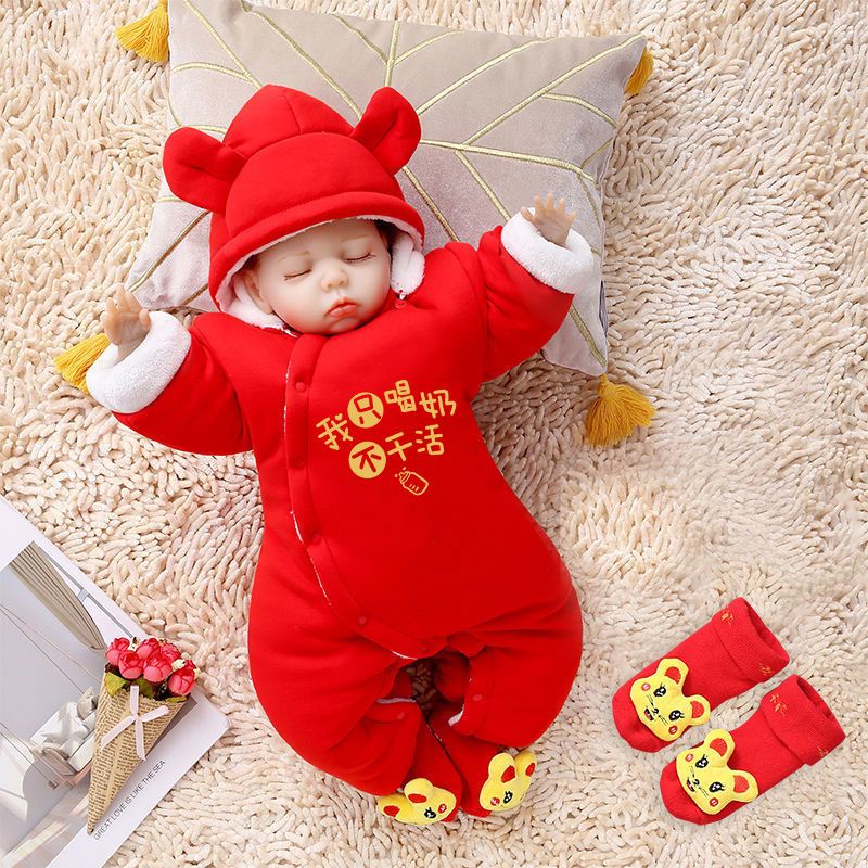新生婴儿衣服秋冬加绒加厚外出棉服刚出生满月男女宝宝连体衣套装
