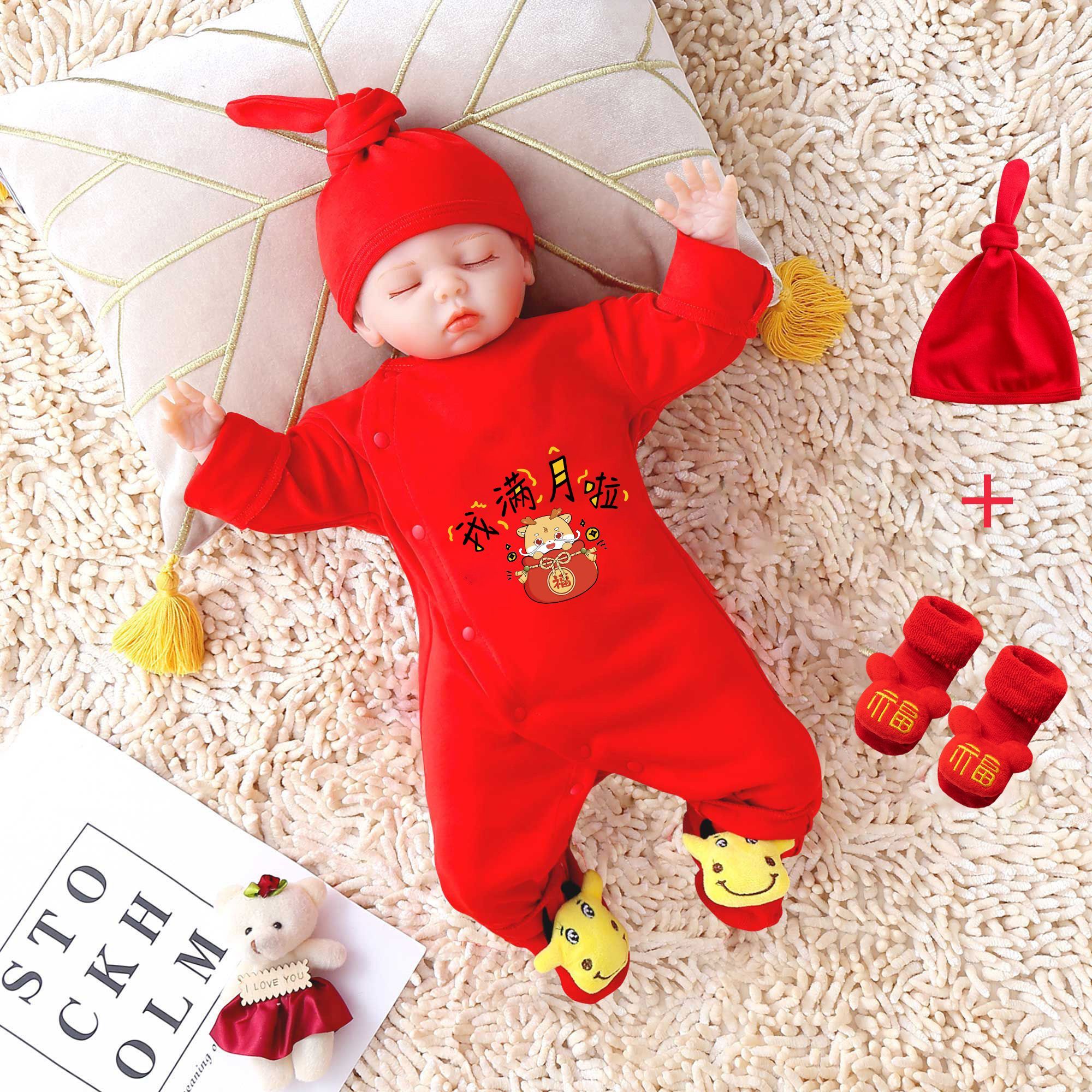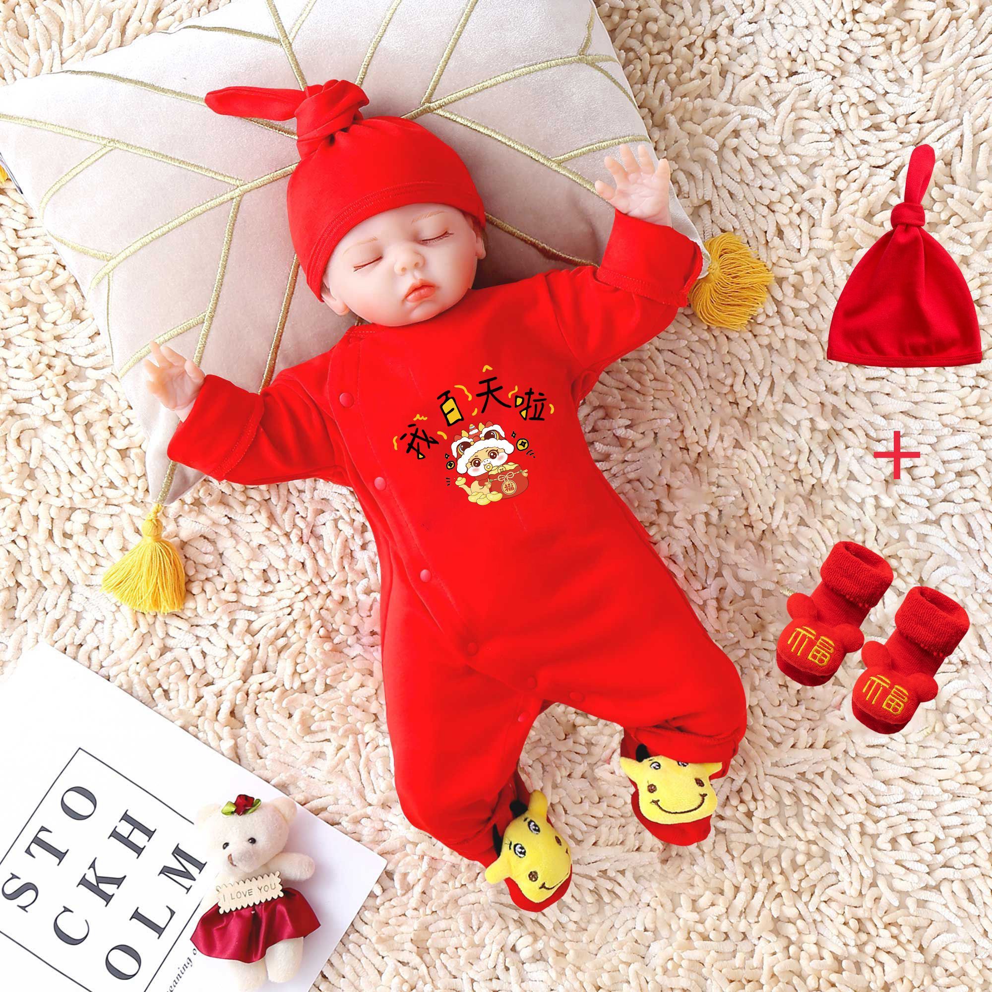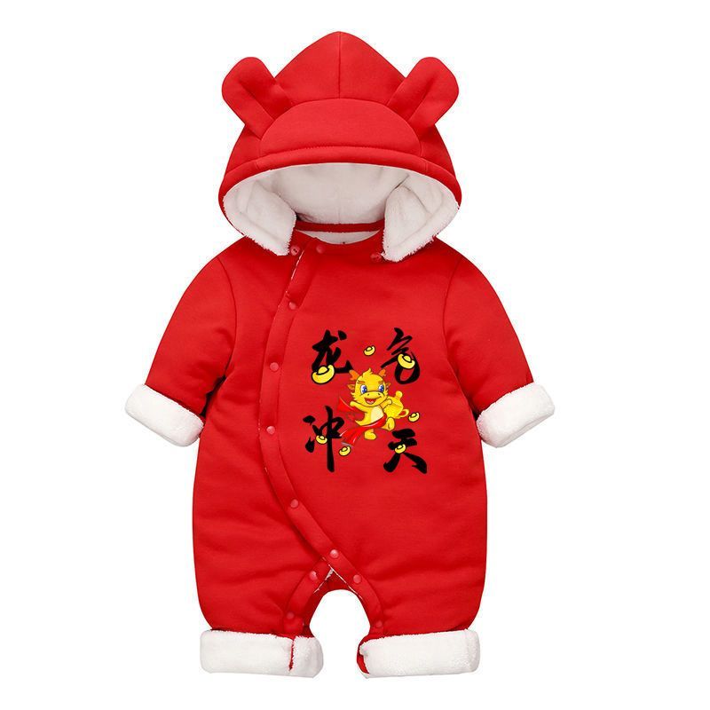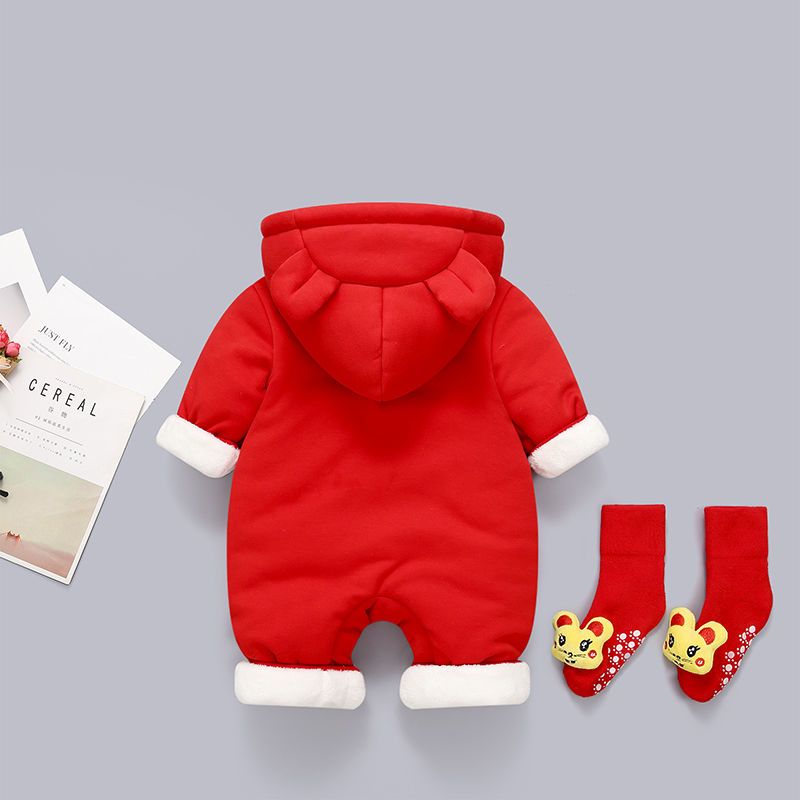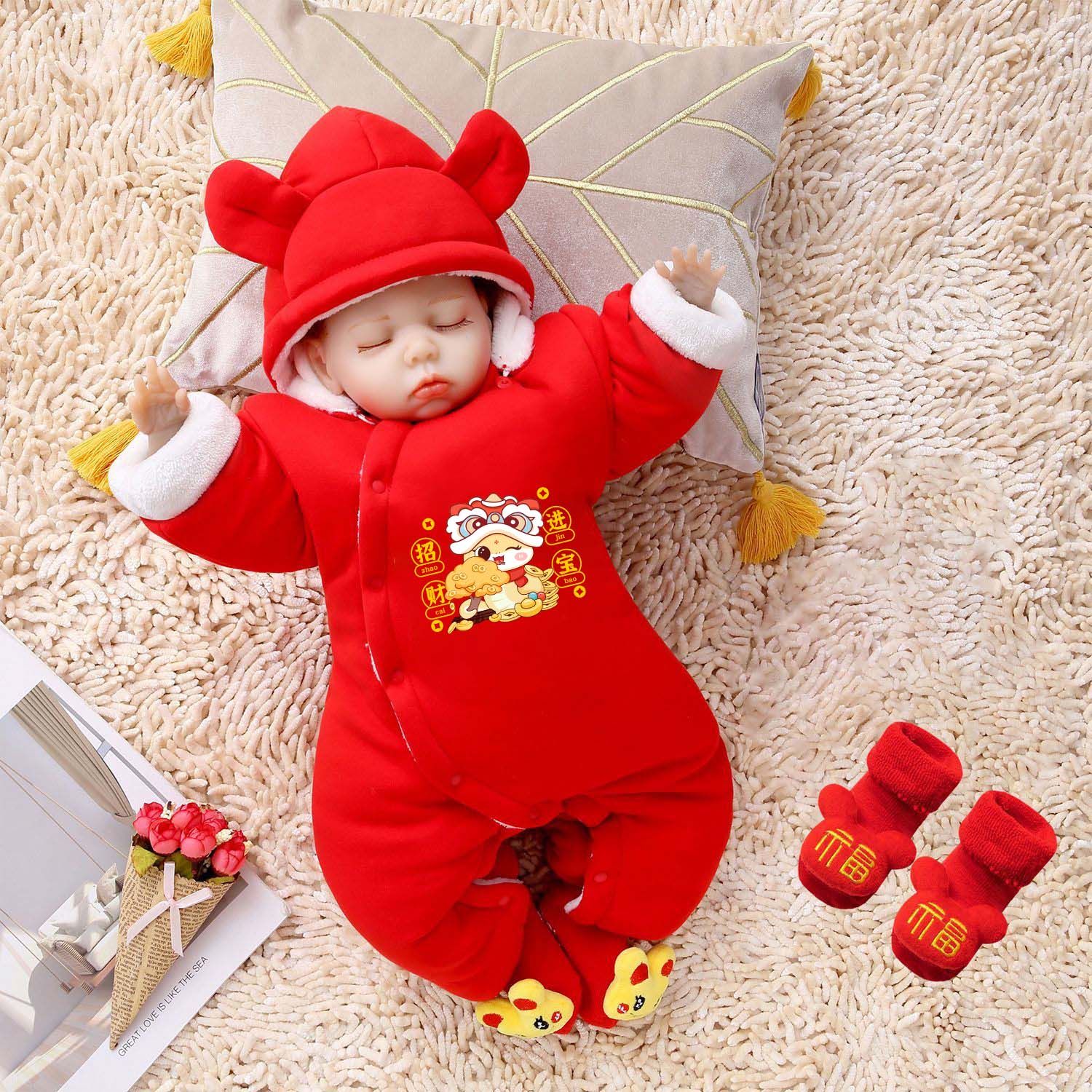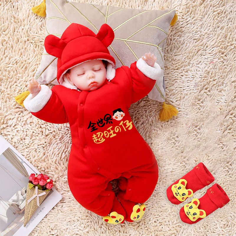 新生婴儿衣服秋冬加绒加厚外出棉服刚出生满月男女宝宝连体衣套装