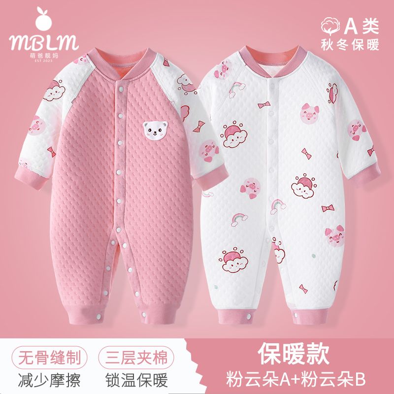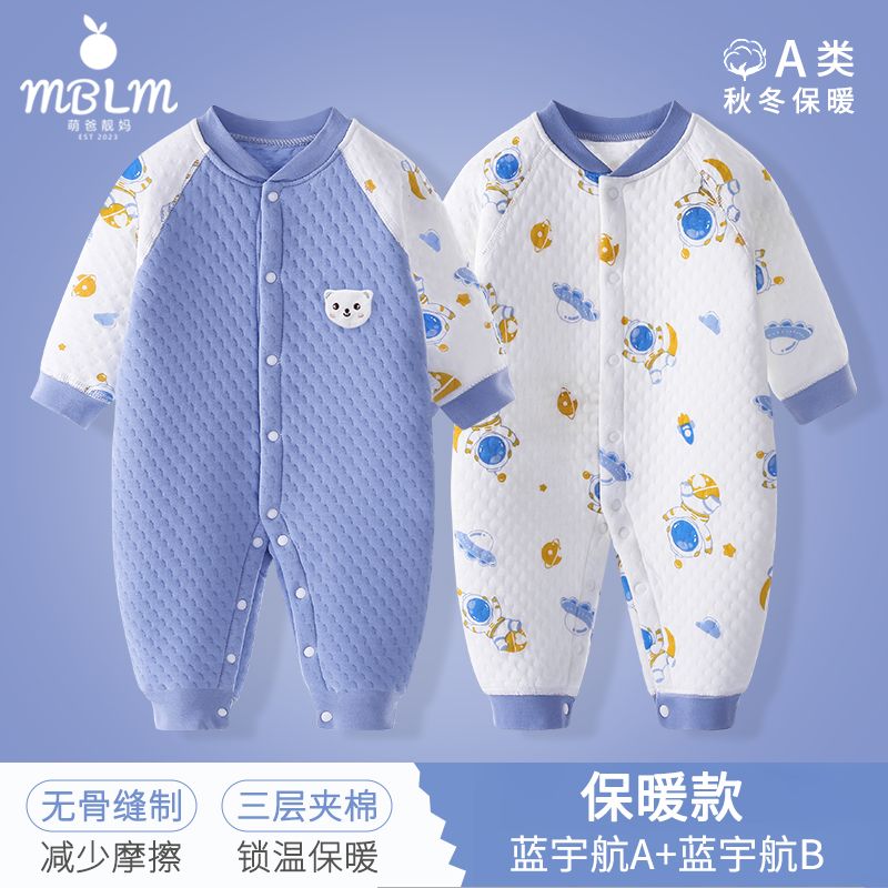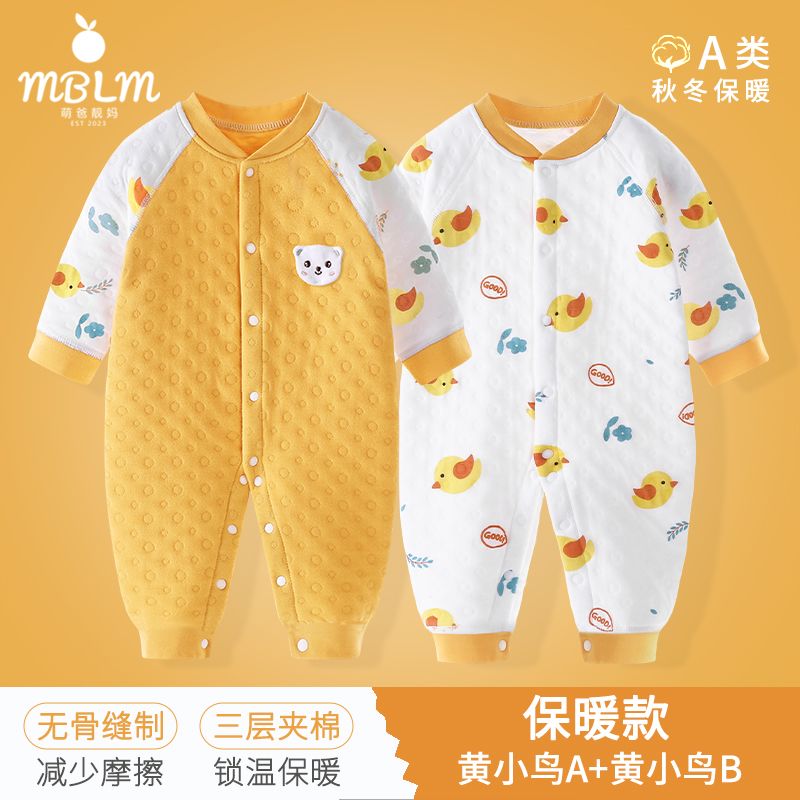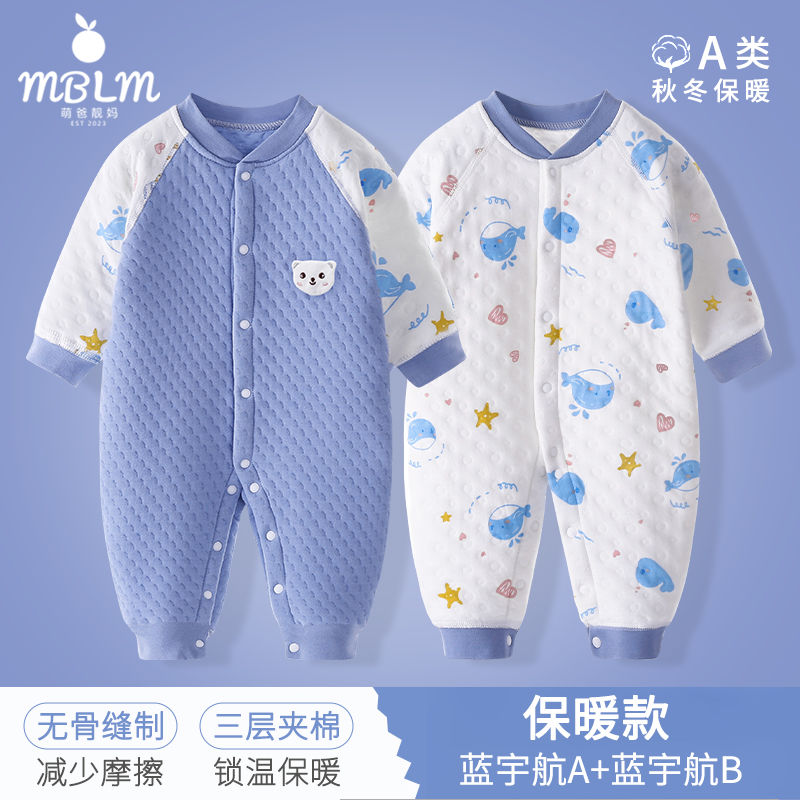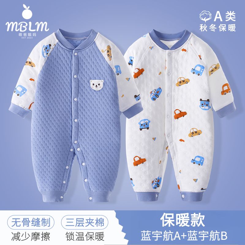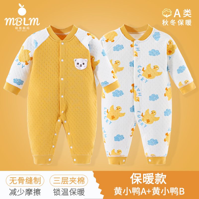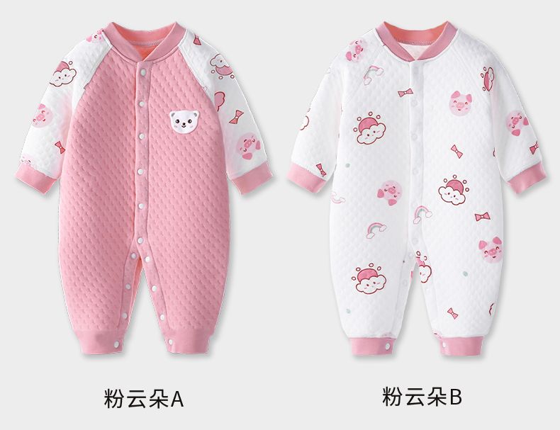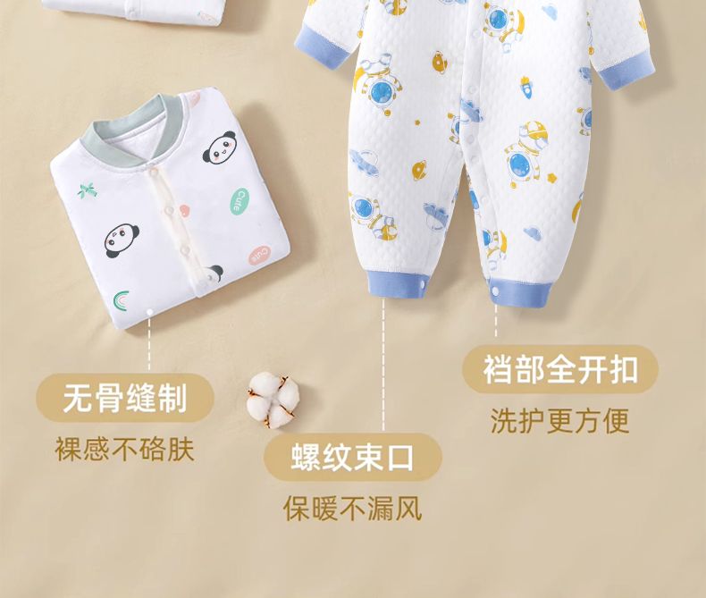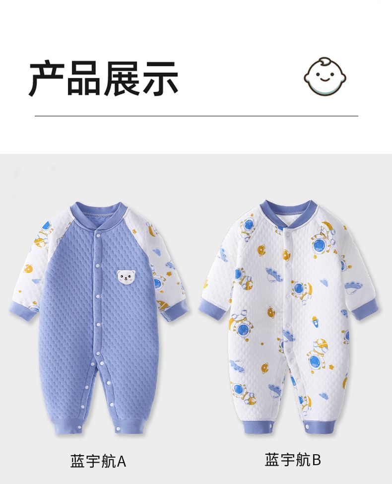 婴儿秋季连体衣纯棉加厚保暖夹棉秋冬款初生宝宝婴童睡衣哈衣爬服