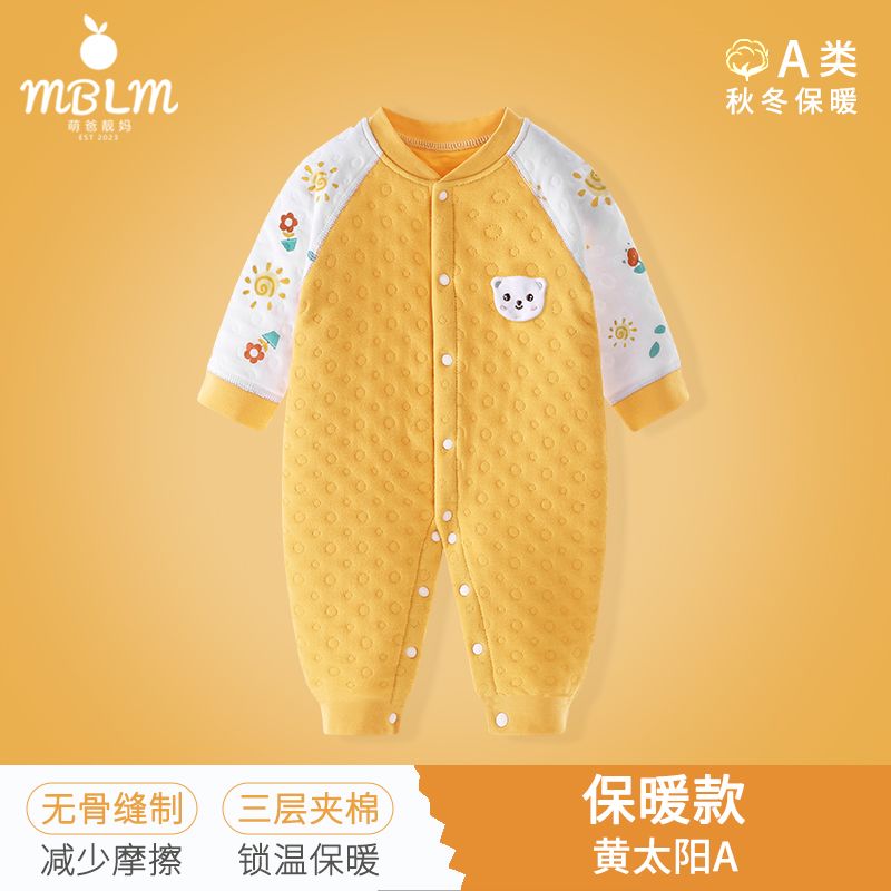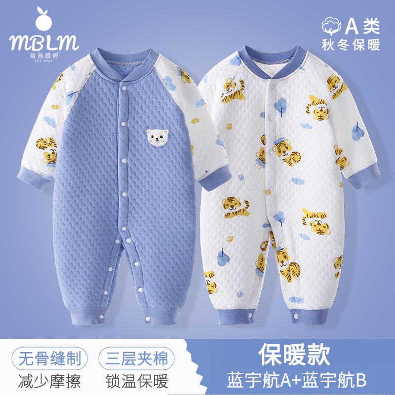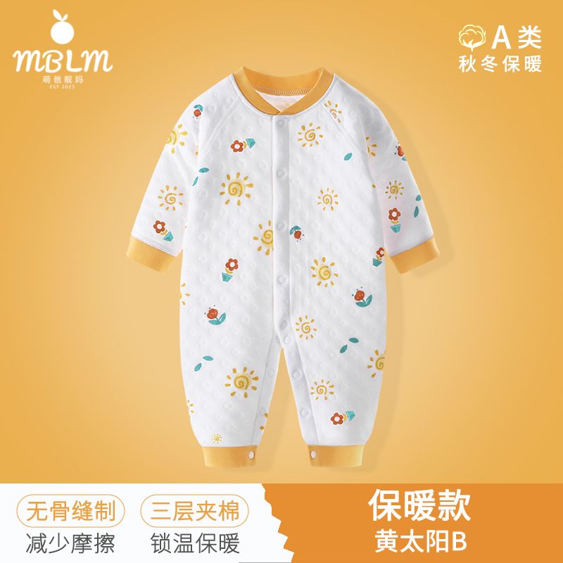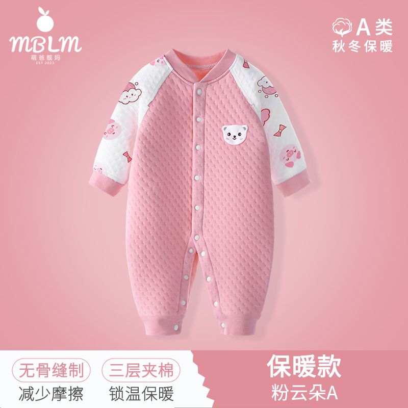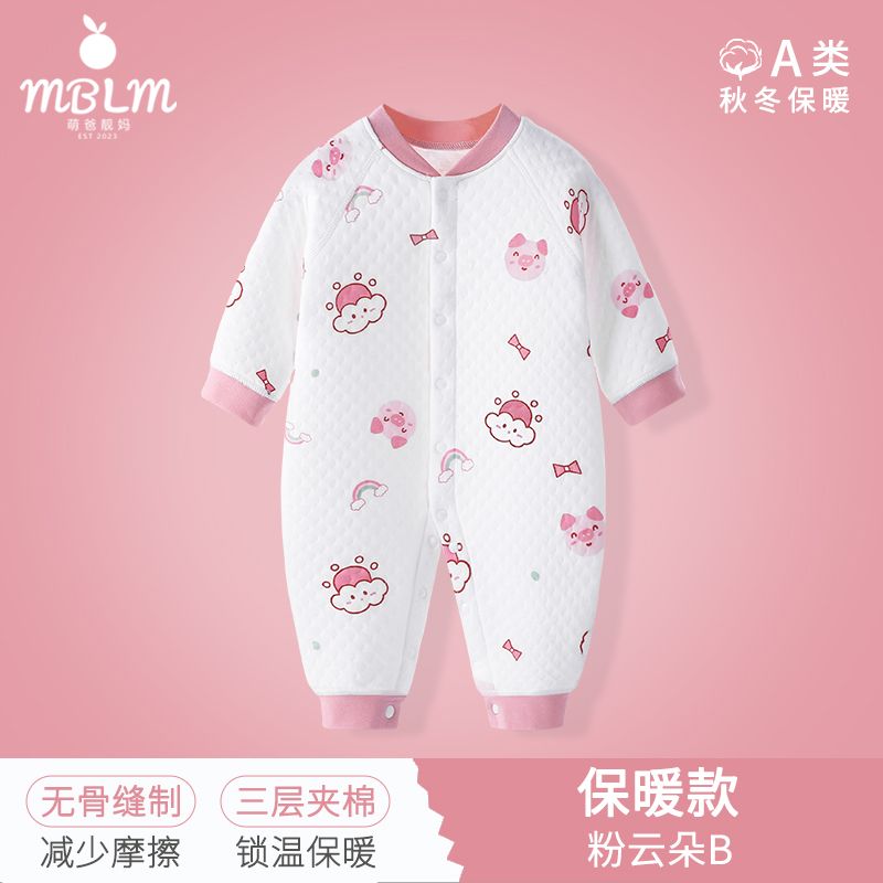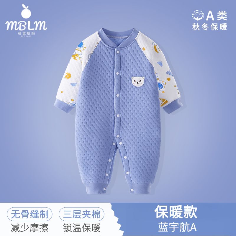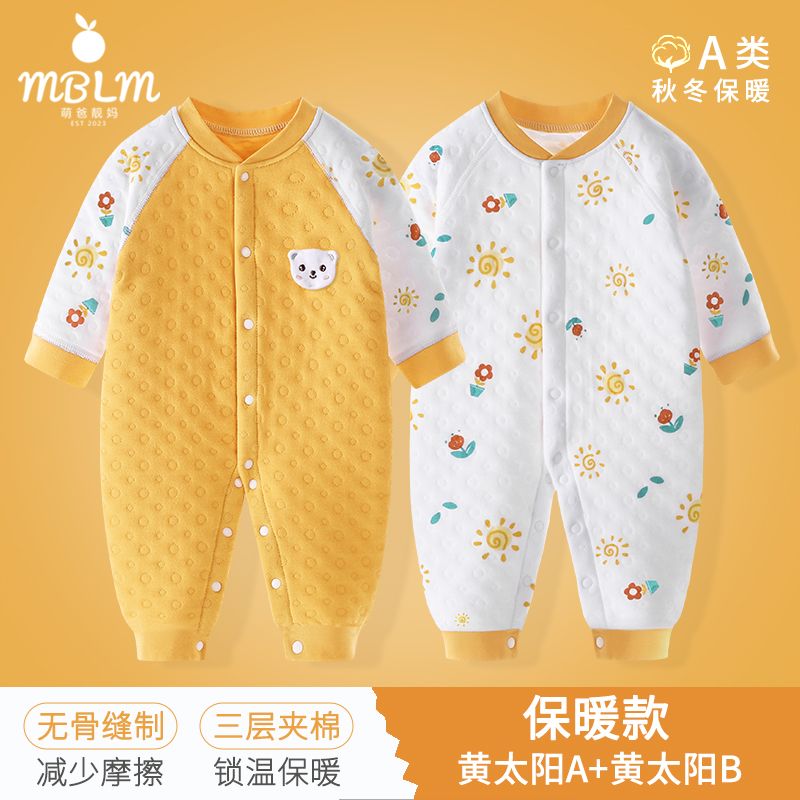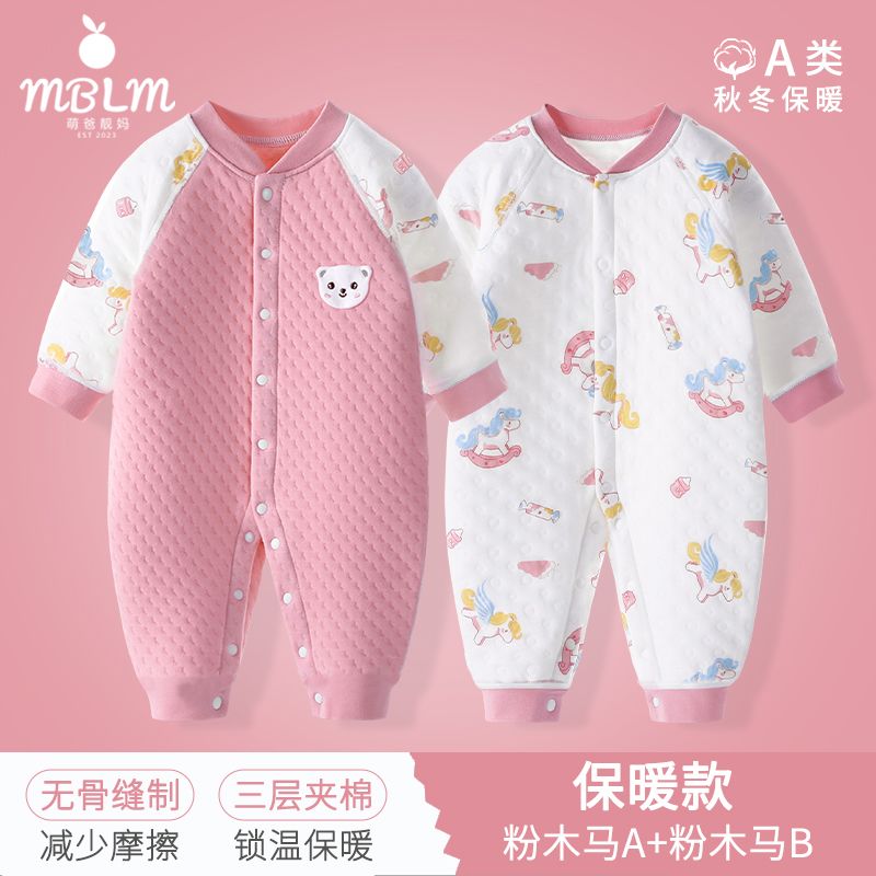 婴儿秋季连体衣纯棉加厚保暖夹棉秋冬款初生宝宝婴童睡衣哈衣爬服