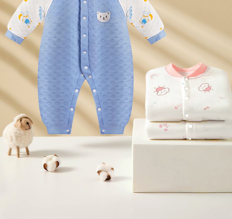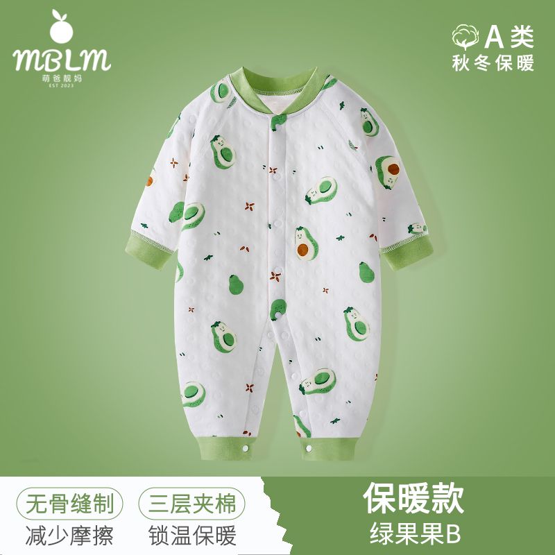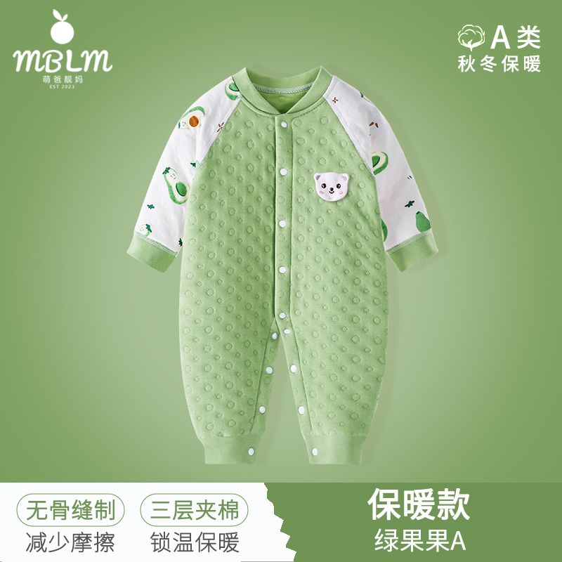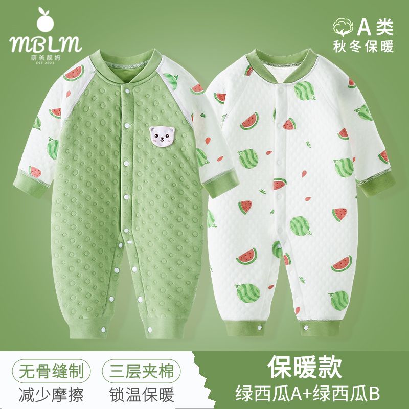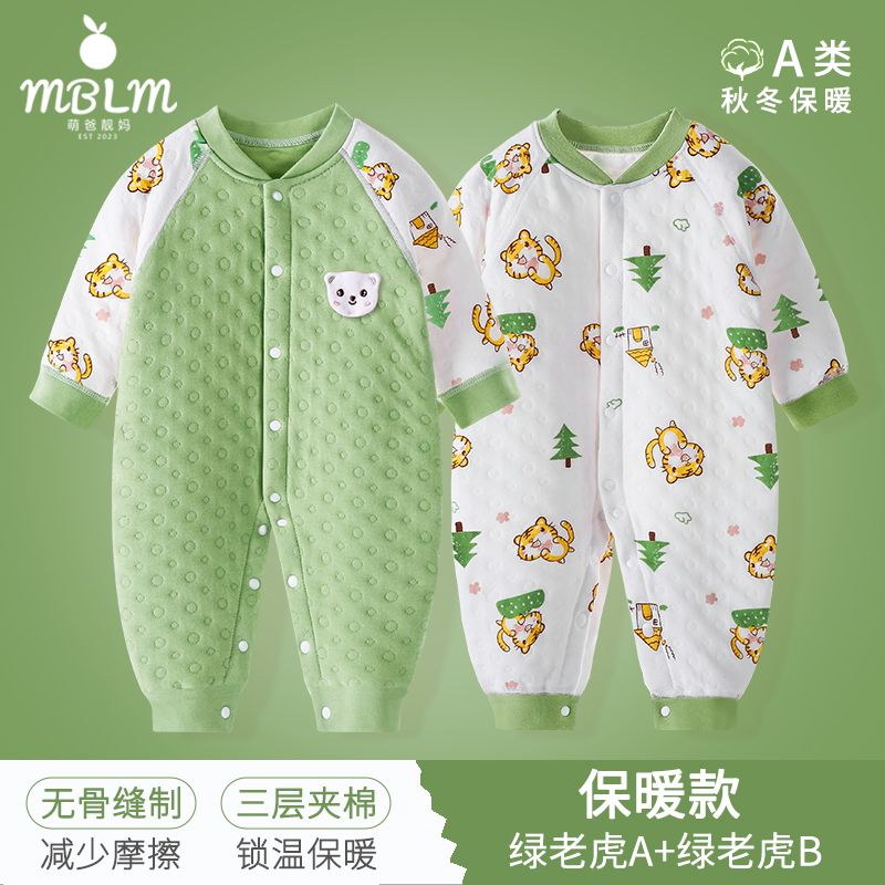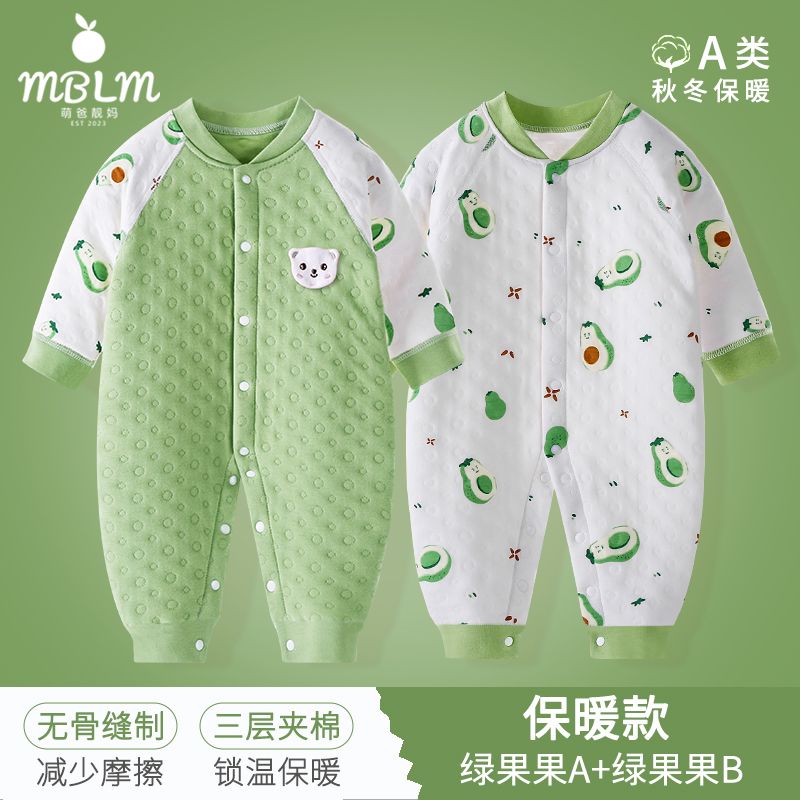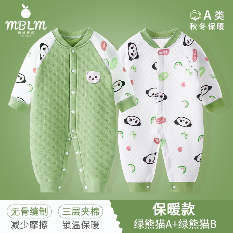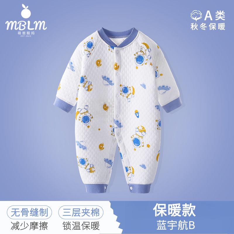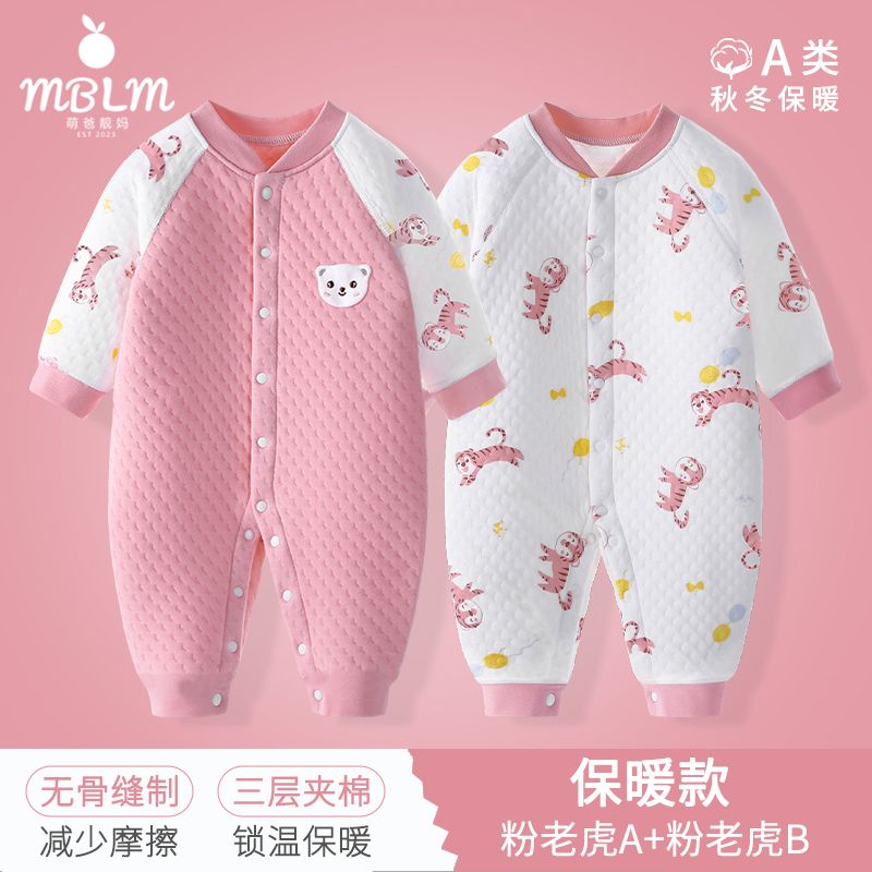 婴儿秋季连体衣纯棉加厚保暖夹棉秋冬款初生宝宝婴童睡衣哈衣爬服