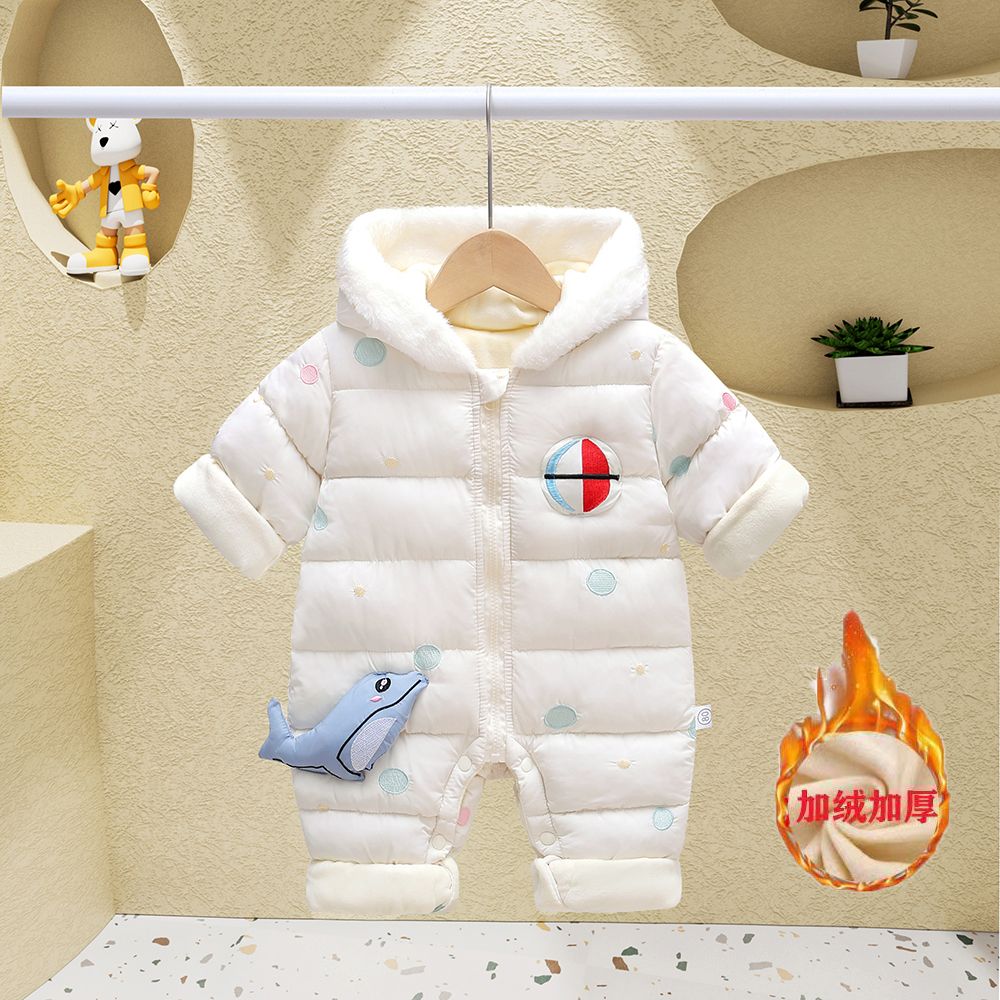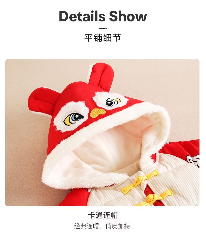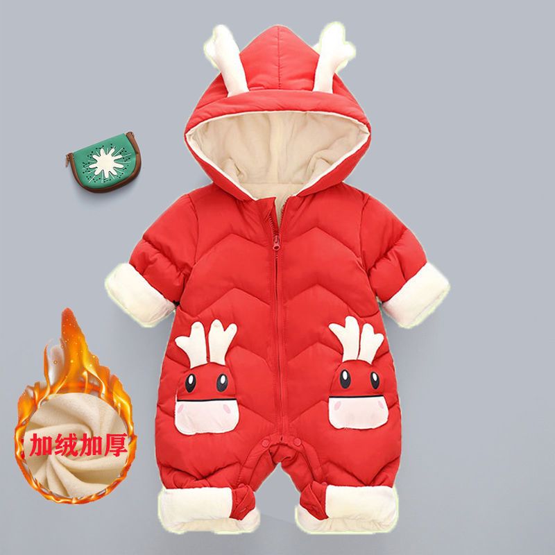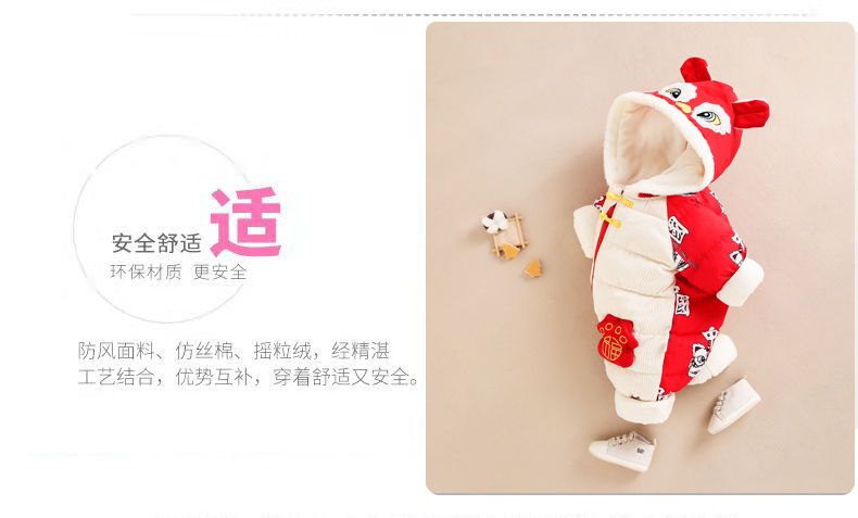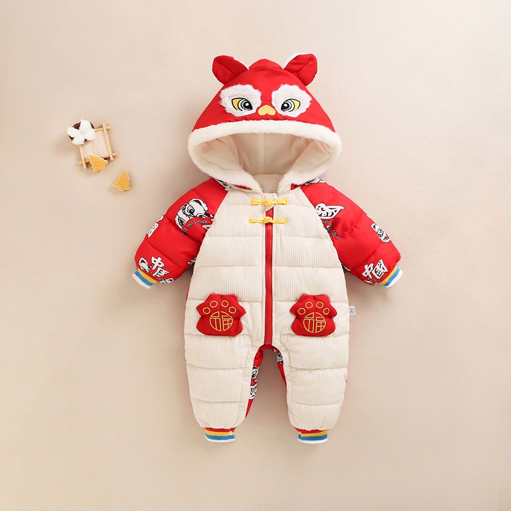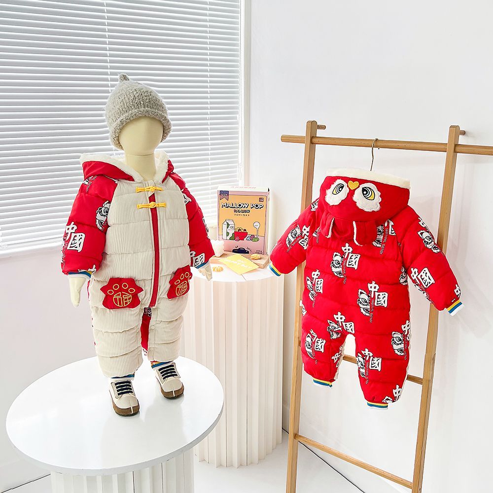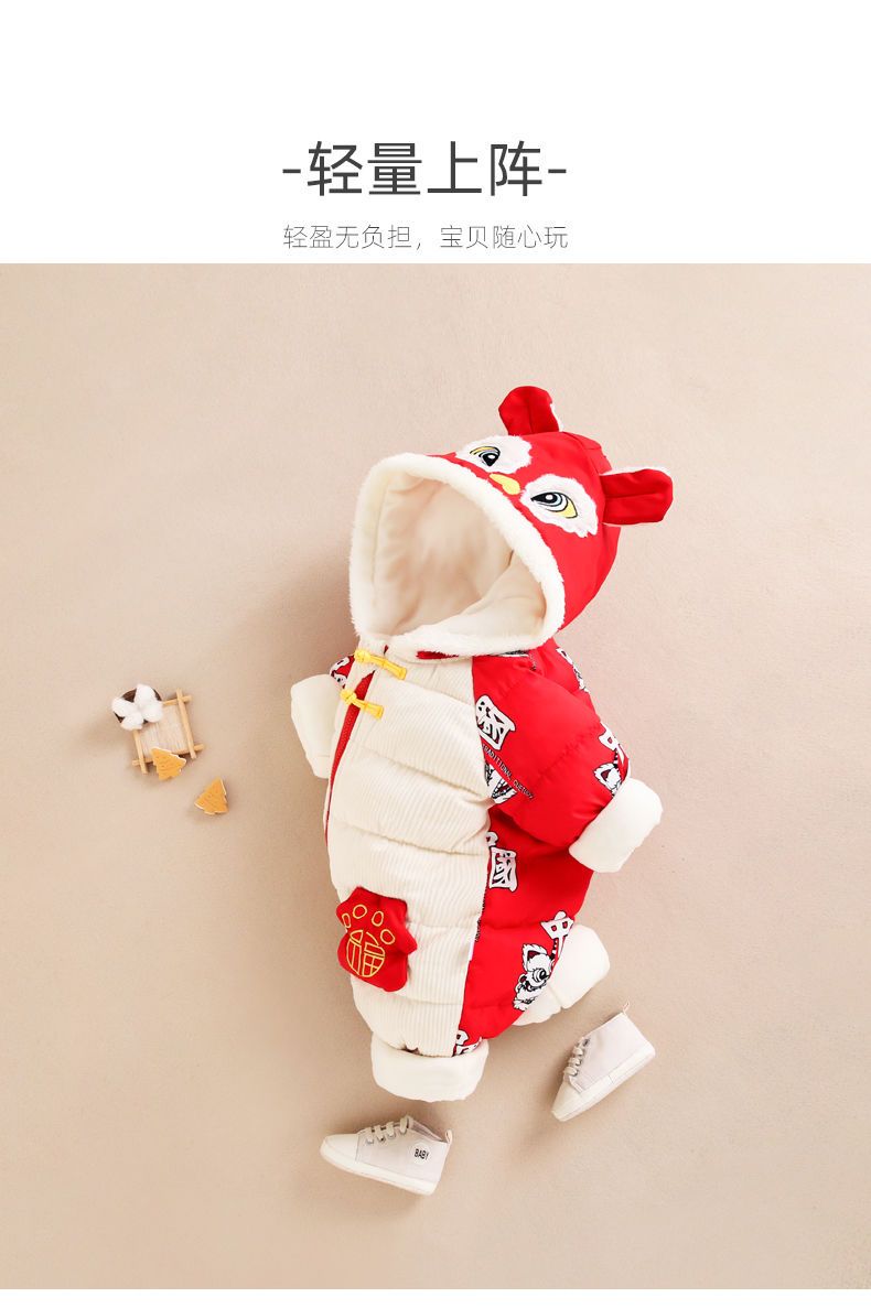 2024新款婴儿连体衣外出宝宝保暖套装婴儿冬季拜年服哈衣加绒爬服
